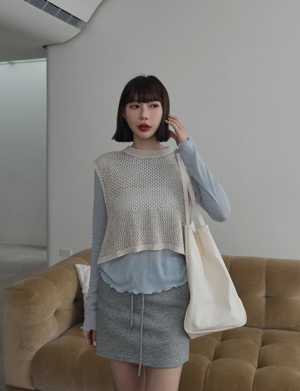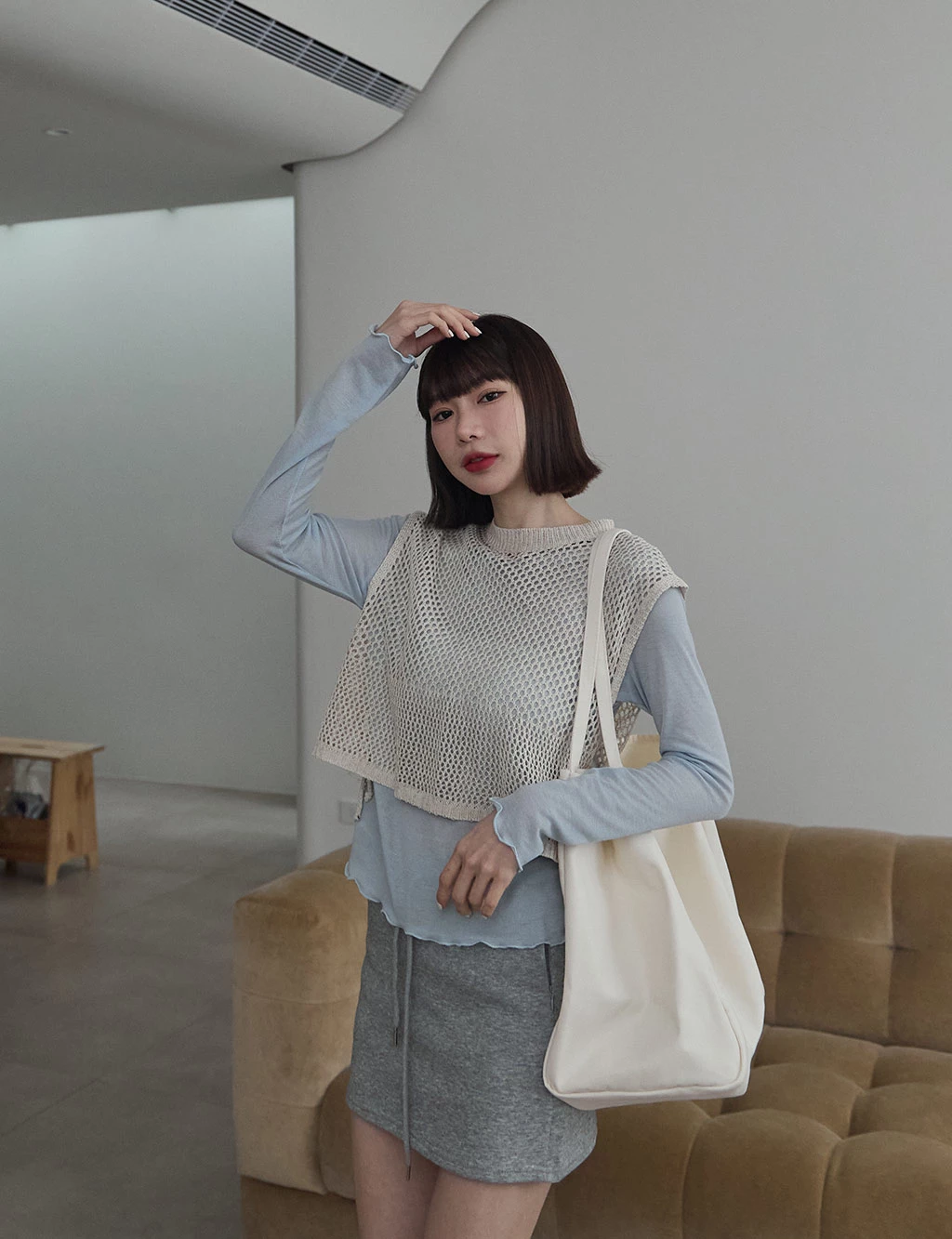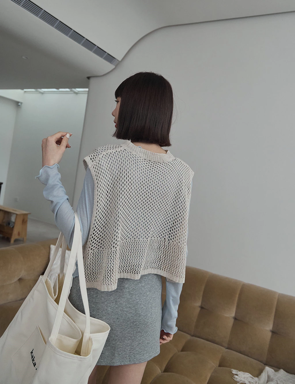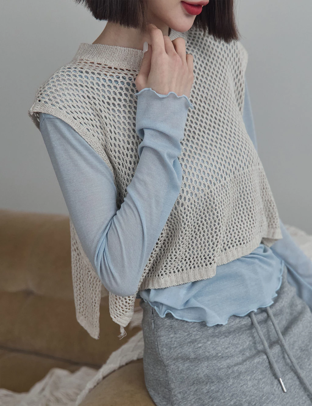 洞洞感開岔背心