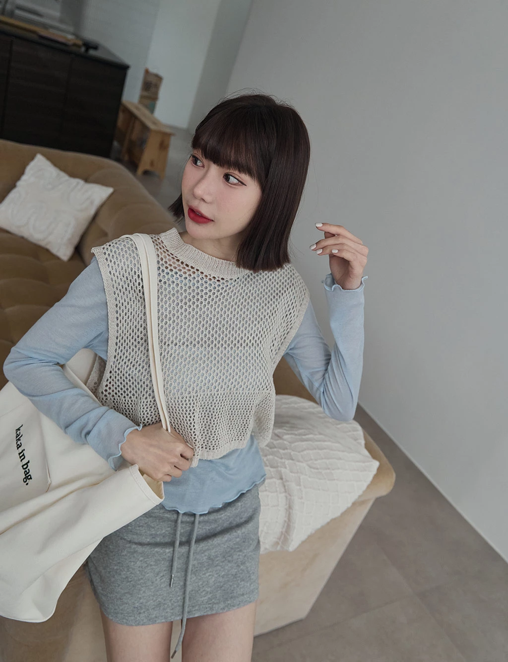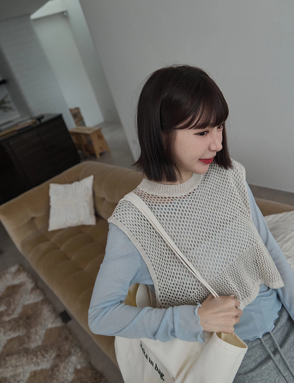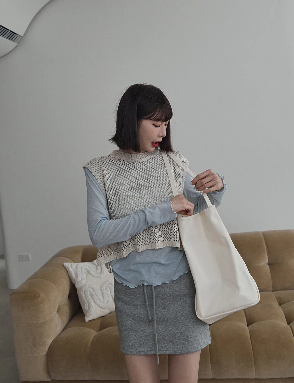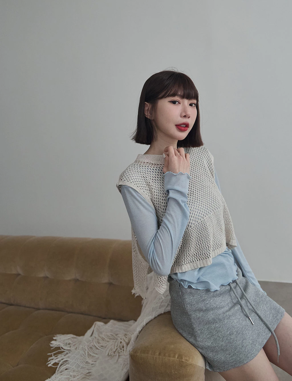 洞洞感開岔背心