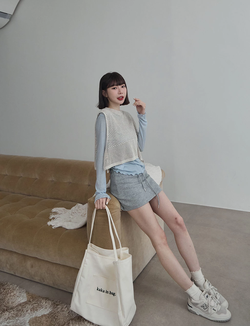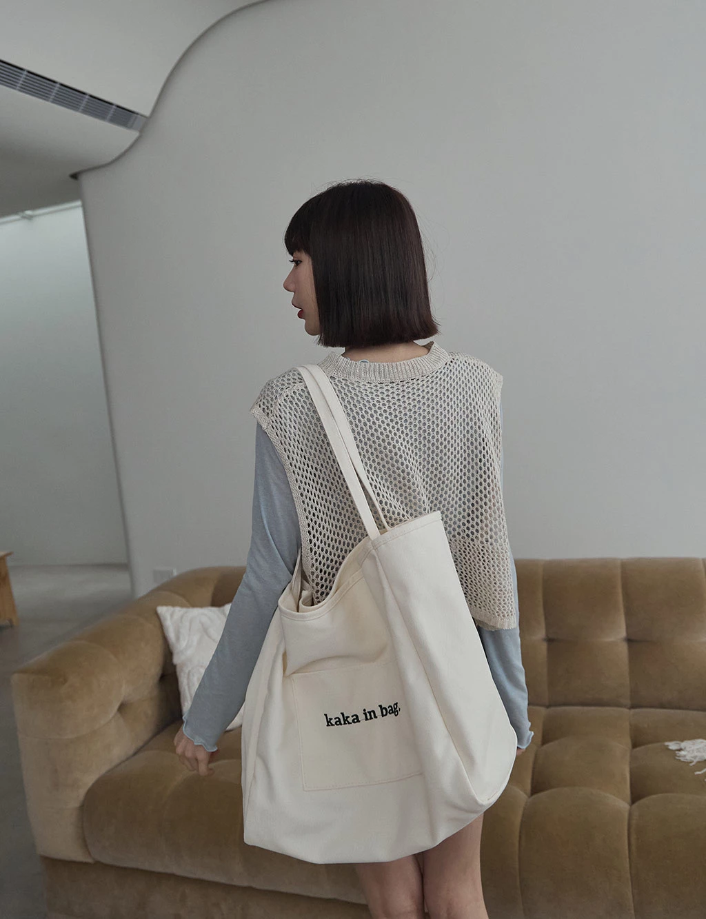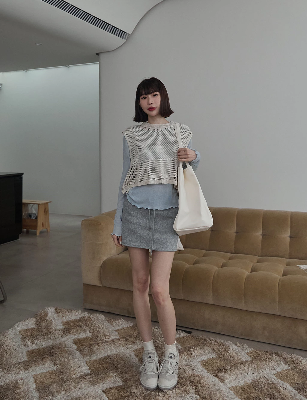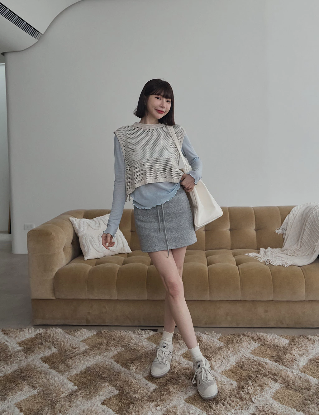 洞洞感開岔背心