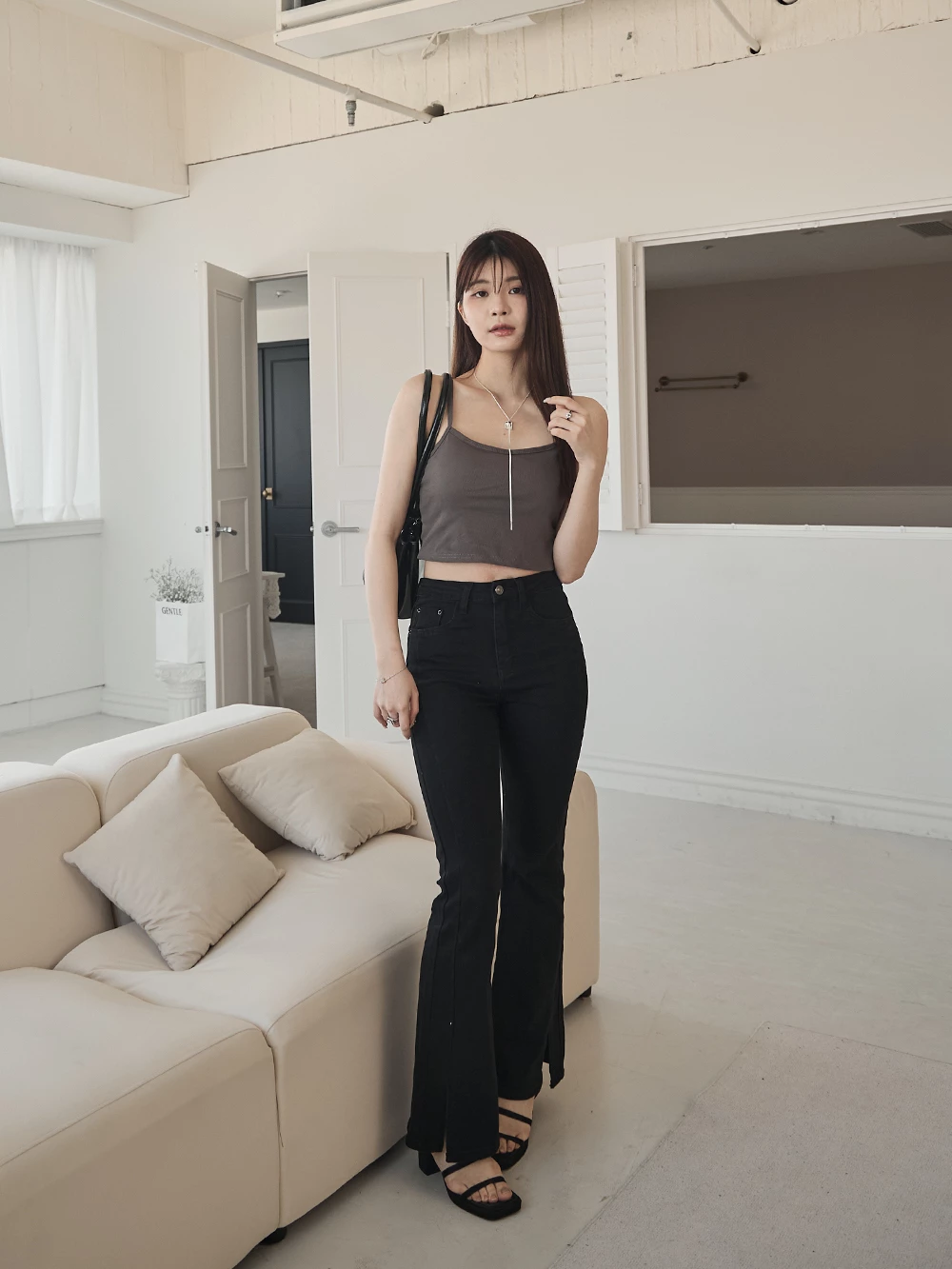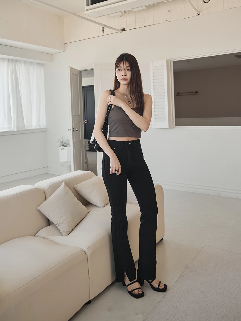 側開岔小喇叭牛仔褲