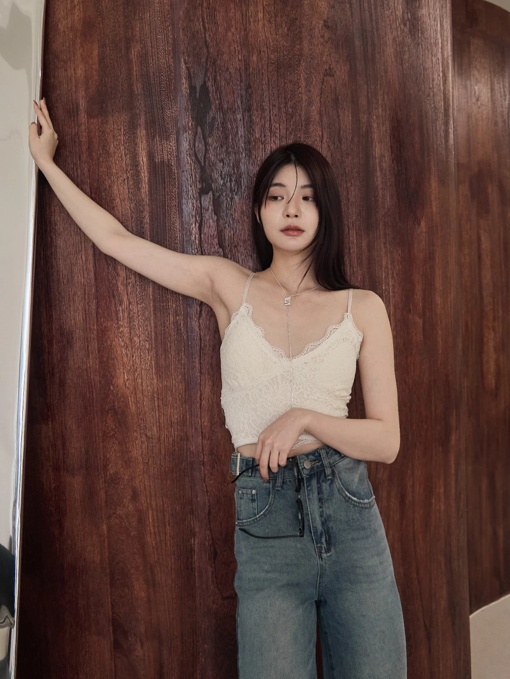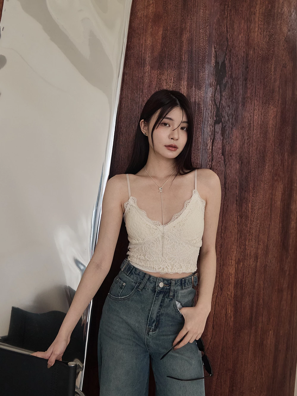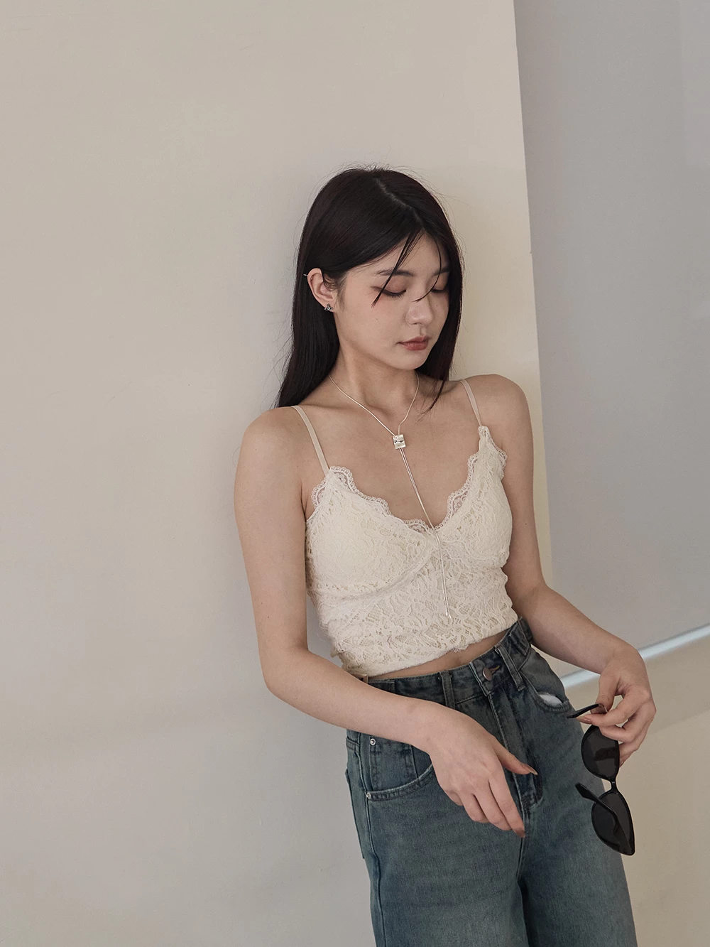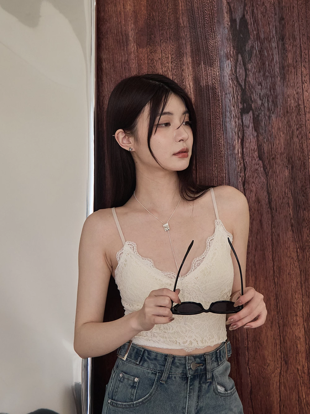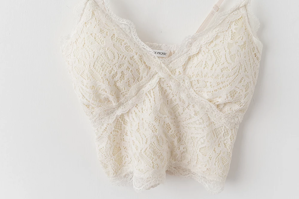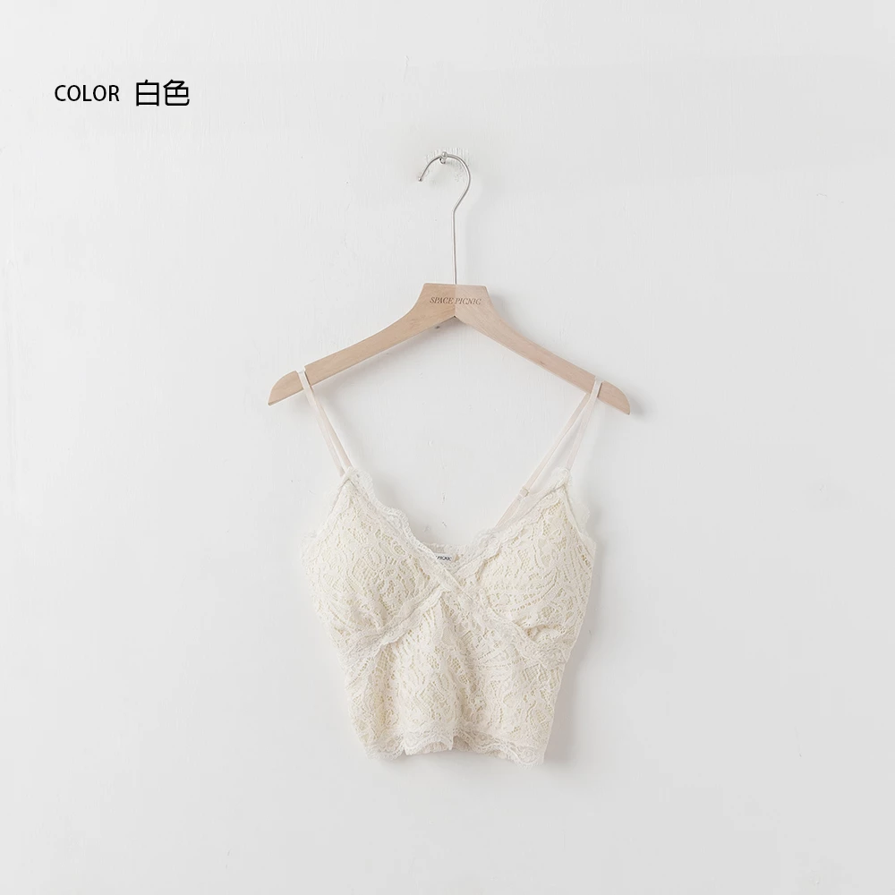 V領蕾絲細肩胸墊背心