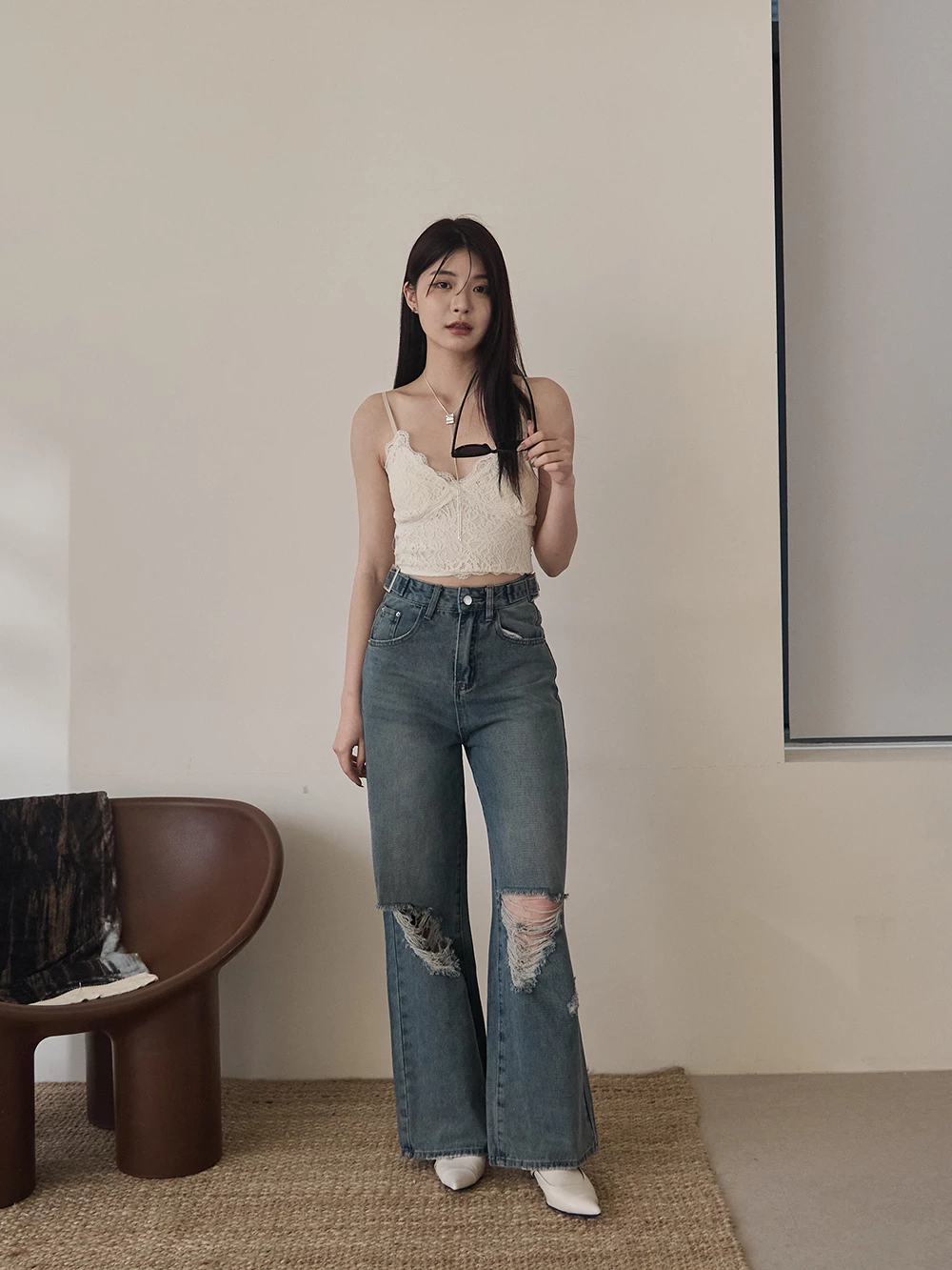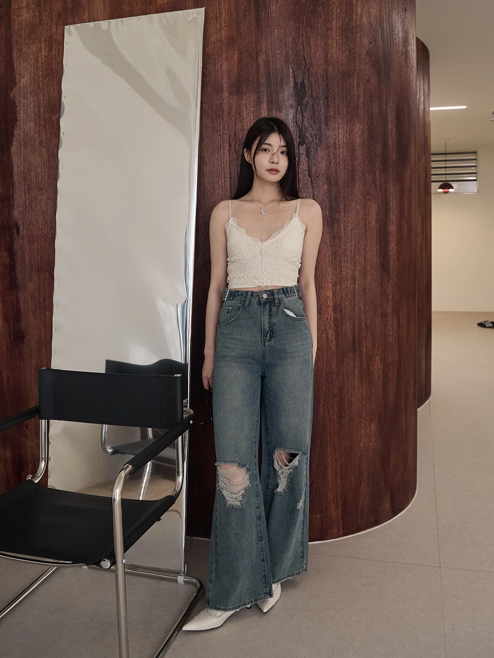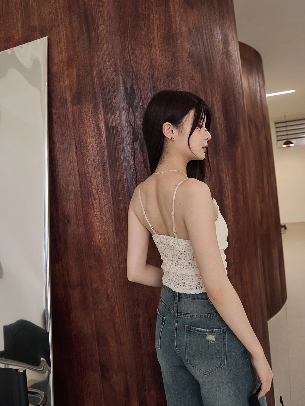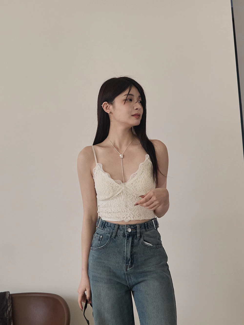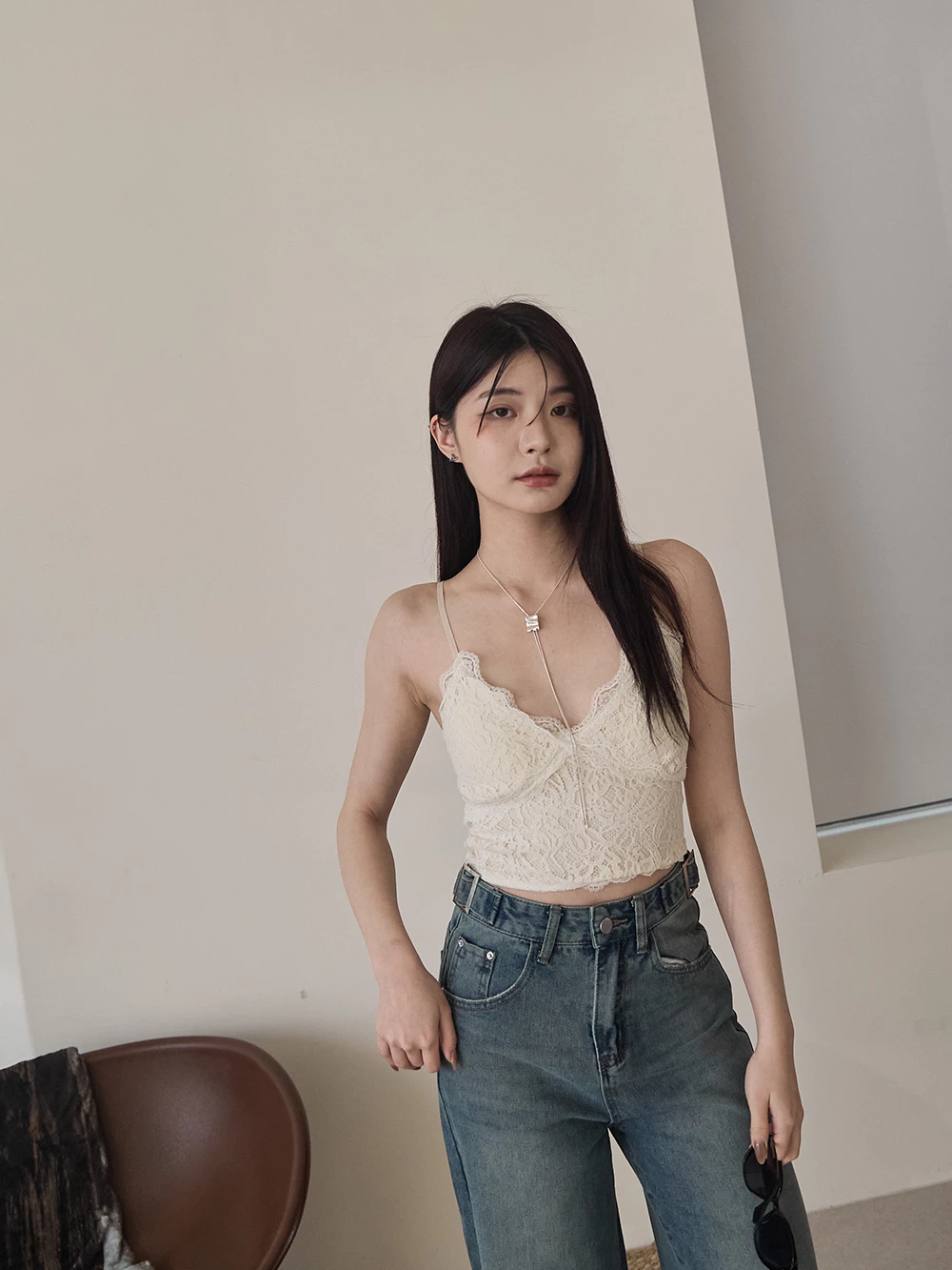 V領蕾絲細肩胸墊背心