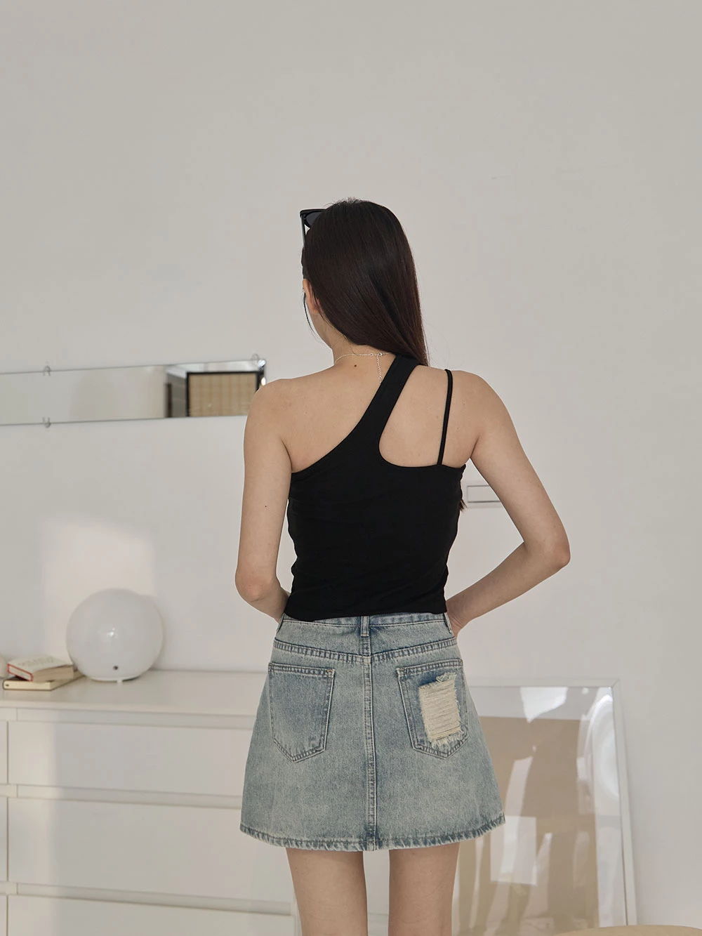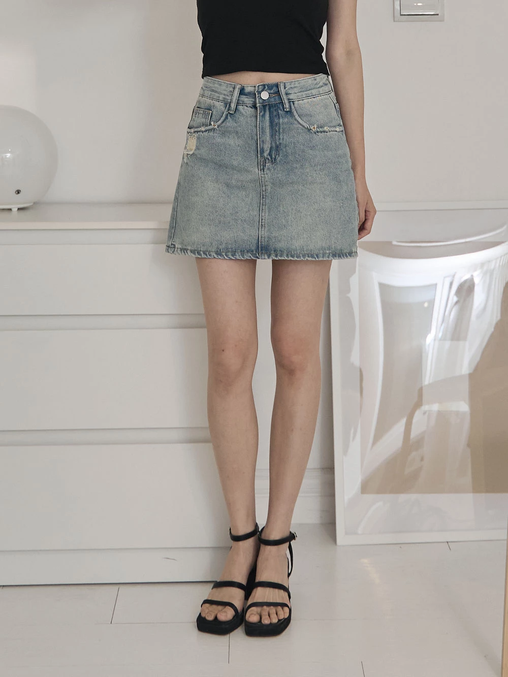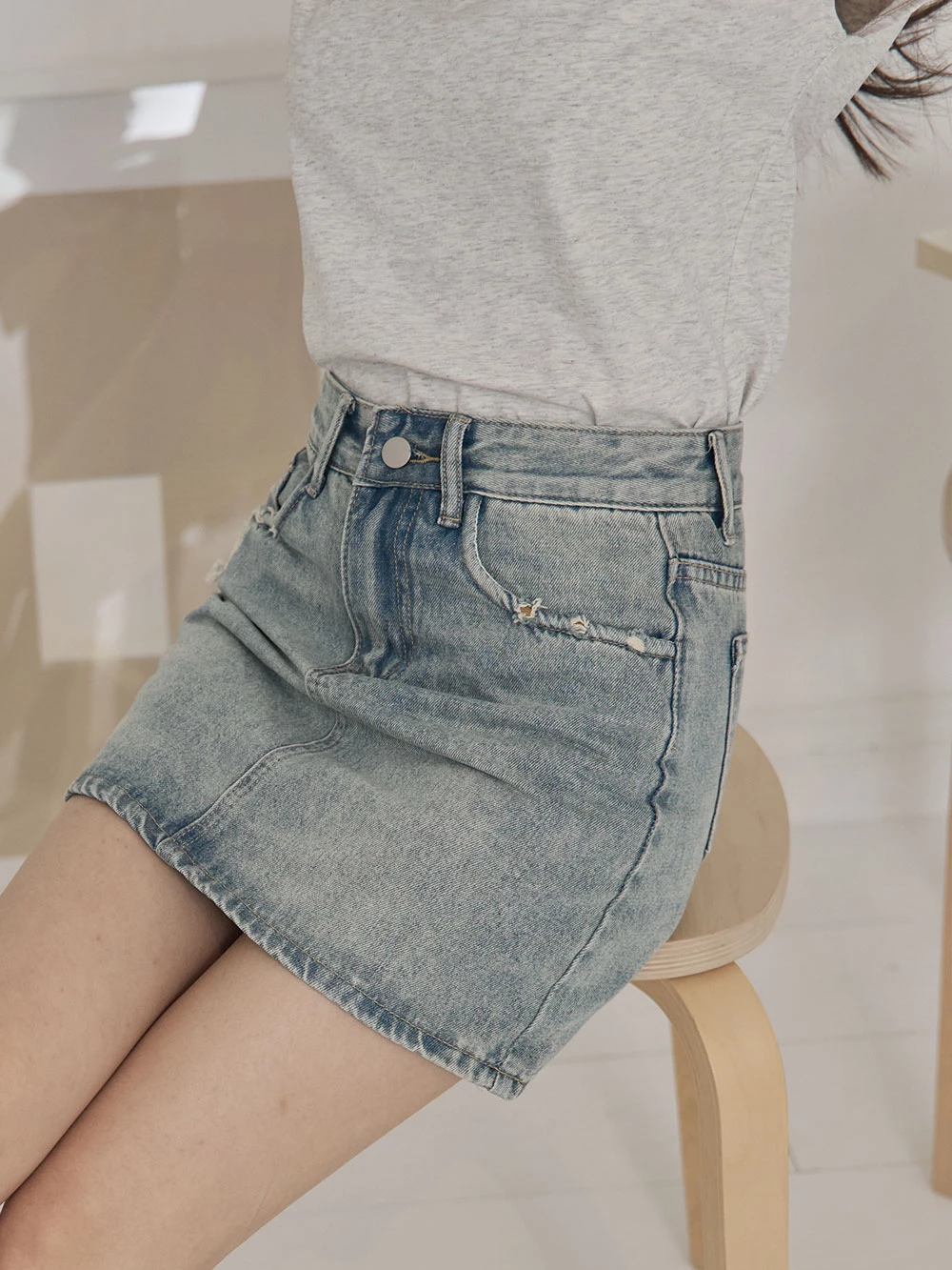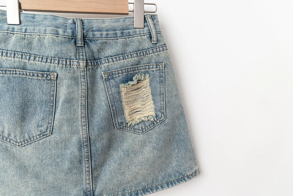 抓破造型牛仔短褲裙