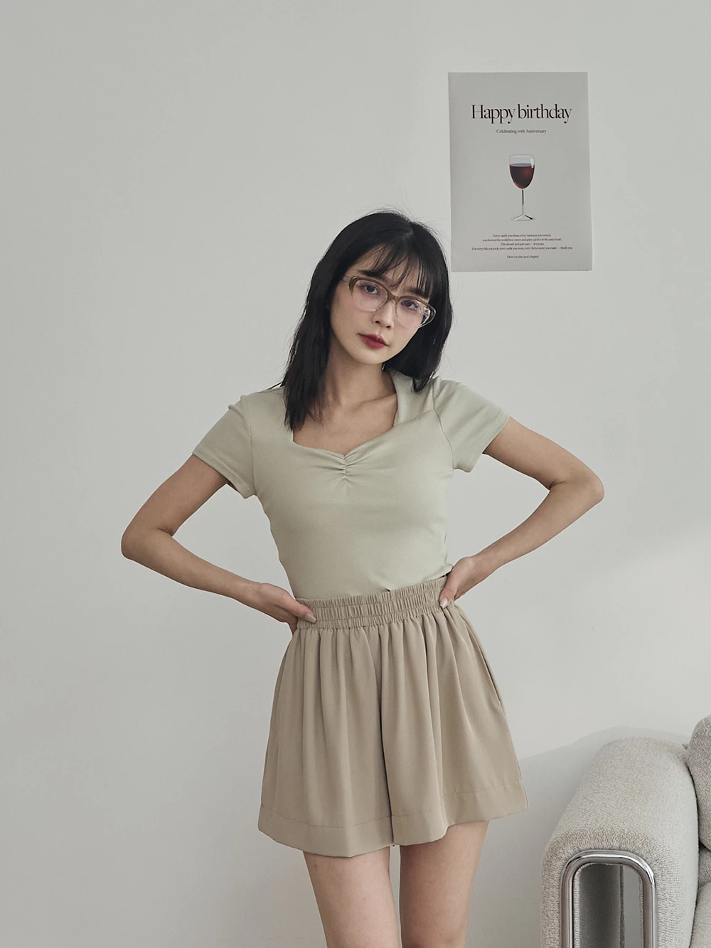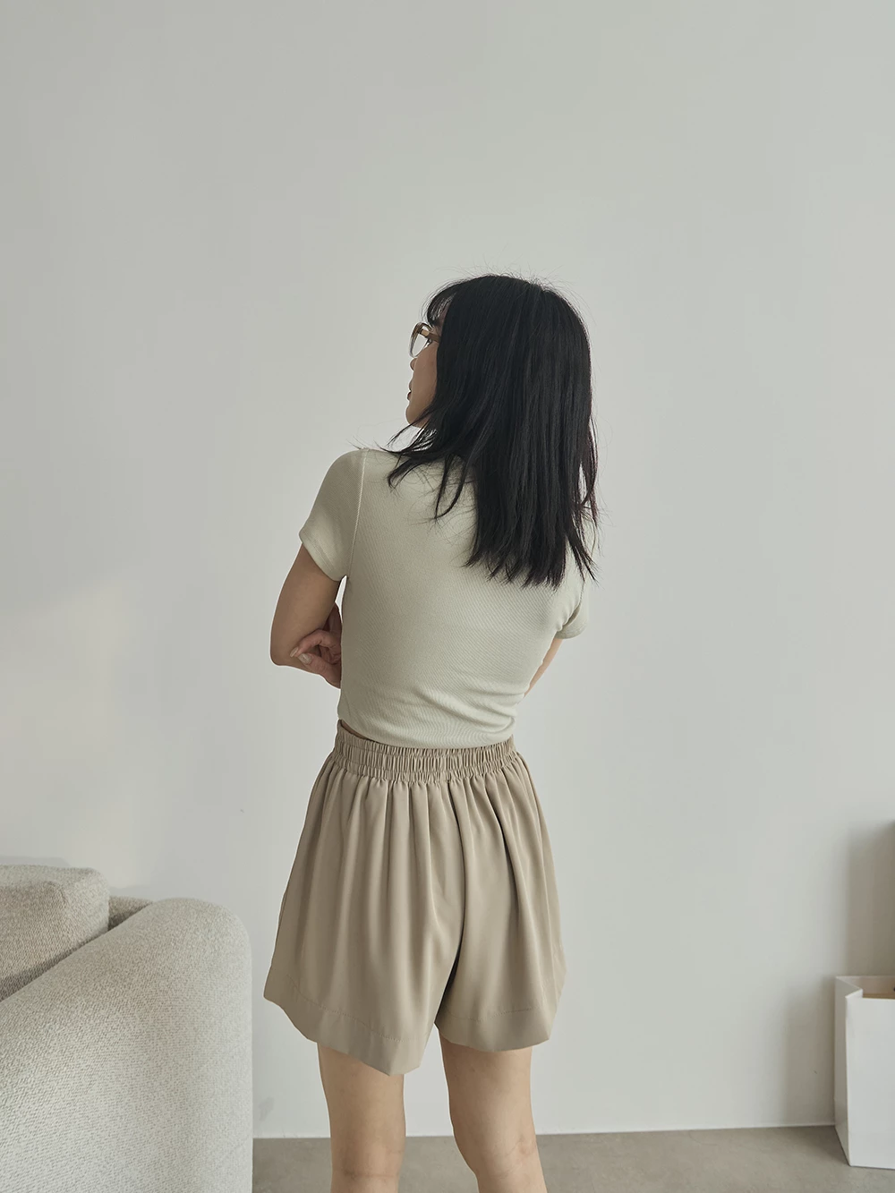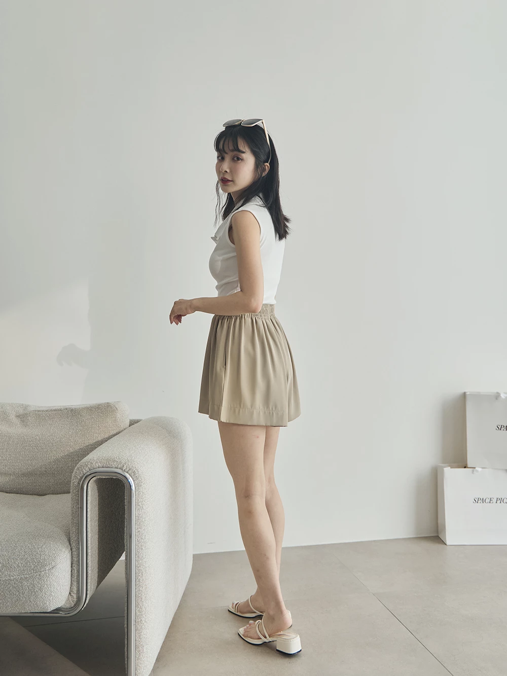 滑面腰鬆緊雪紡短褲 | Space Picnic