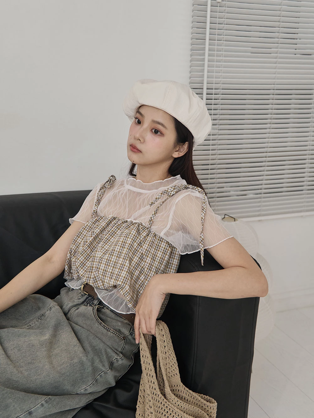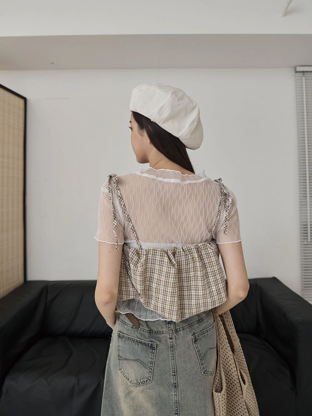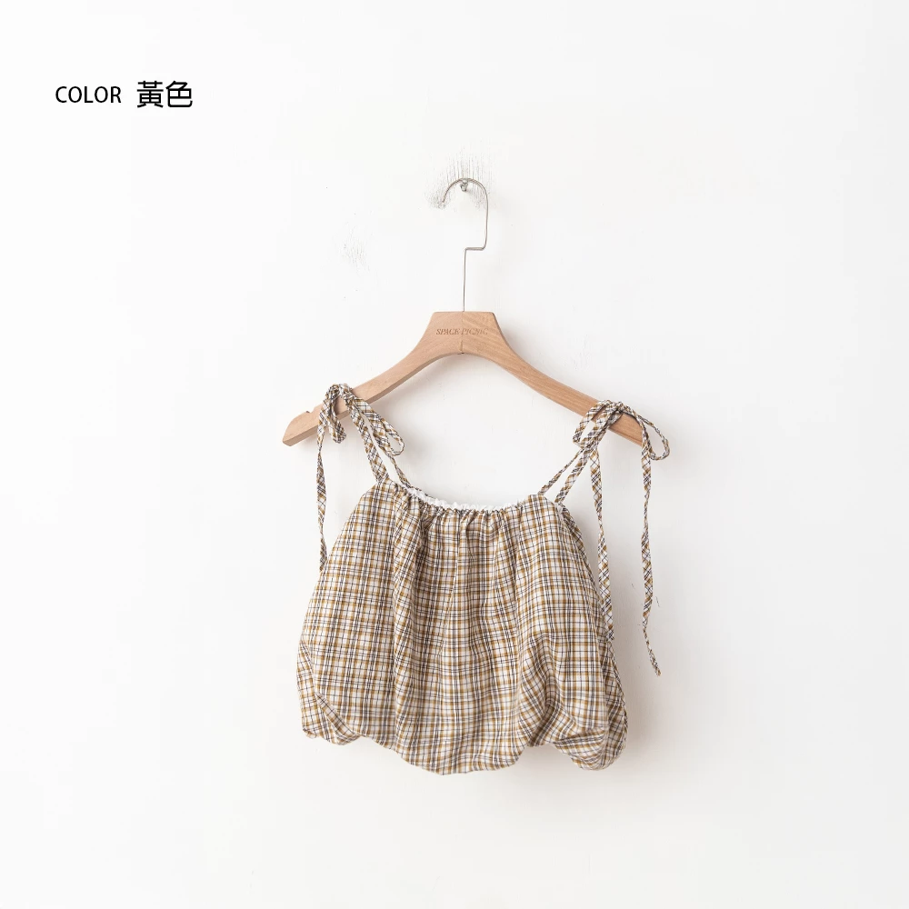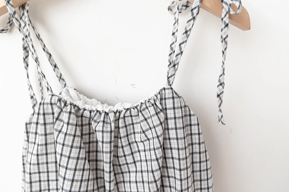 格紋細肩綁帶背心