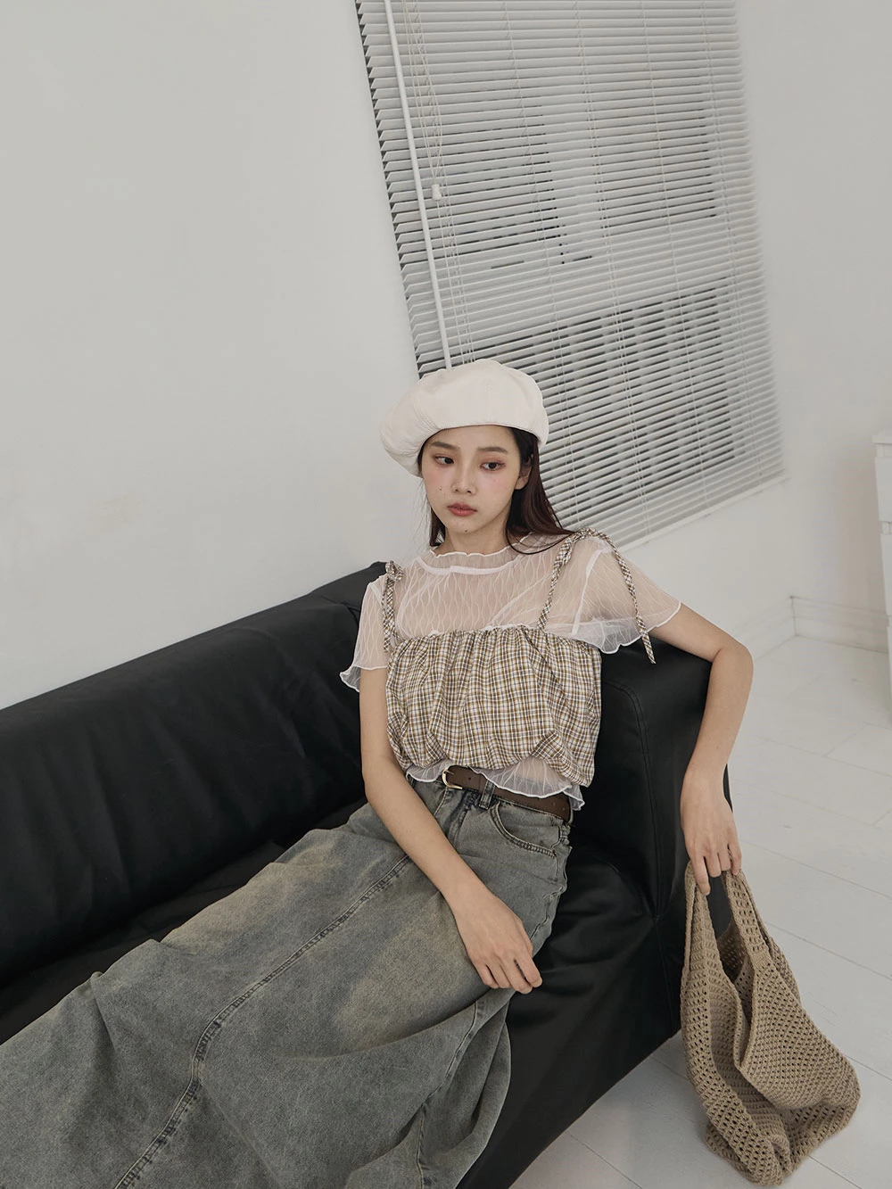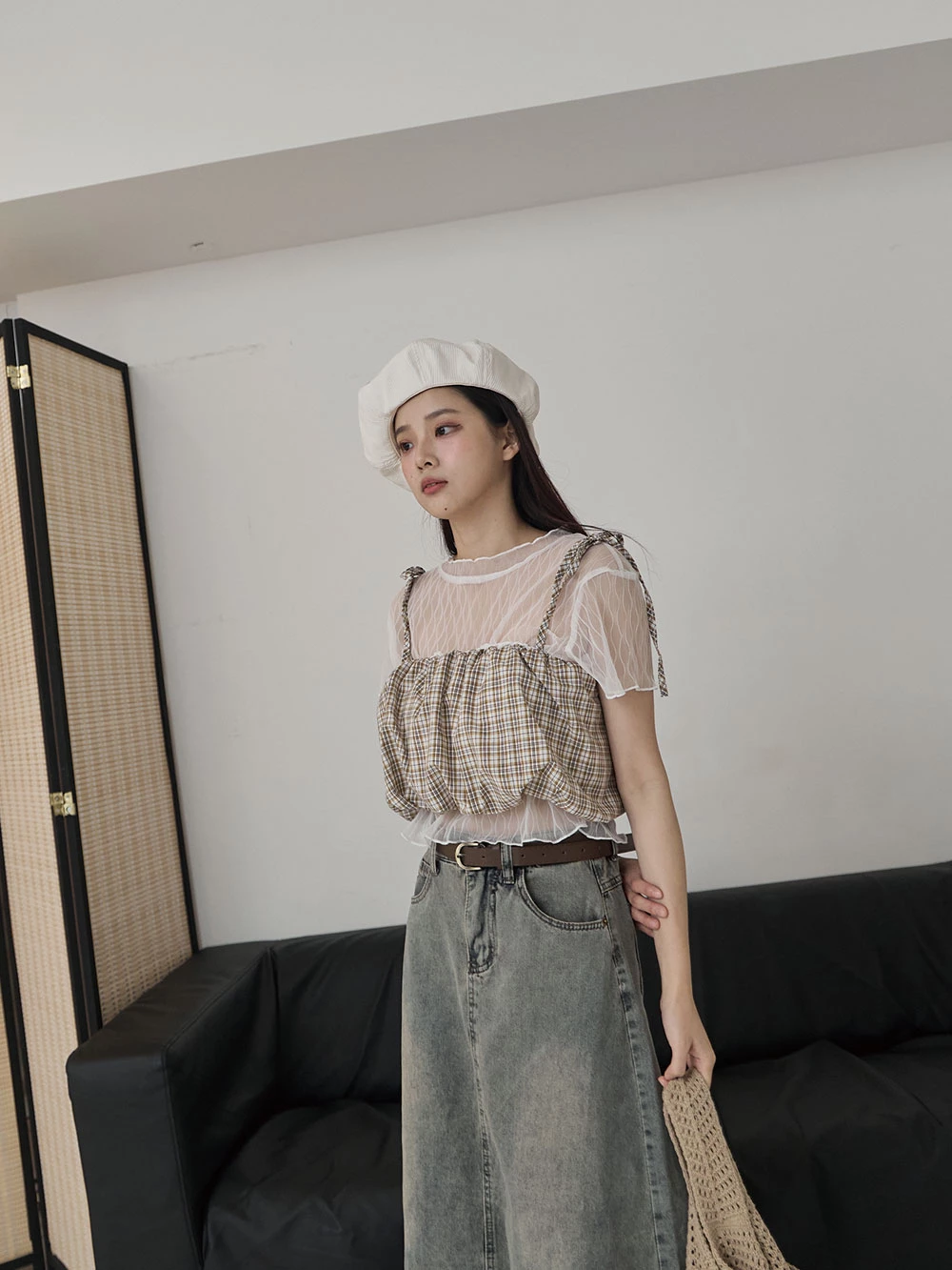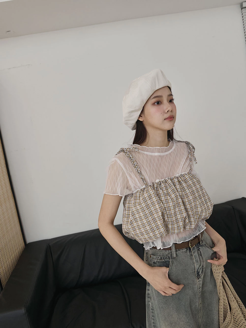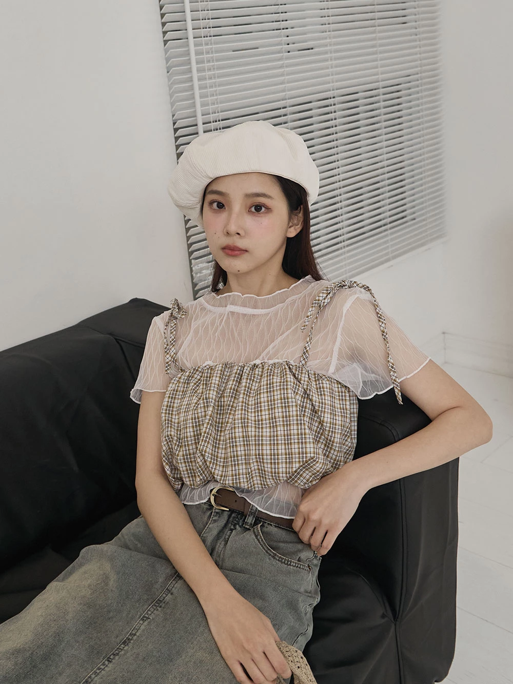 格紋細肩綁帶背心