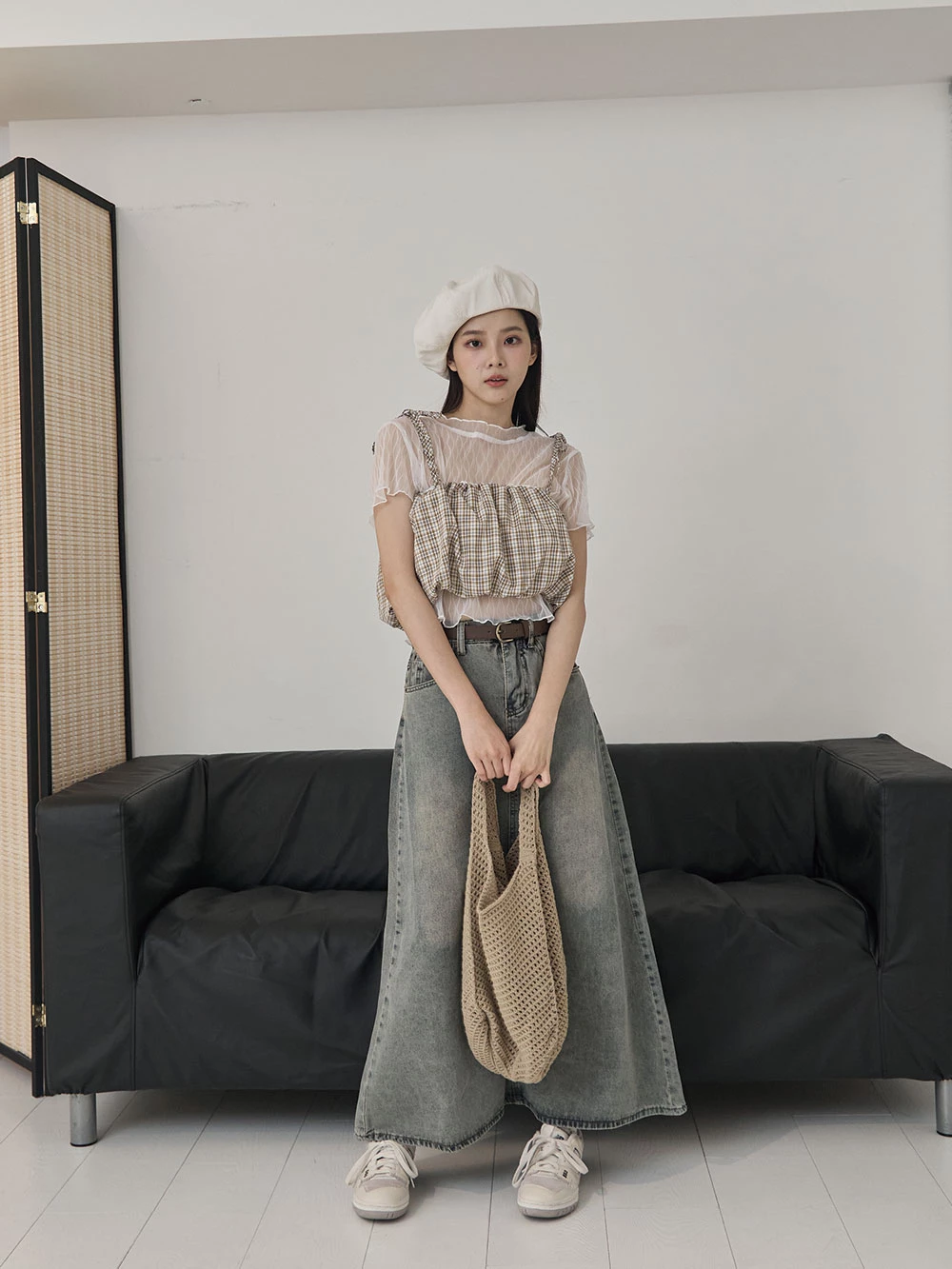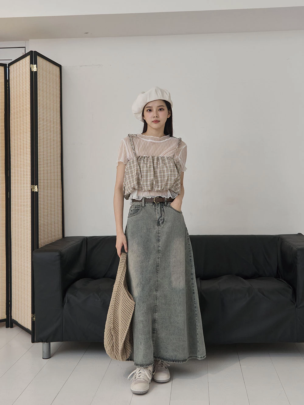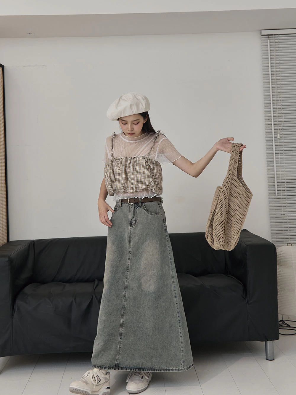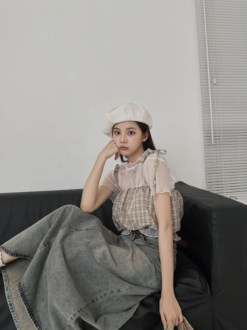 格紋細肩綁帶背心