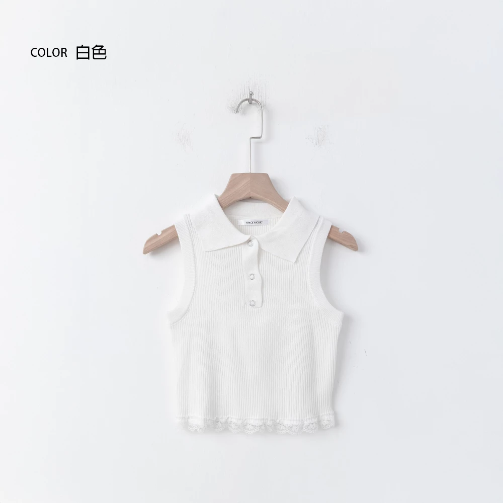 蕾絲下擺polo領背心