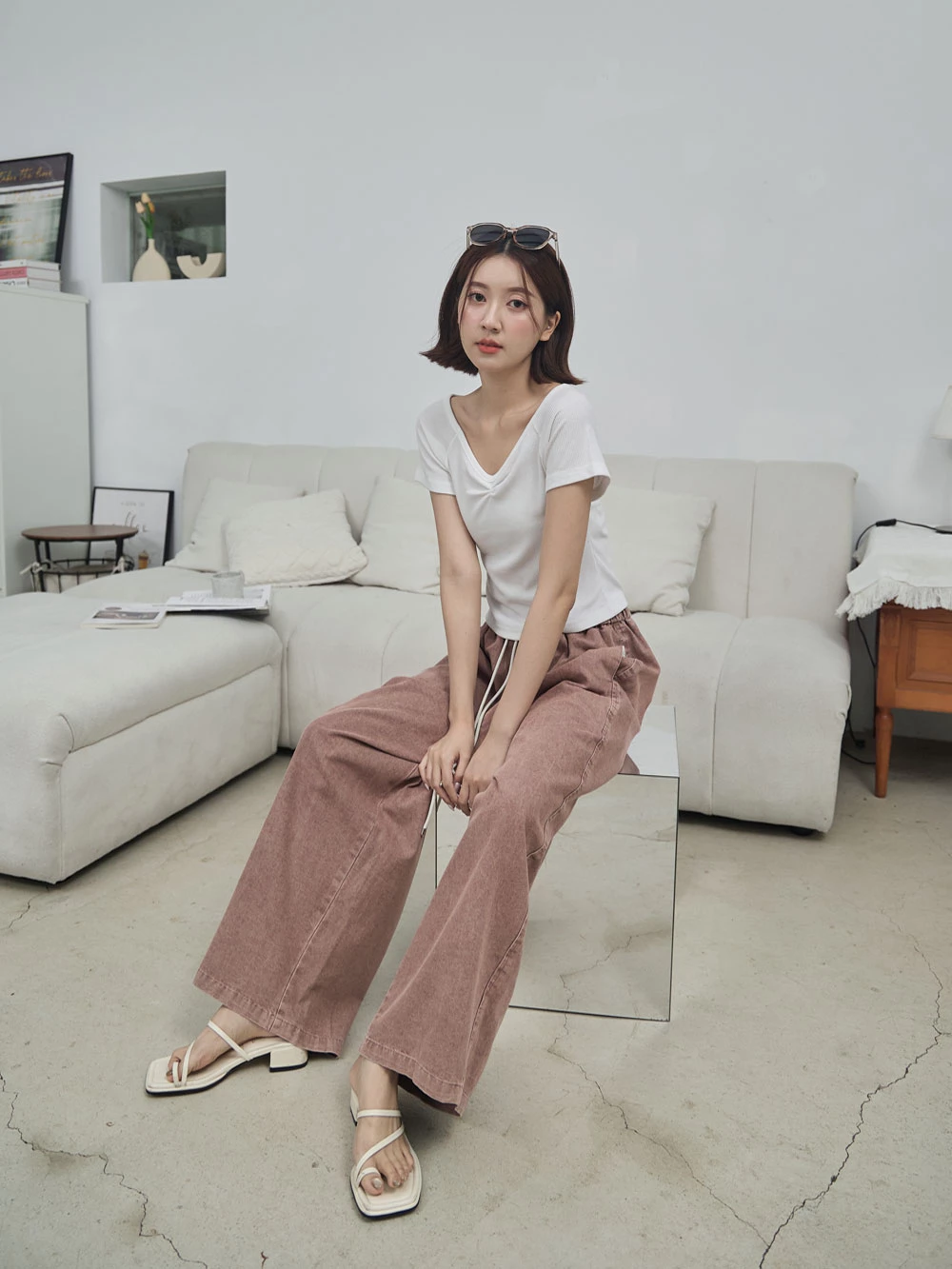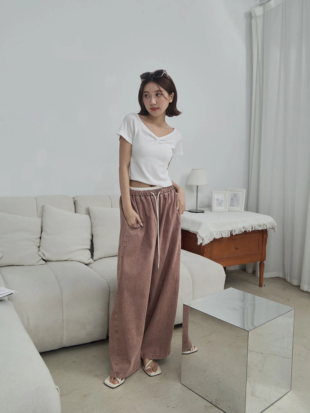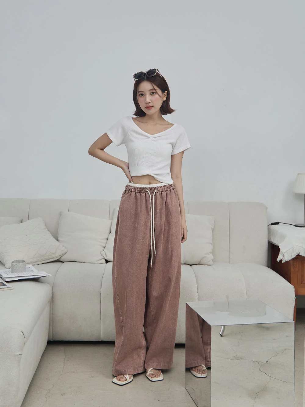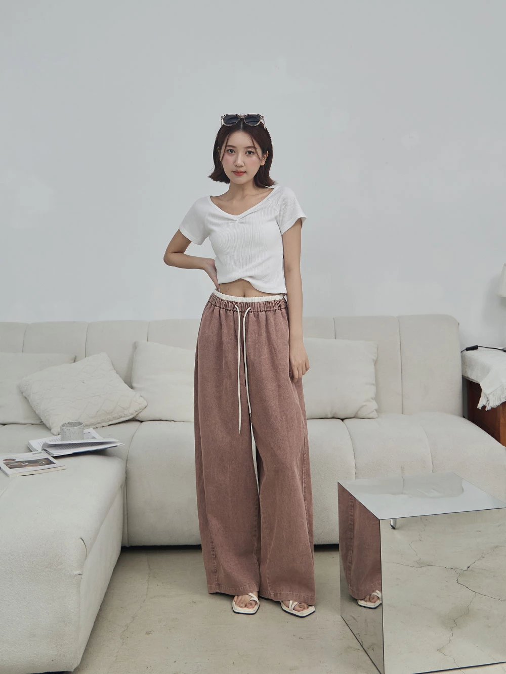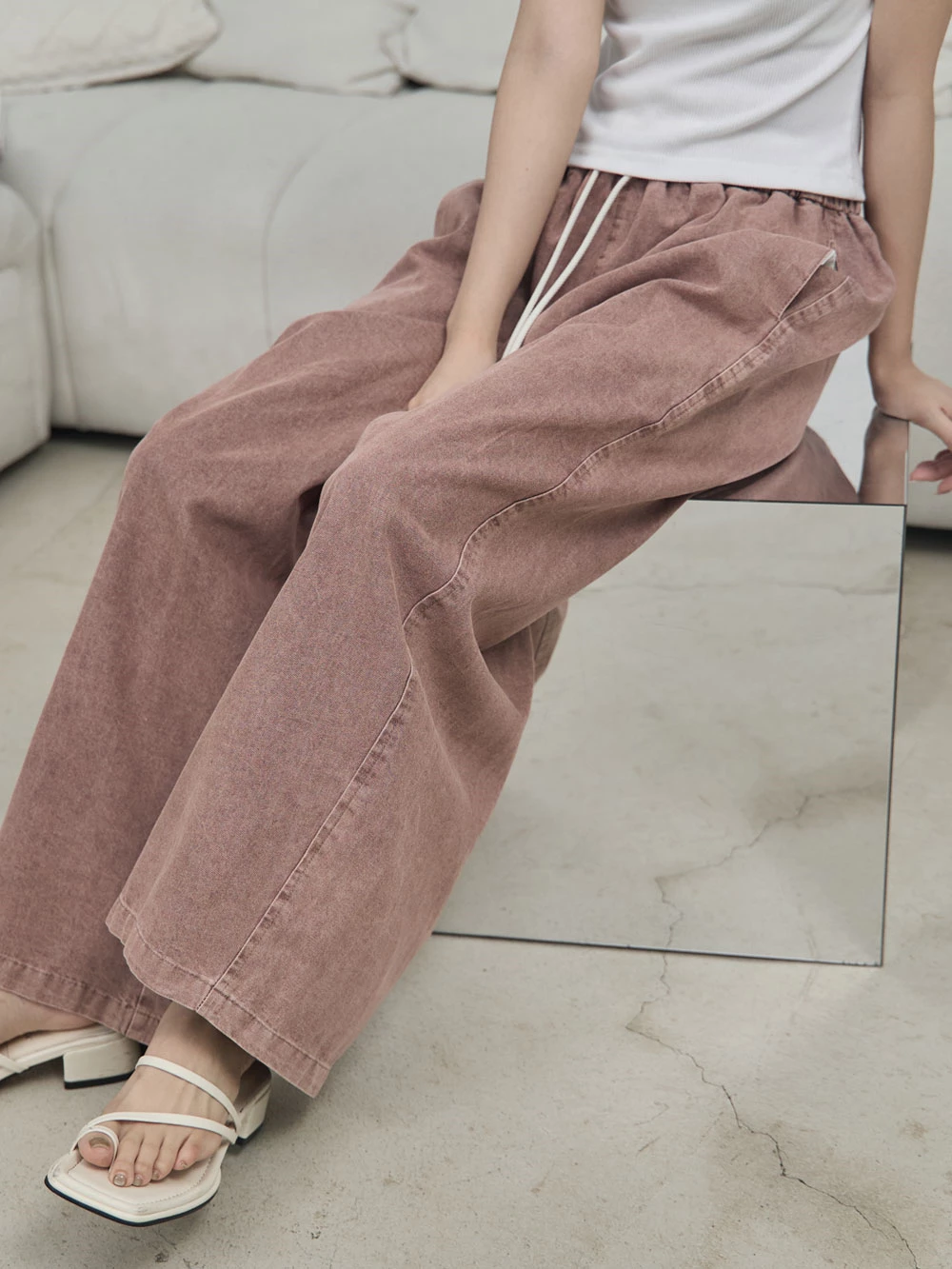 撞色抽繩牛仔褲 | Space Picnic