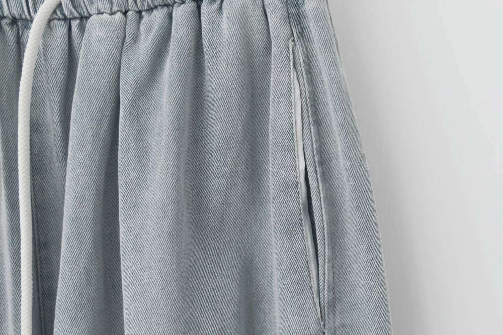 撞色抽繩牛仔褲