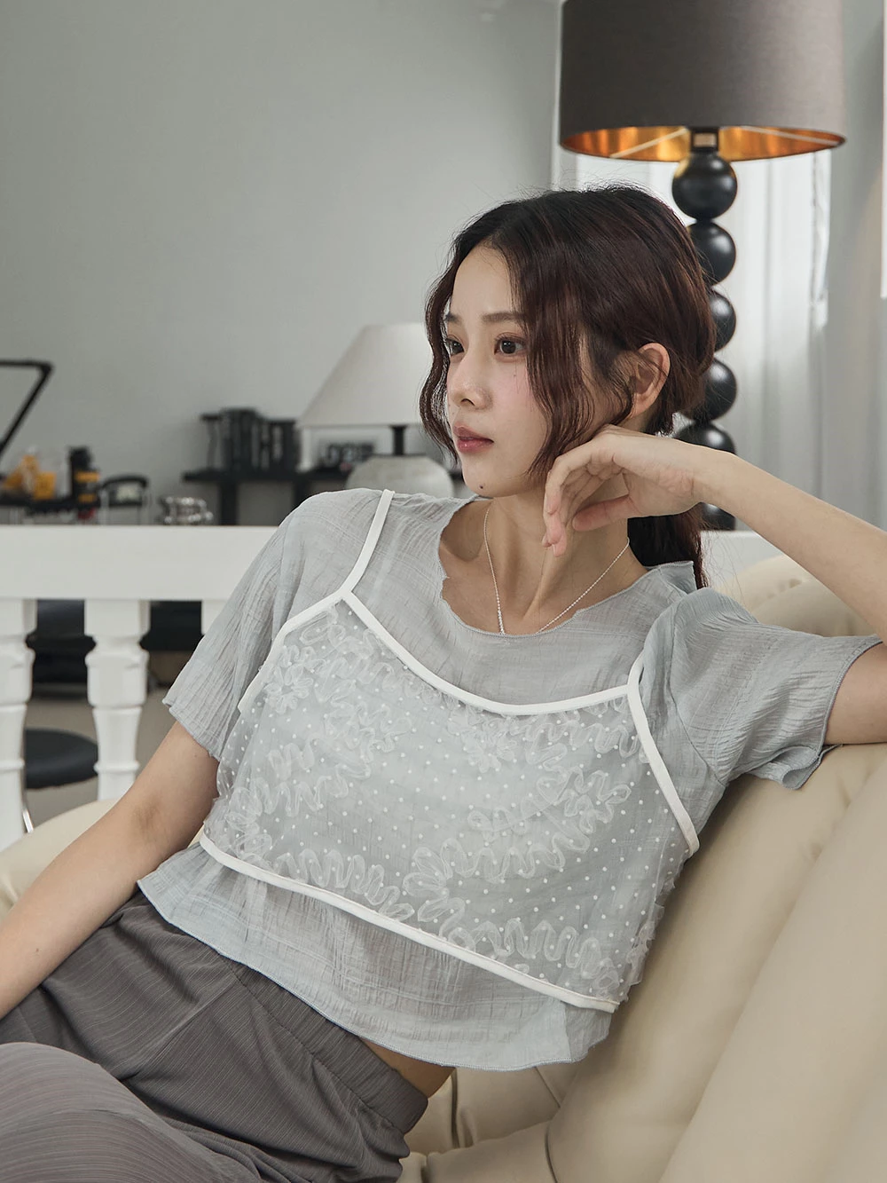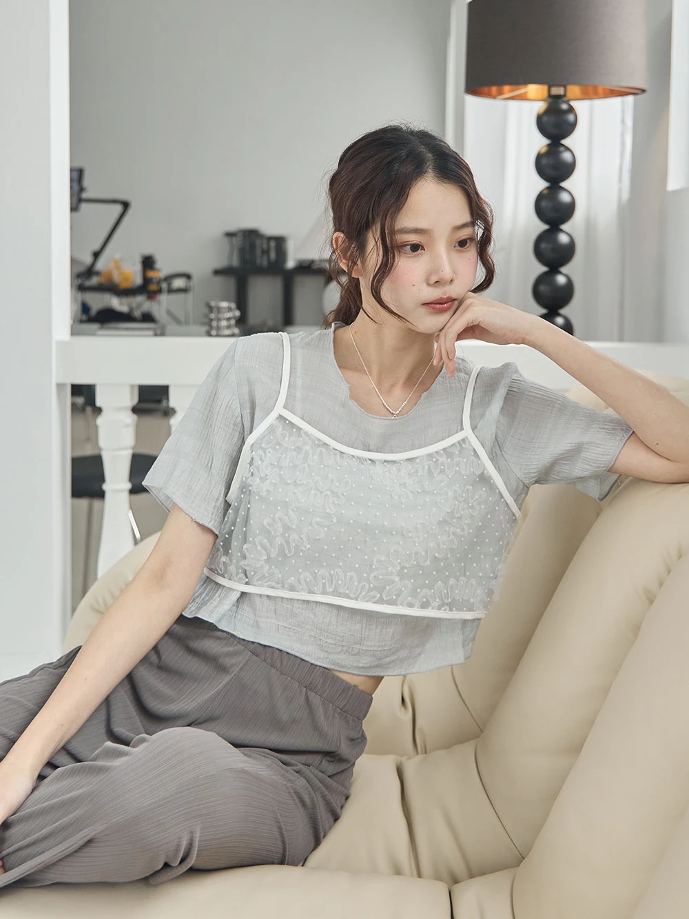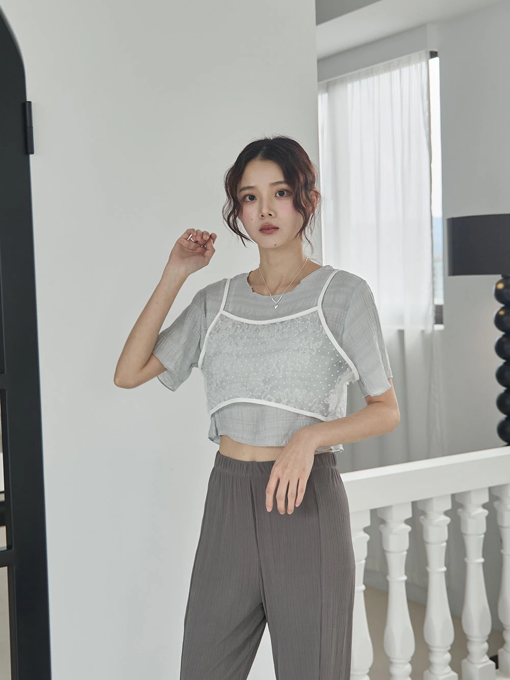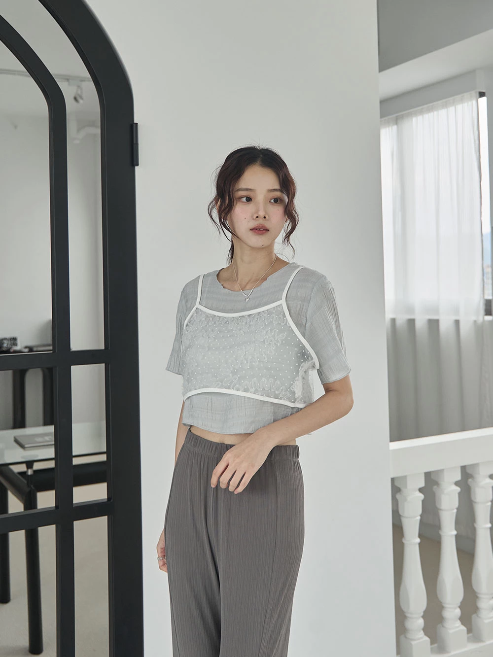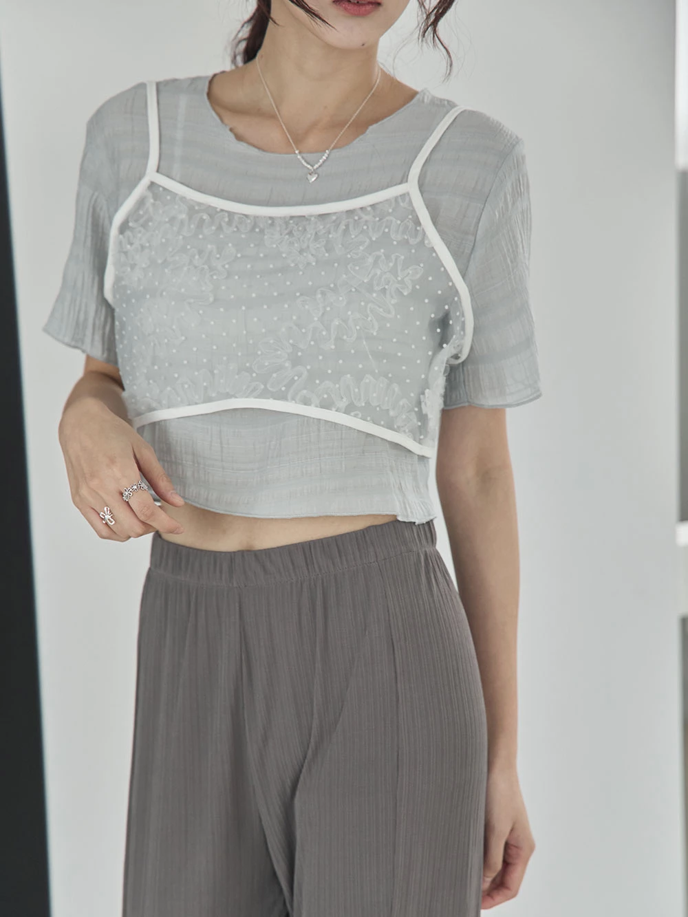 網紗花朵短背心