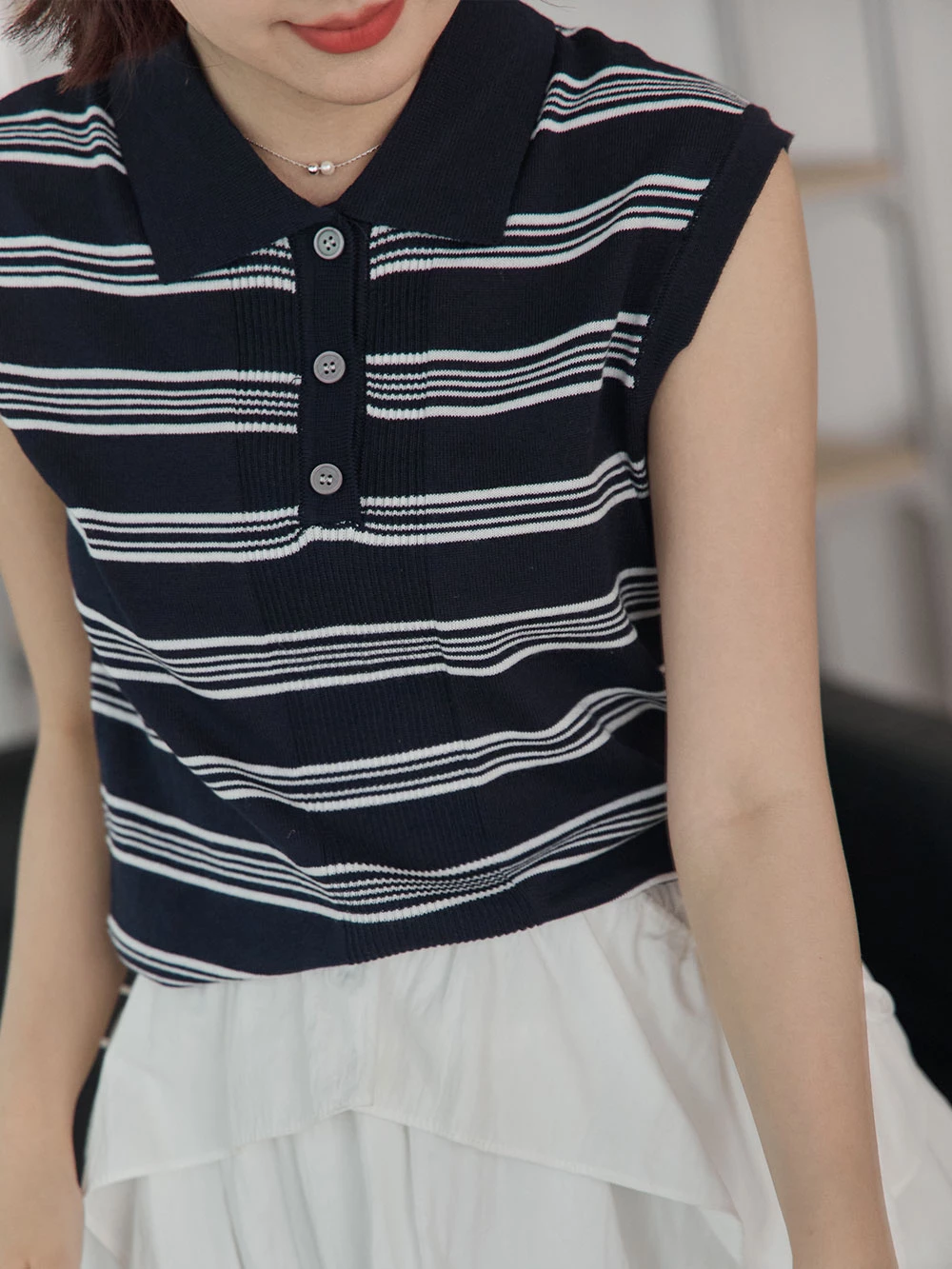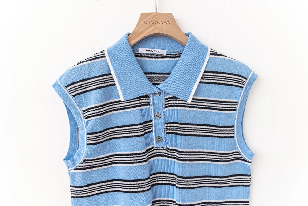polo領條紋針織無袖背心 | Space Picnic