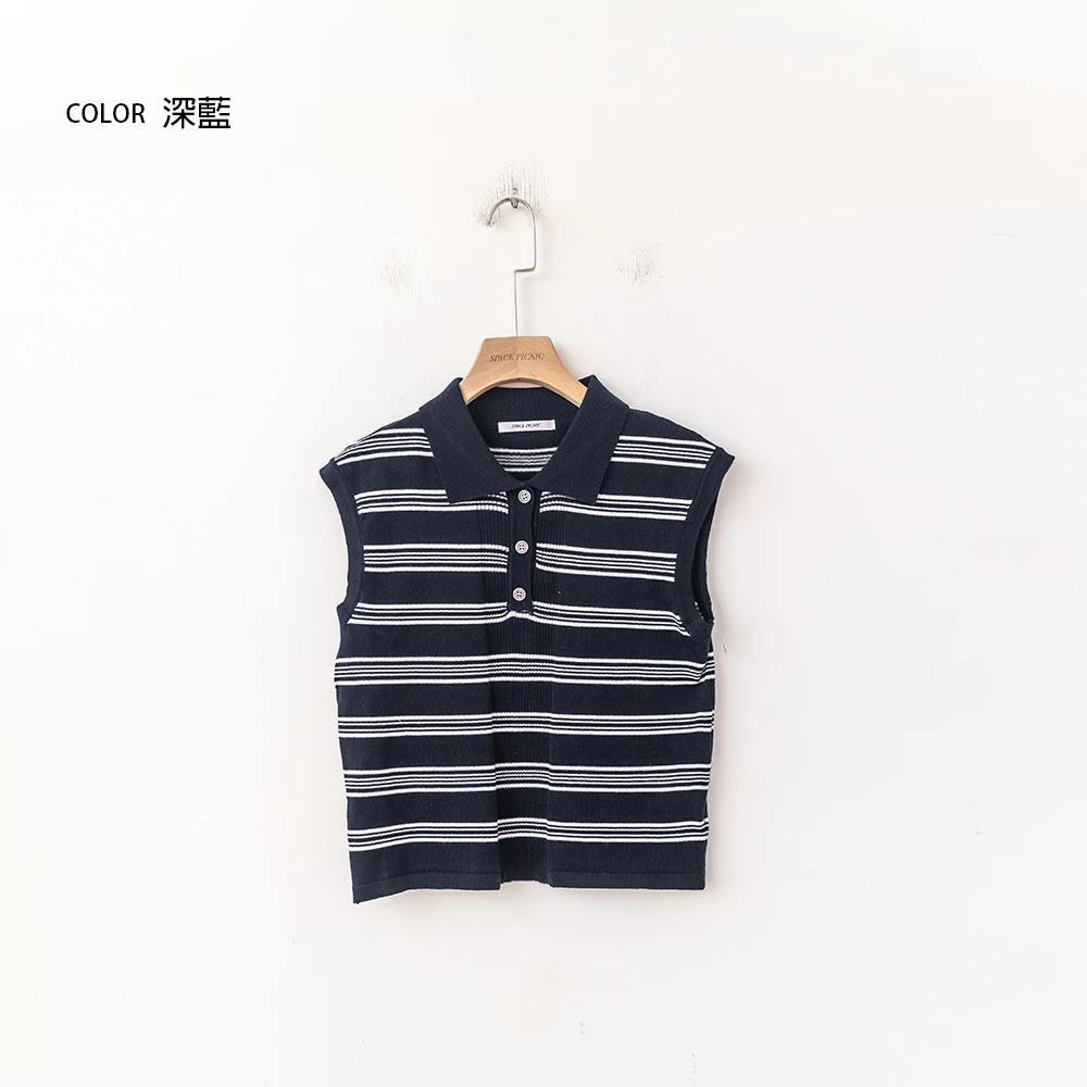 polo領條紋針織無袖背心