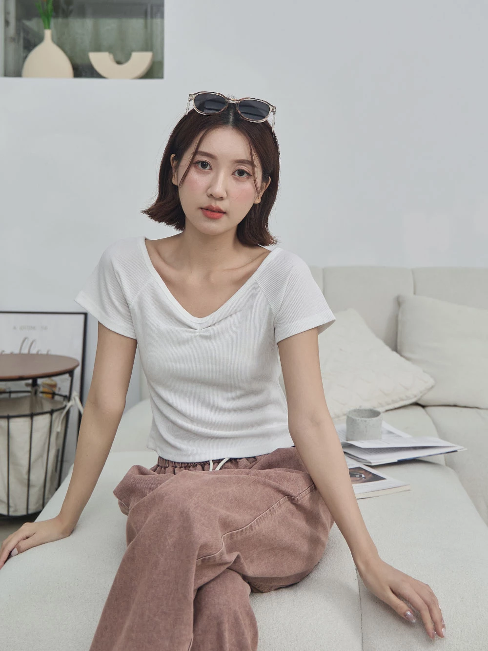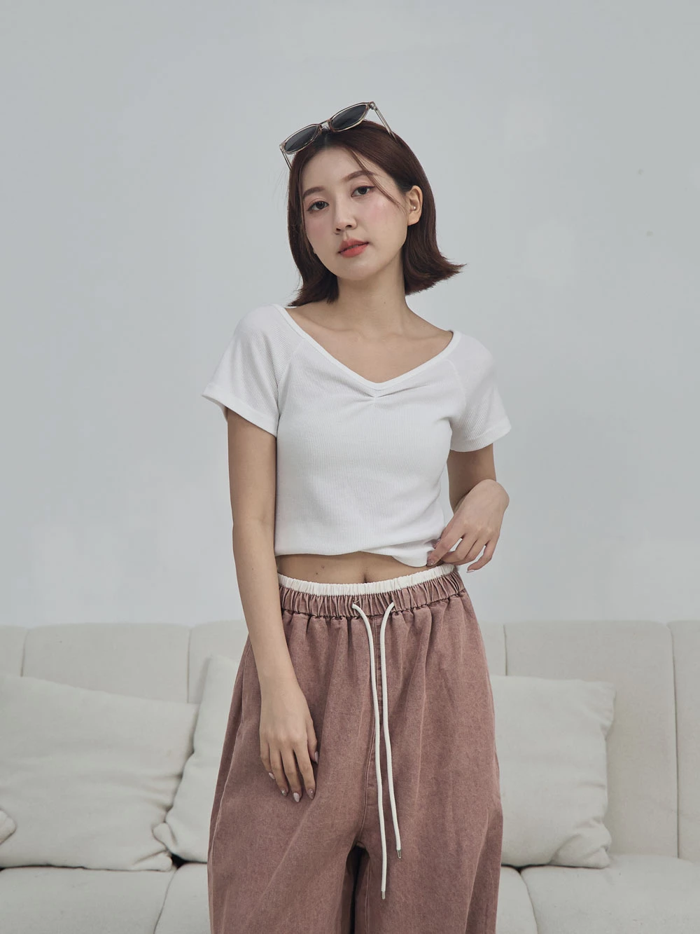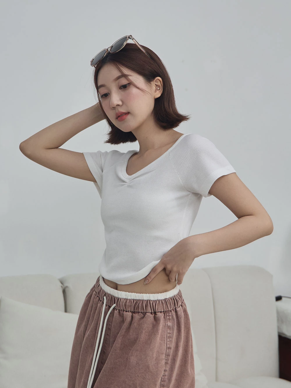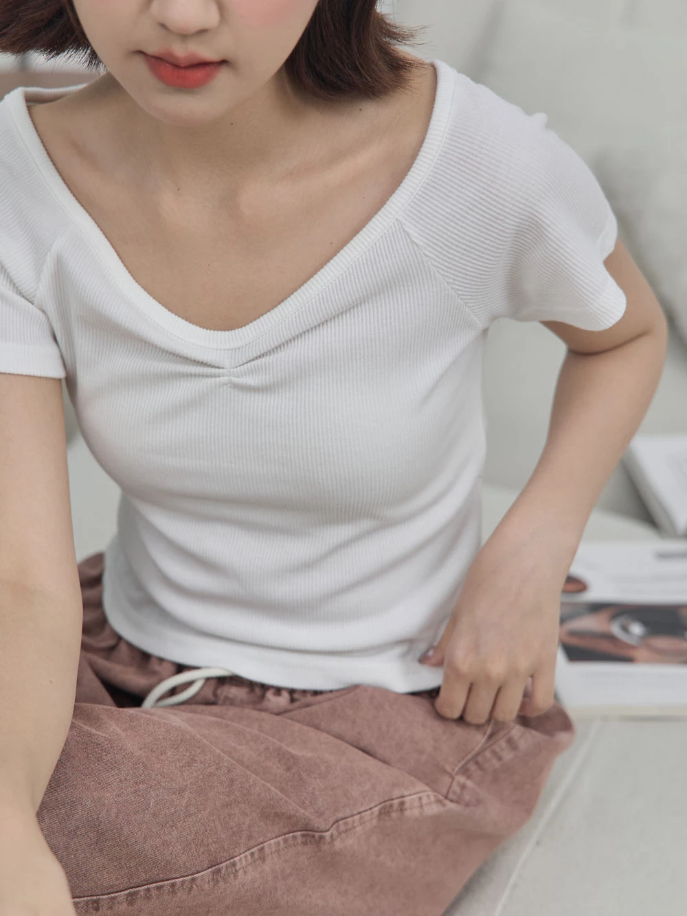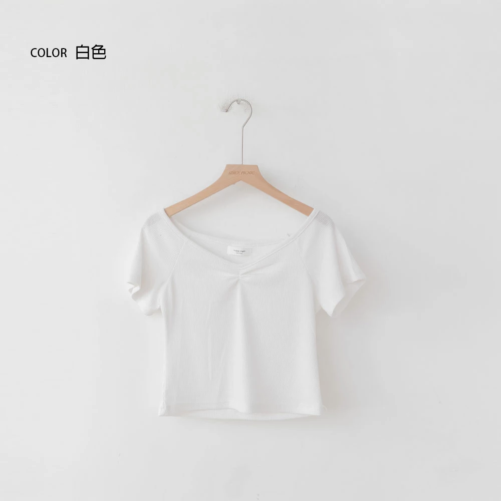 正韓-抓皺V領針織上衣