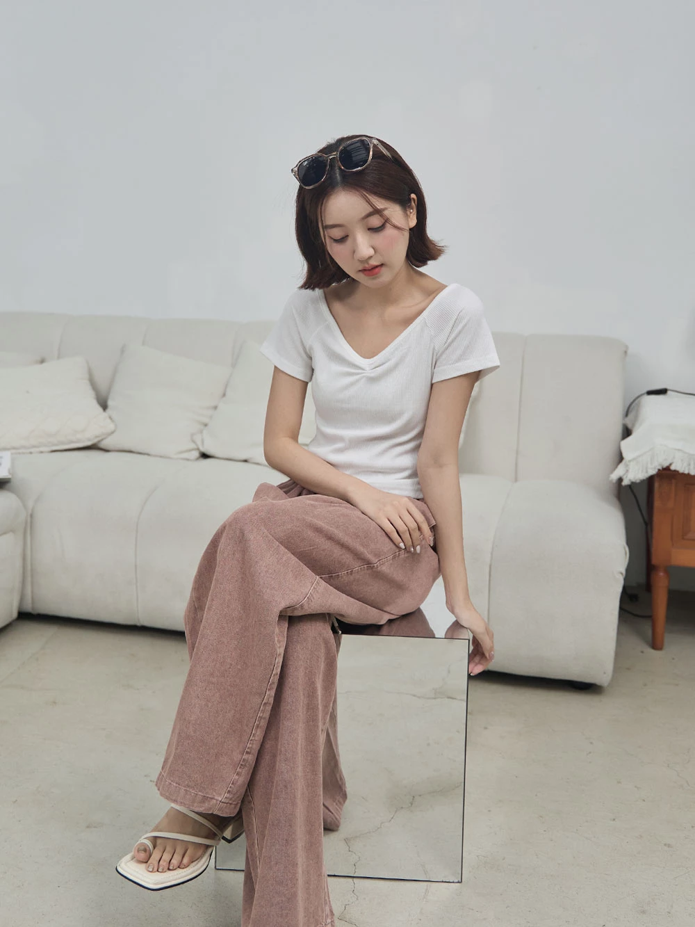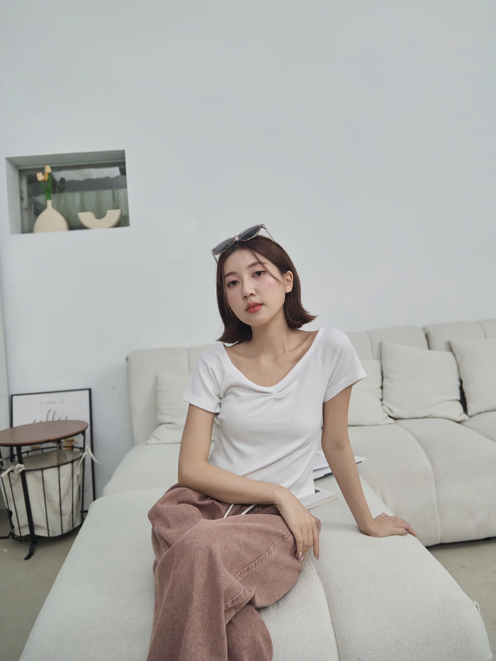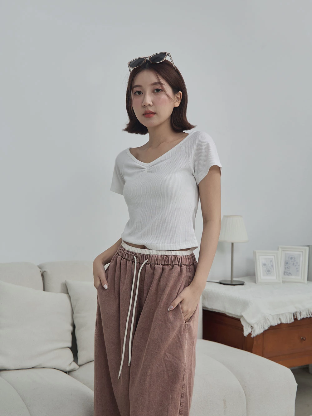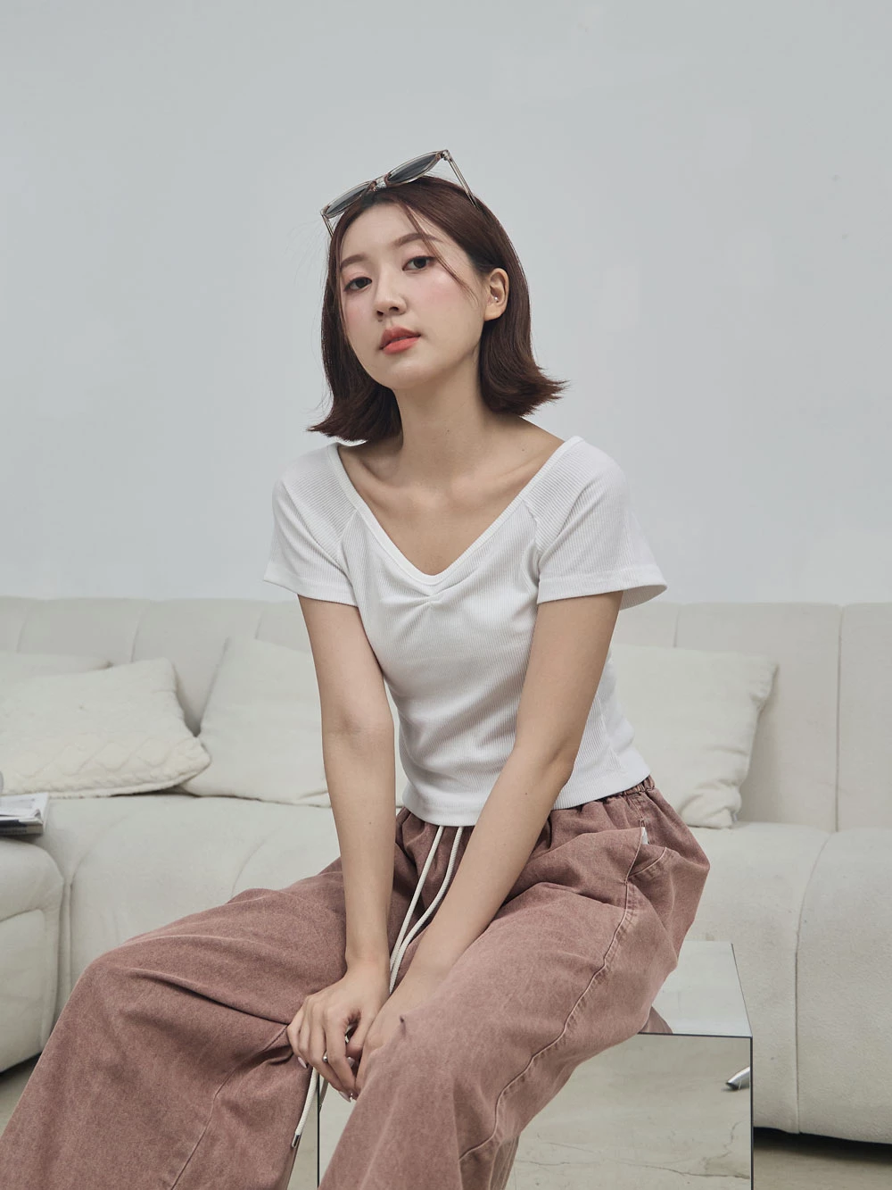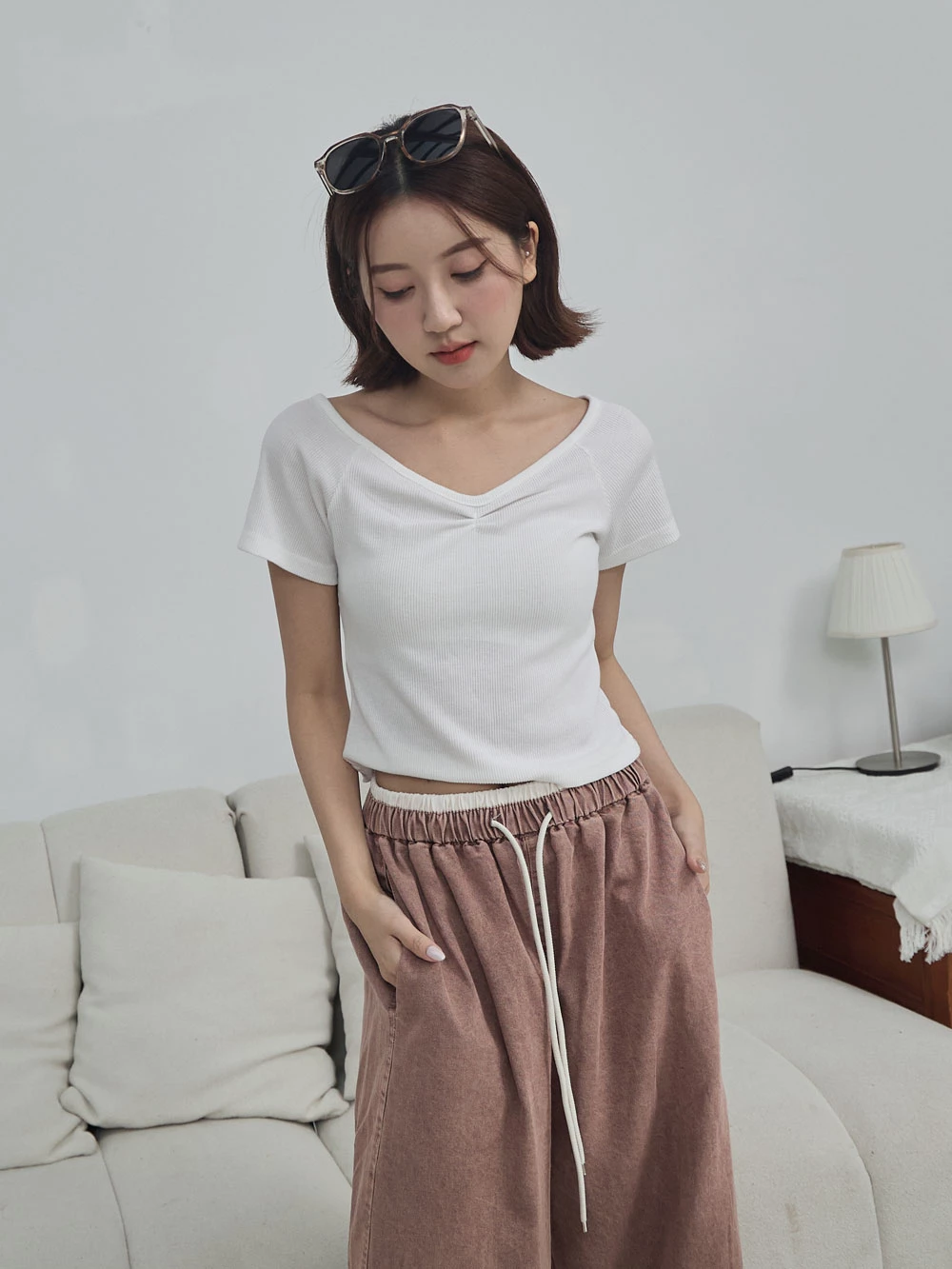 正韓-抓皺V領針織上衣