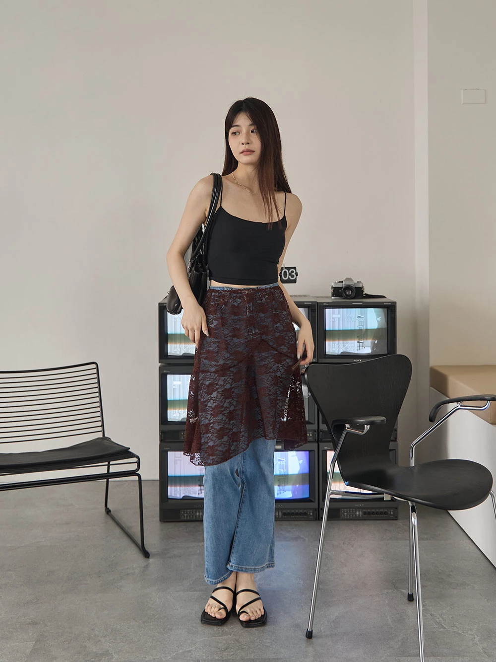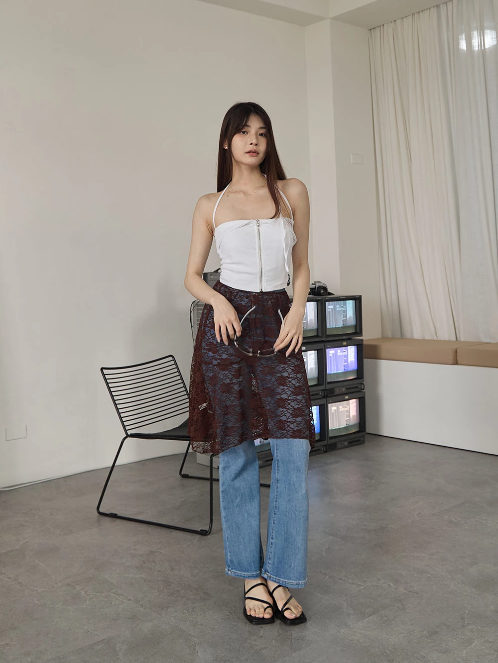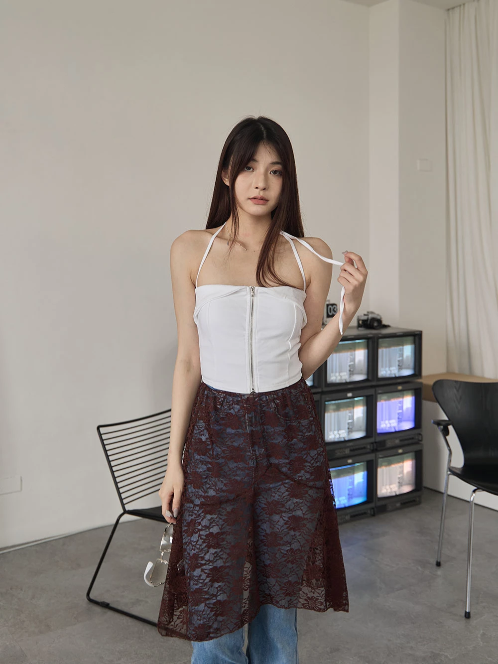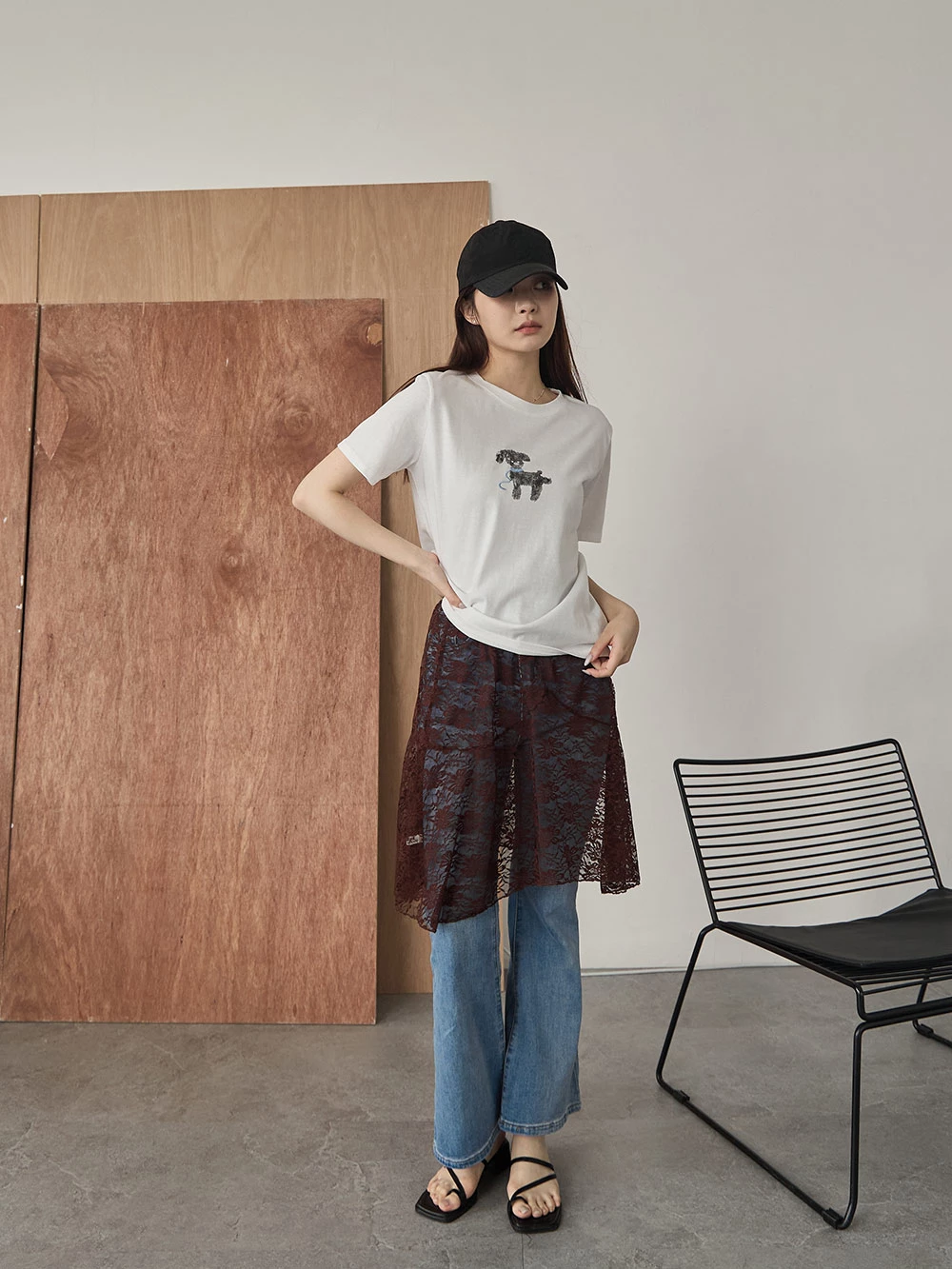 鏤空蕾絲外搭半身裙廉