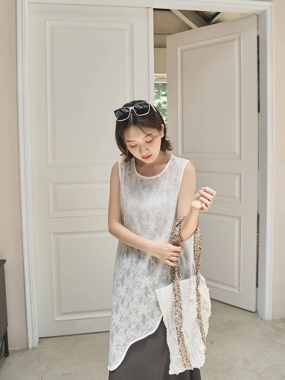 小花紋理感側背袋