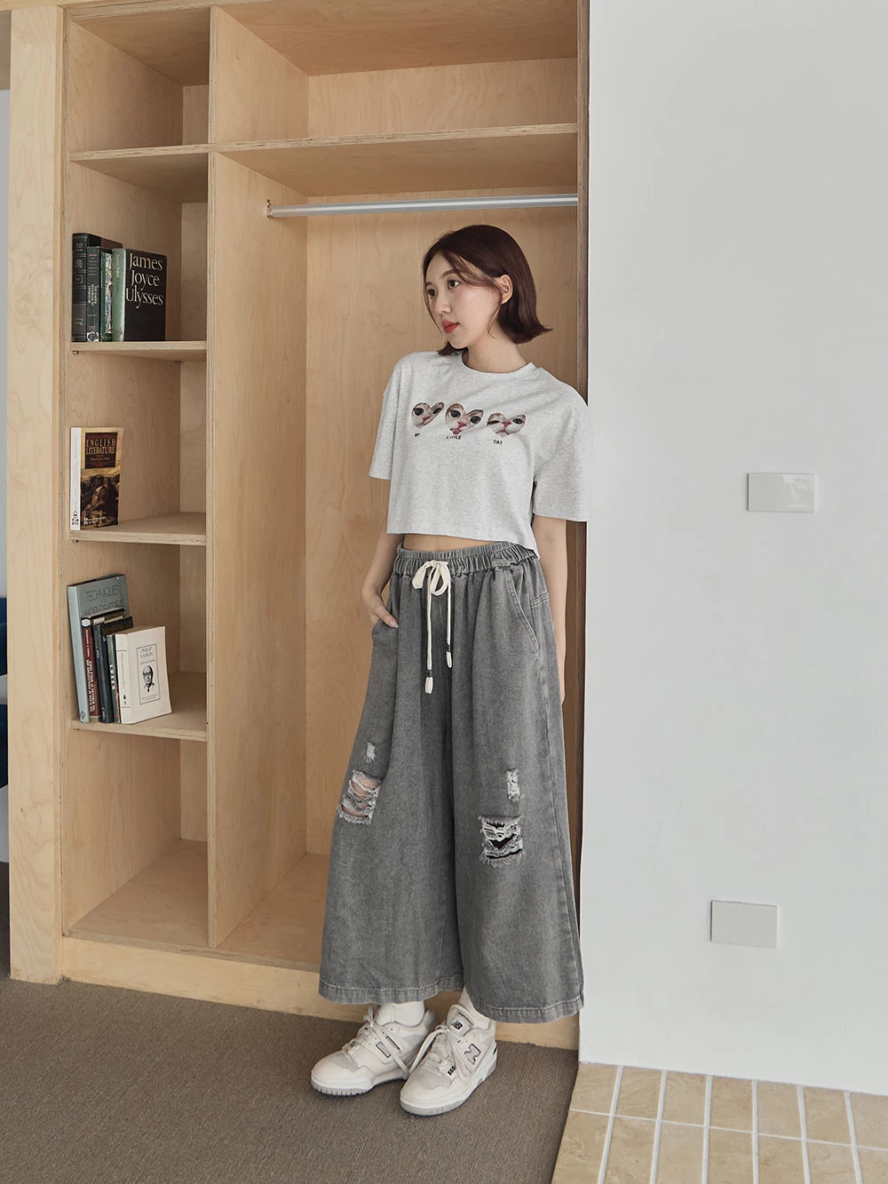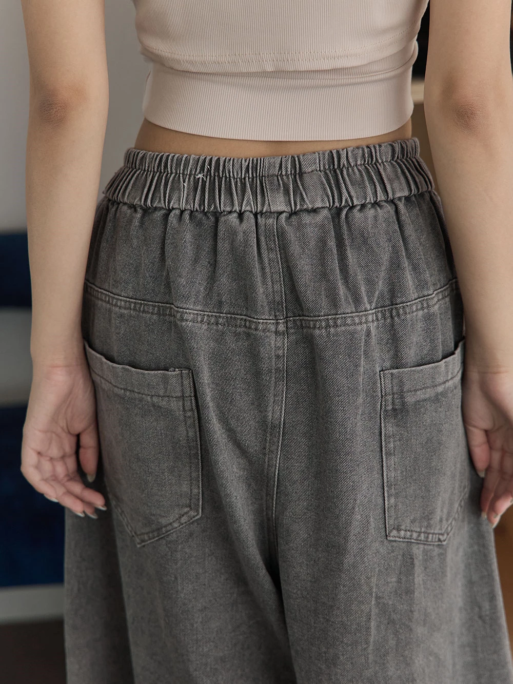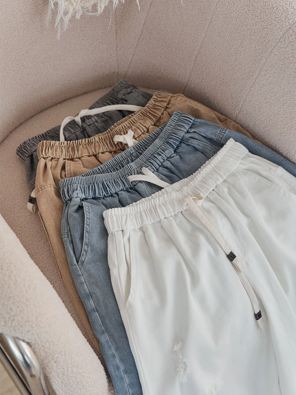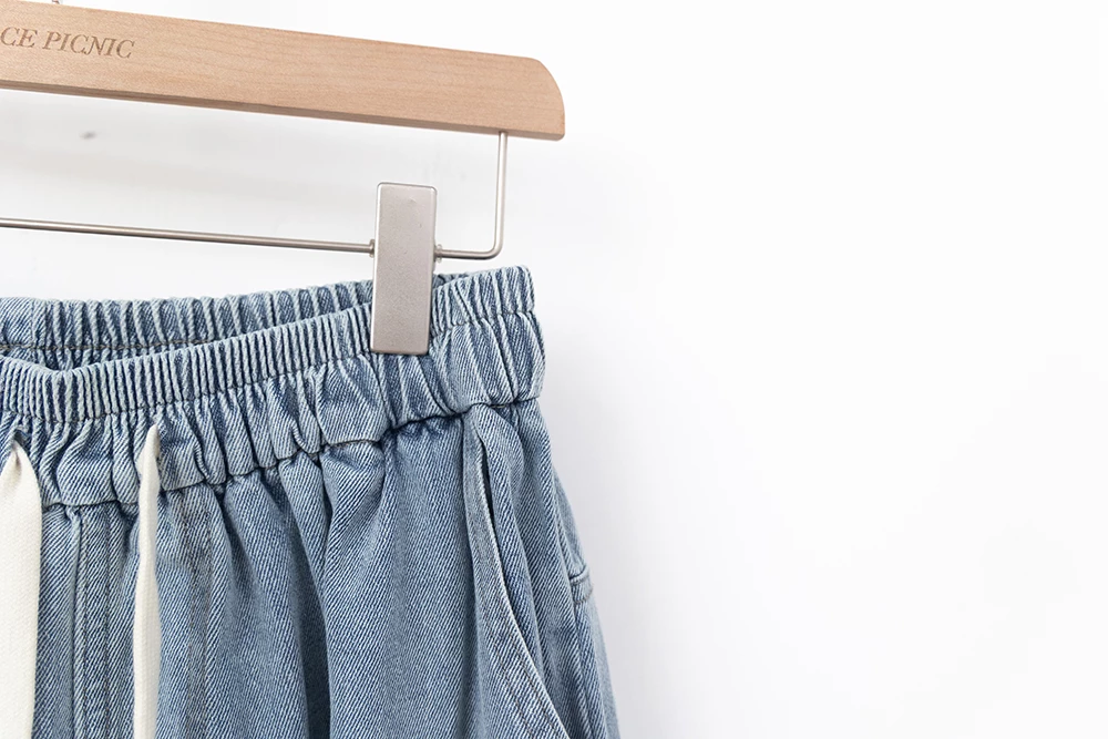 抓破造型八分牛仔褲