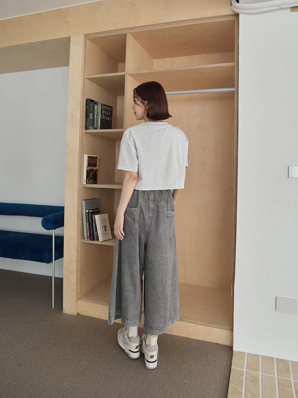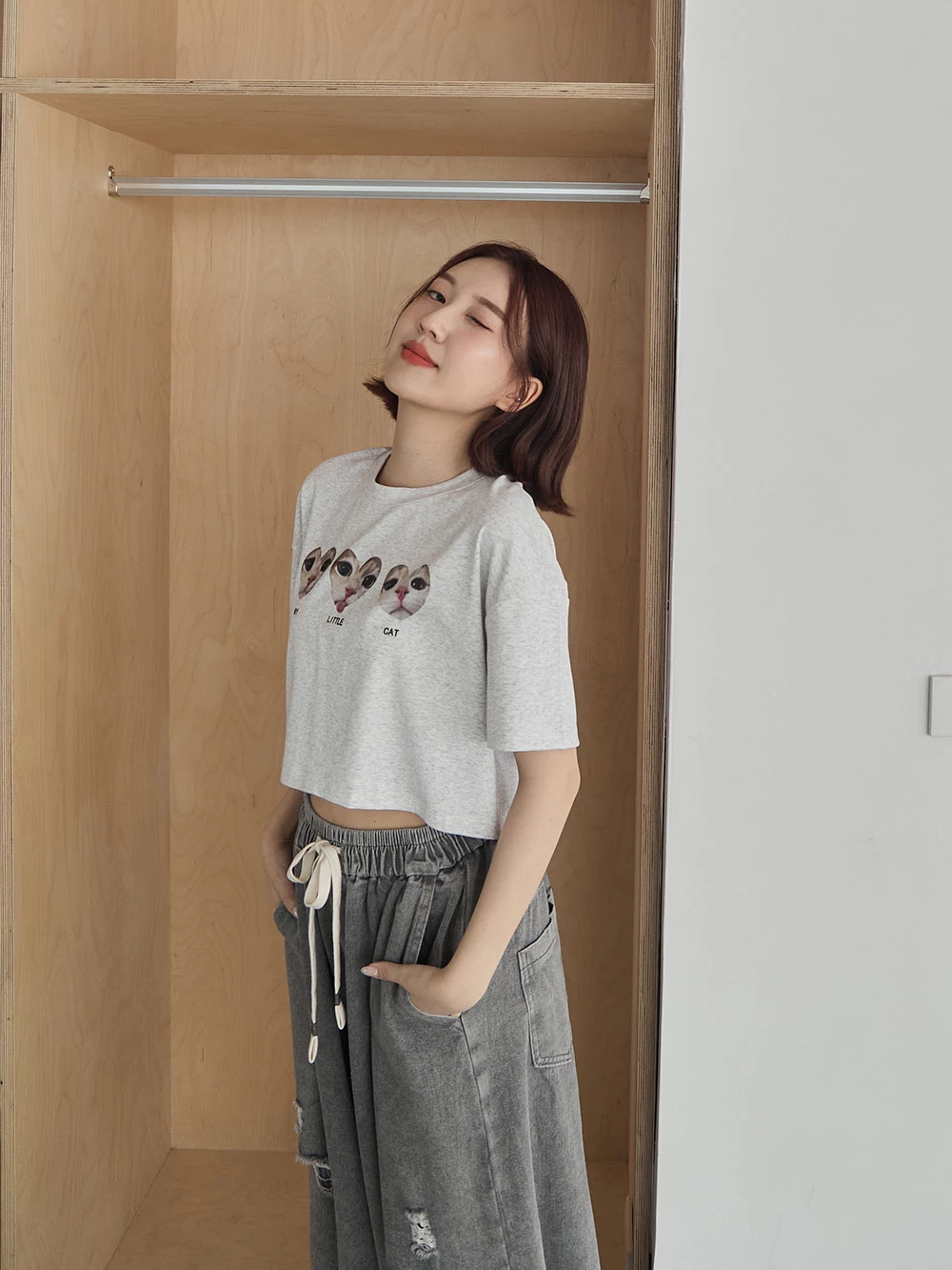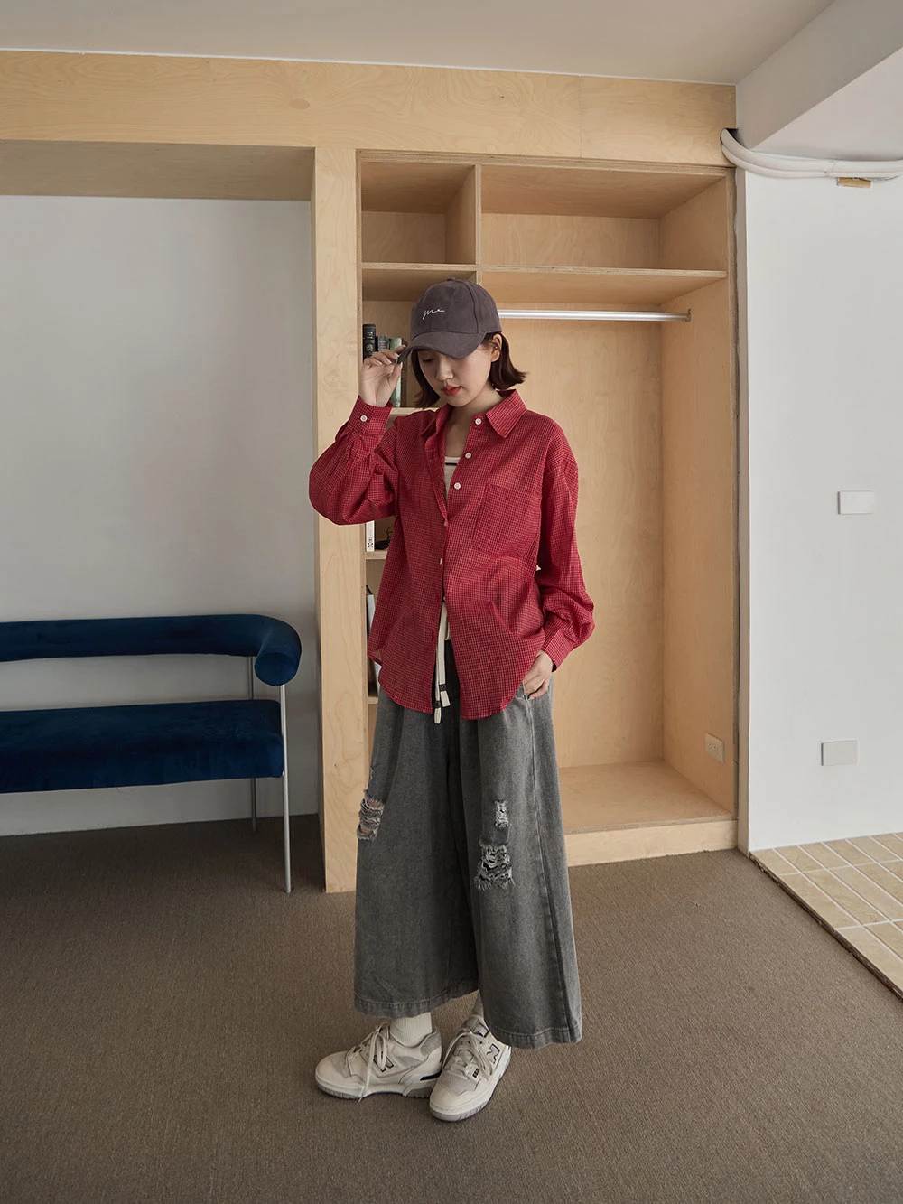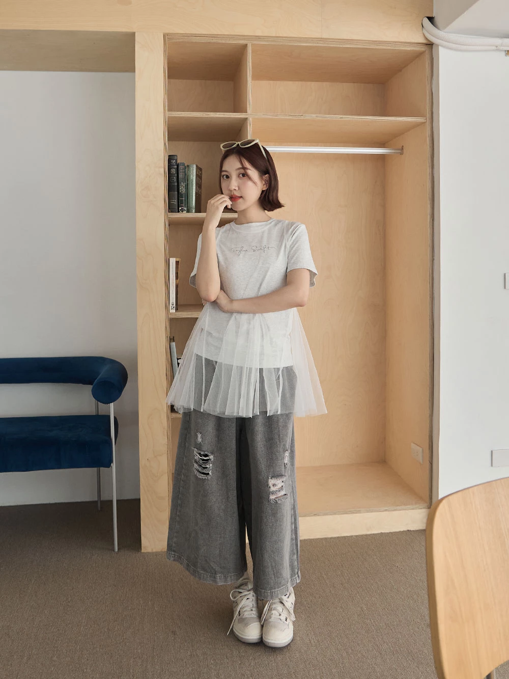 抓破造型八分牛仔褲