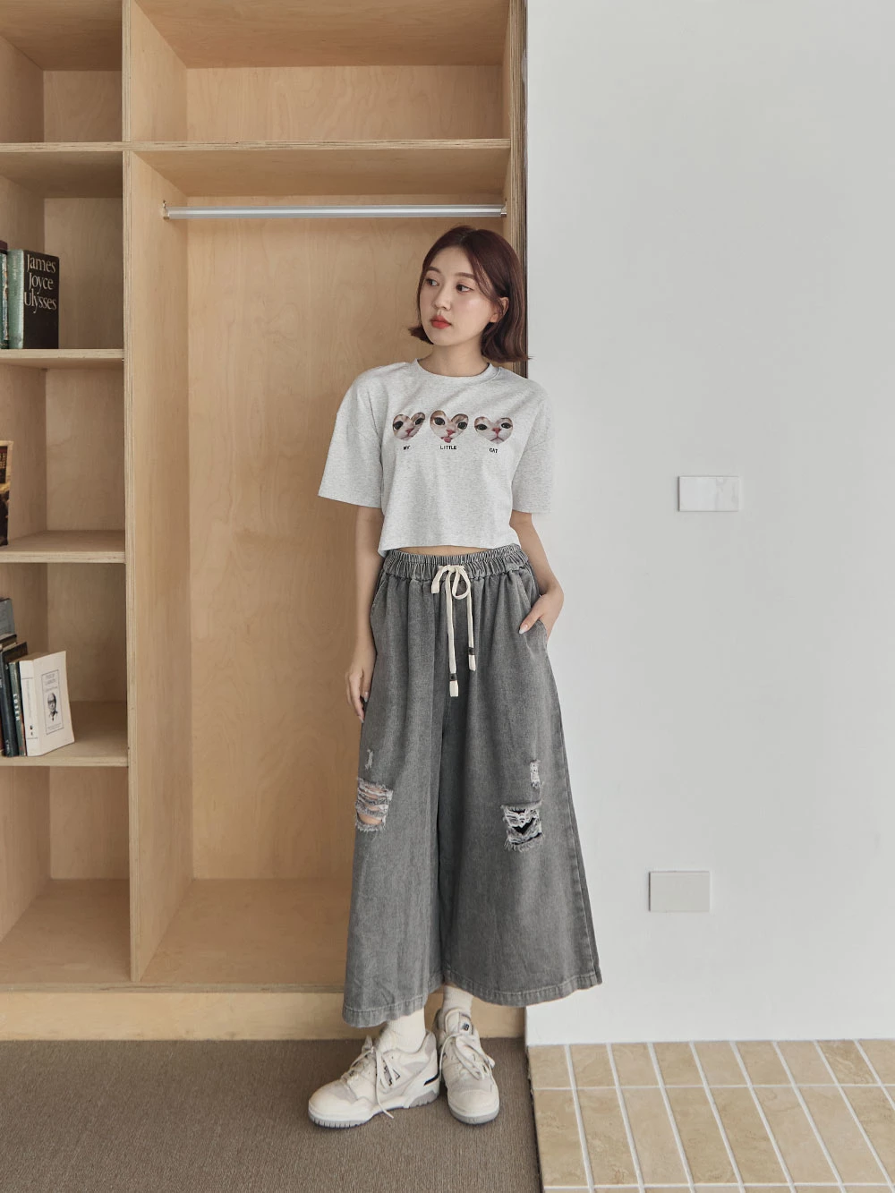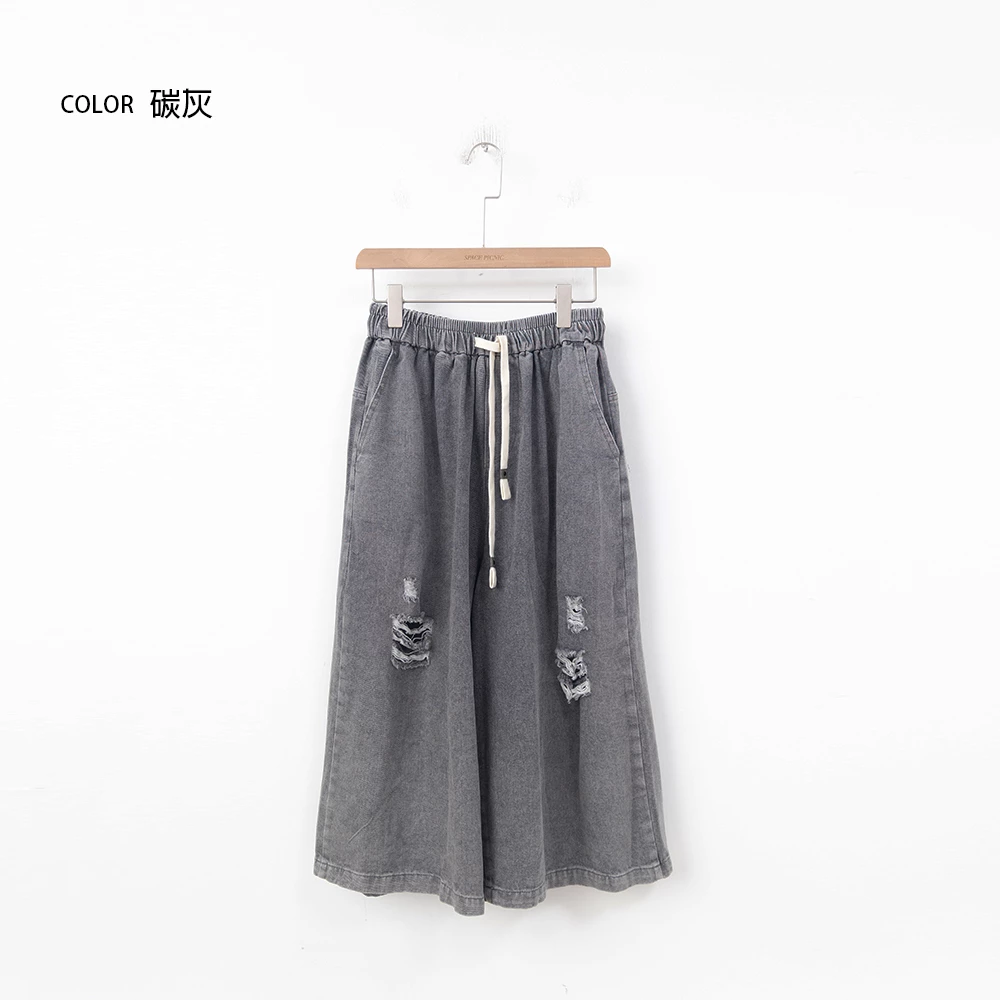 抓破造型八分牛仔褲 | Space Picnic