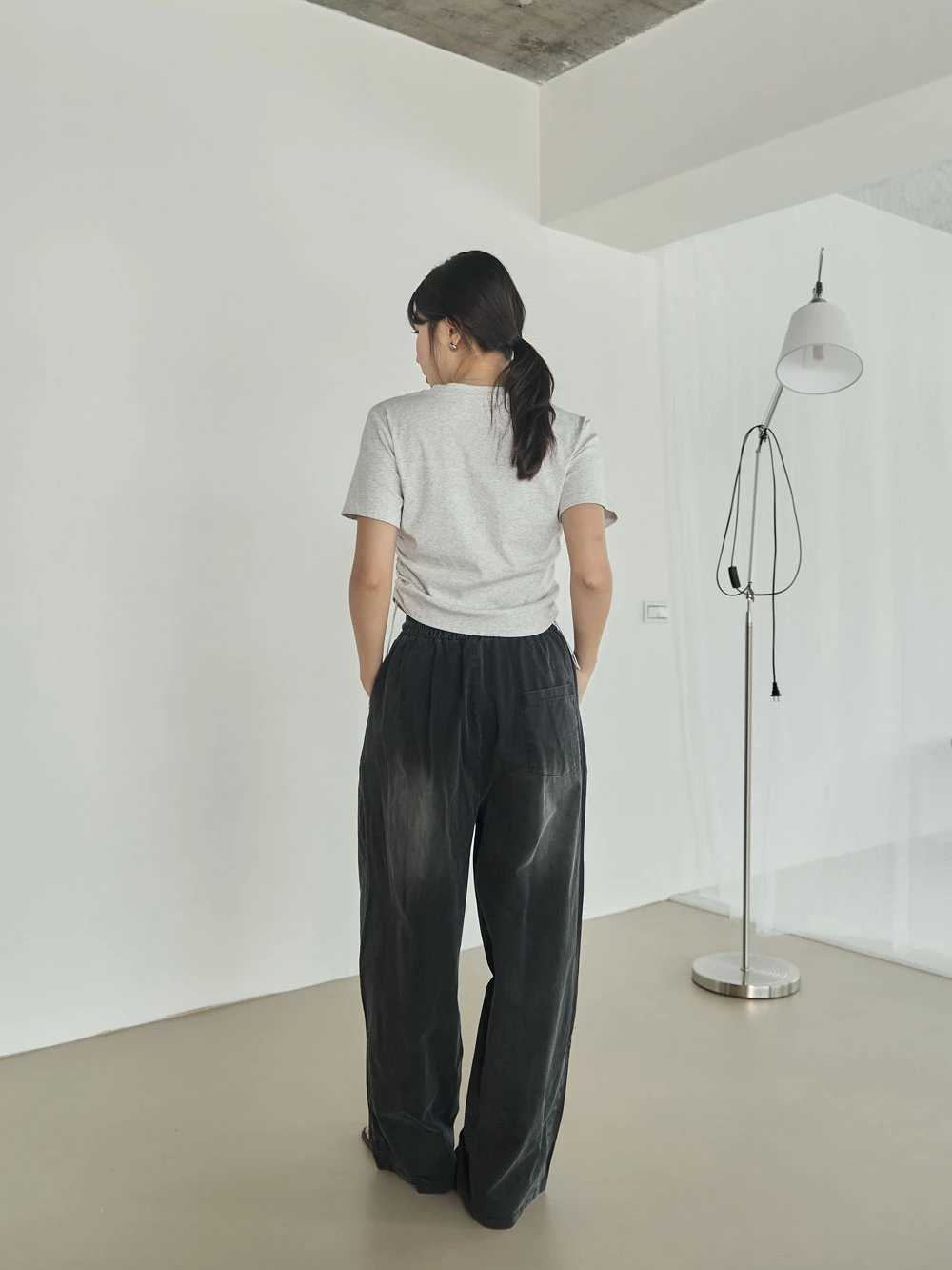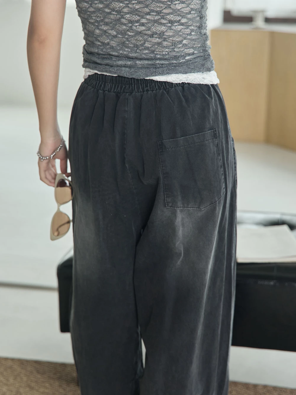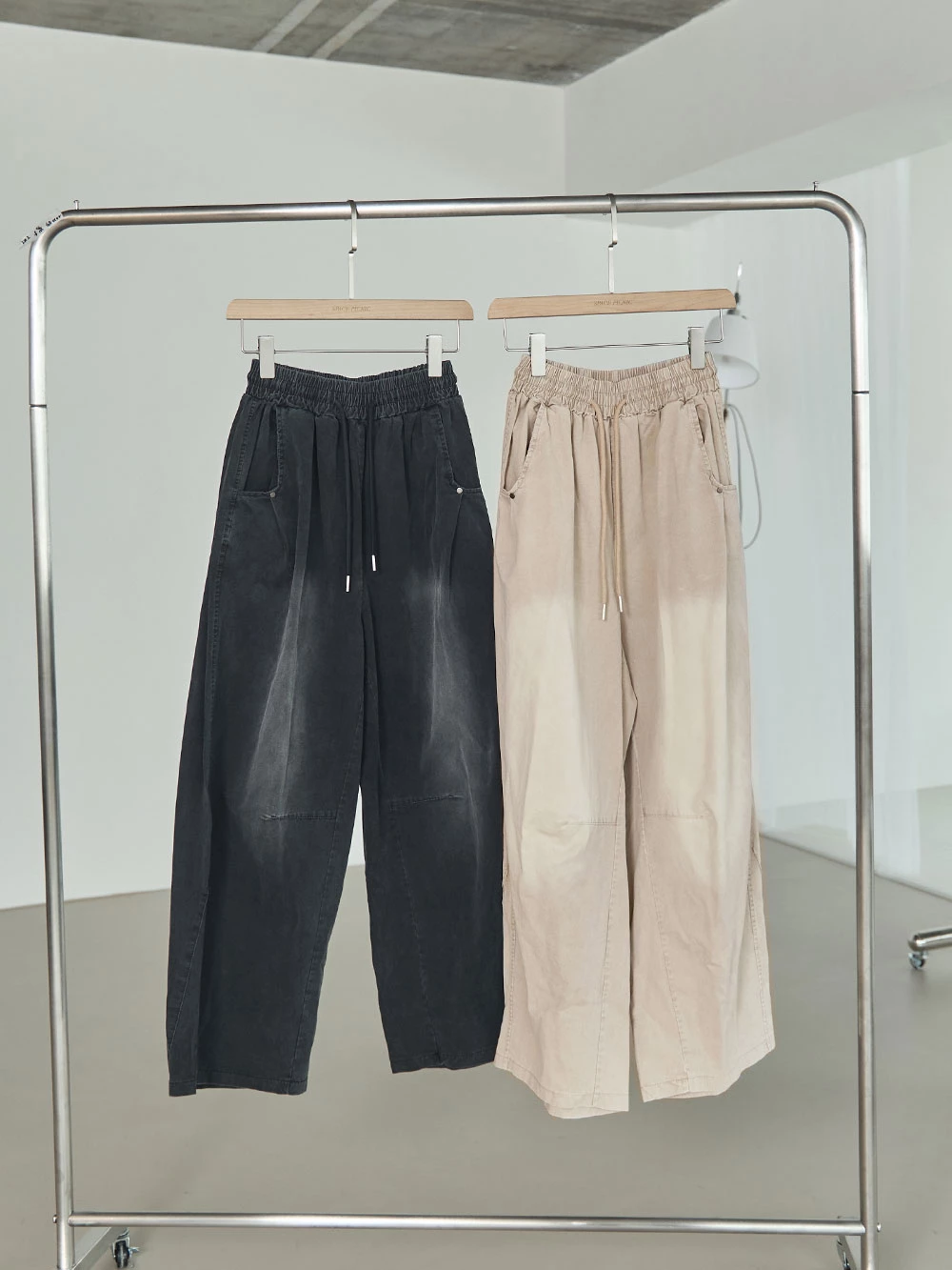 刷色鬆緊打褶寬褲