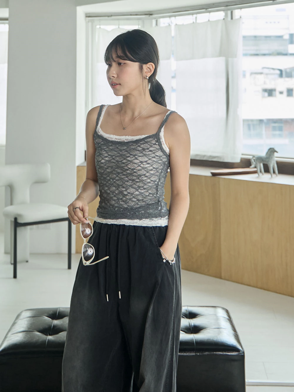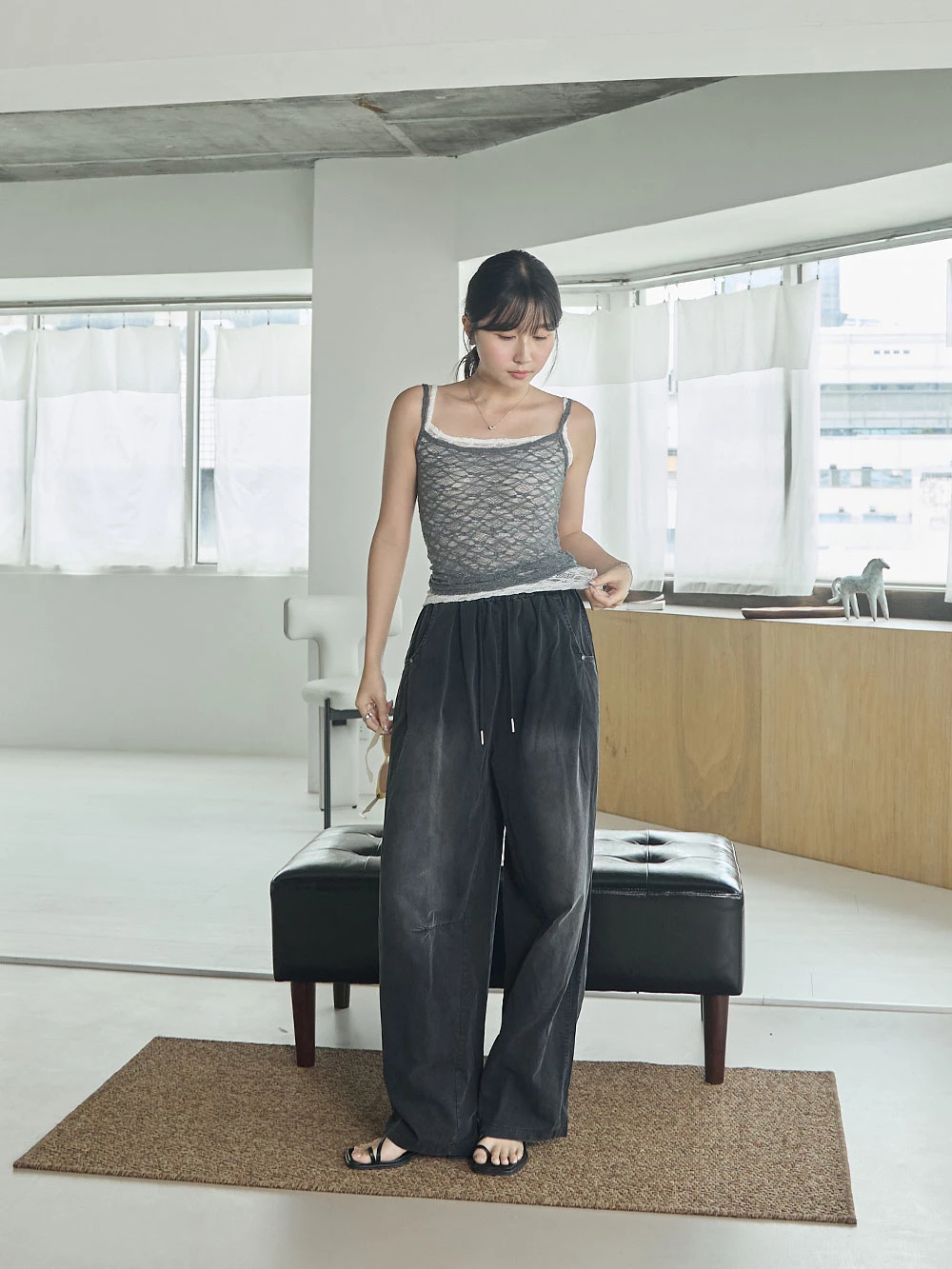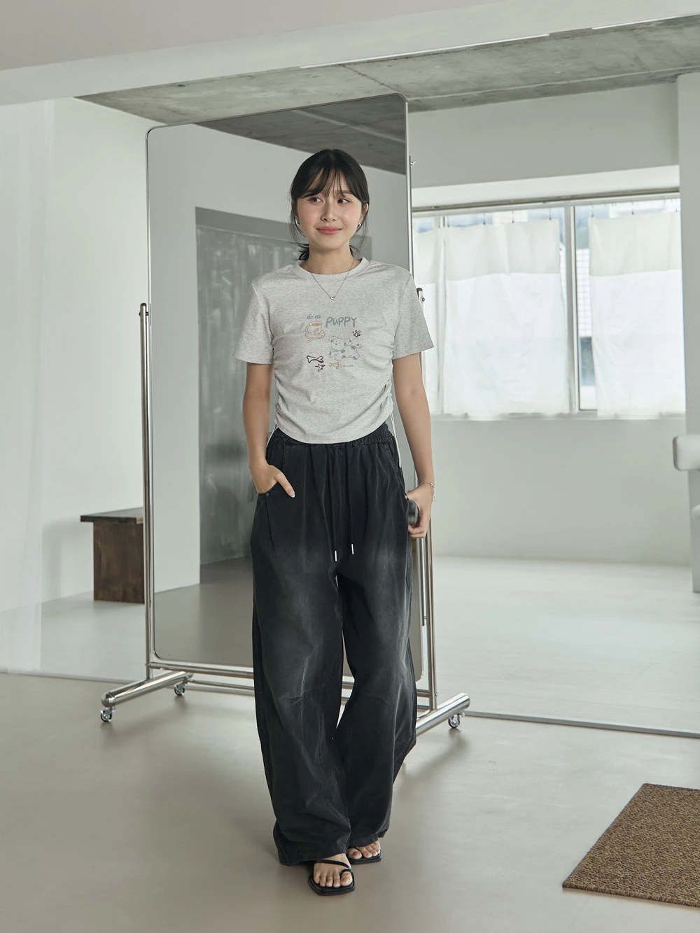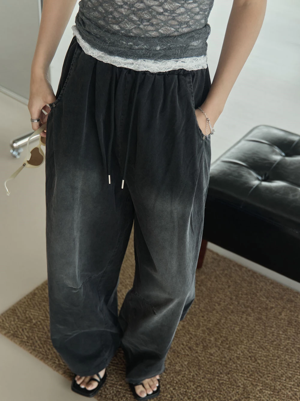 刷色鬆緊打褶寬褲