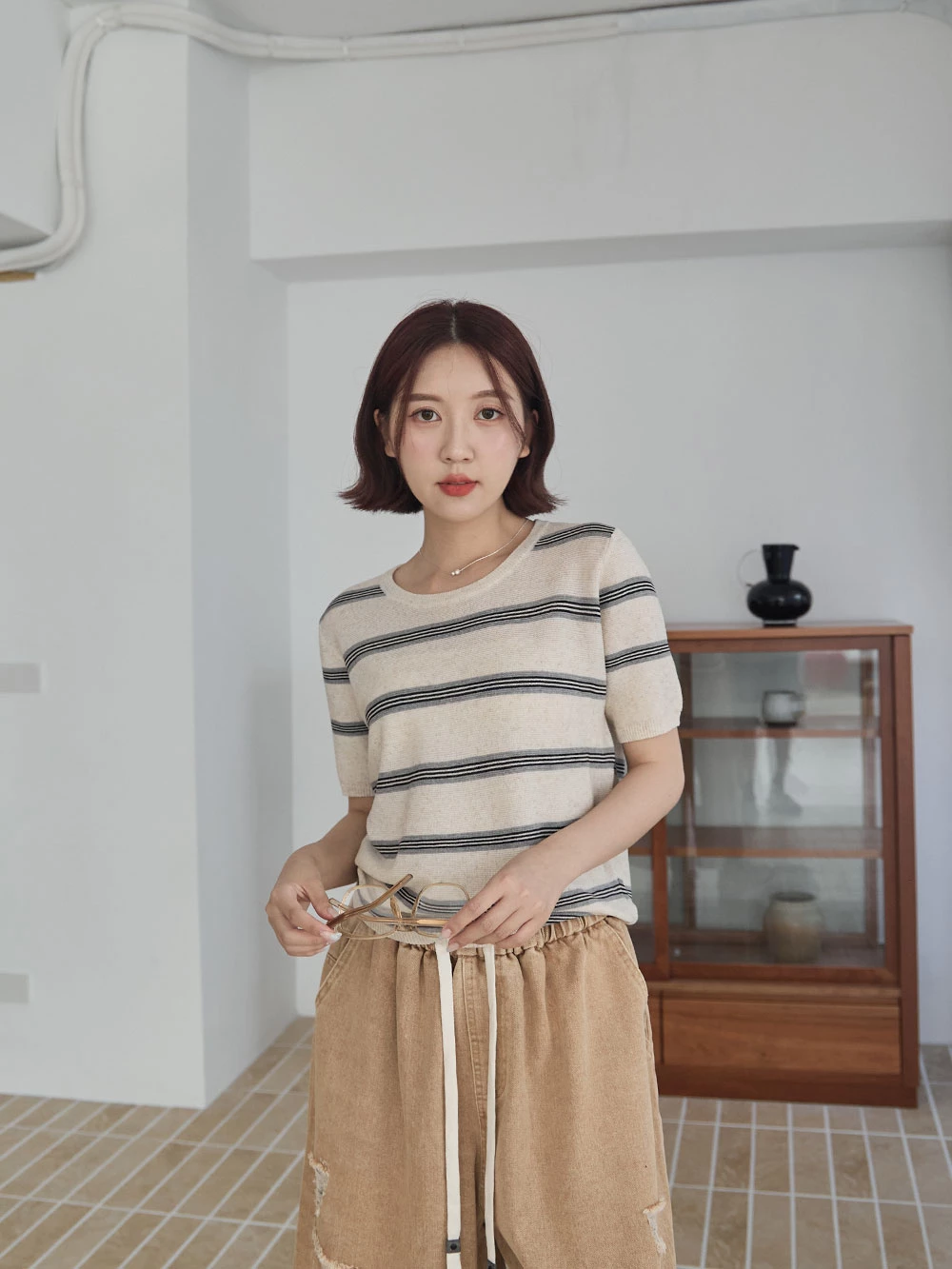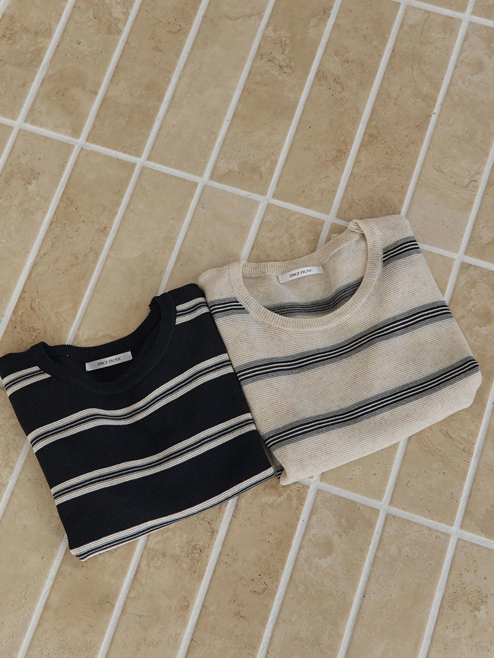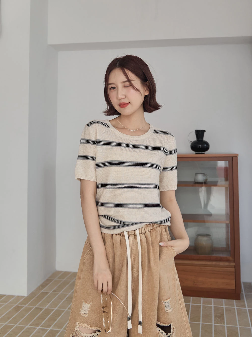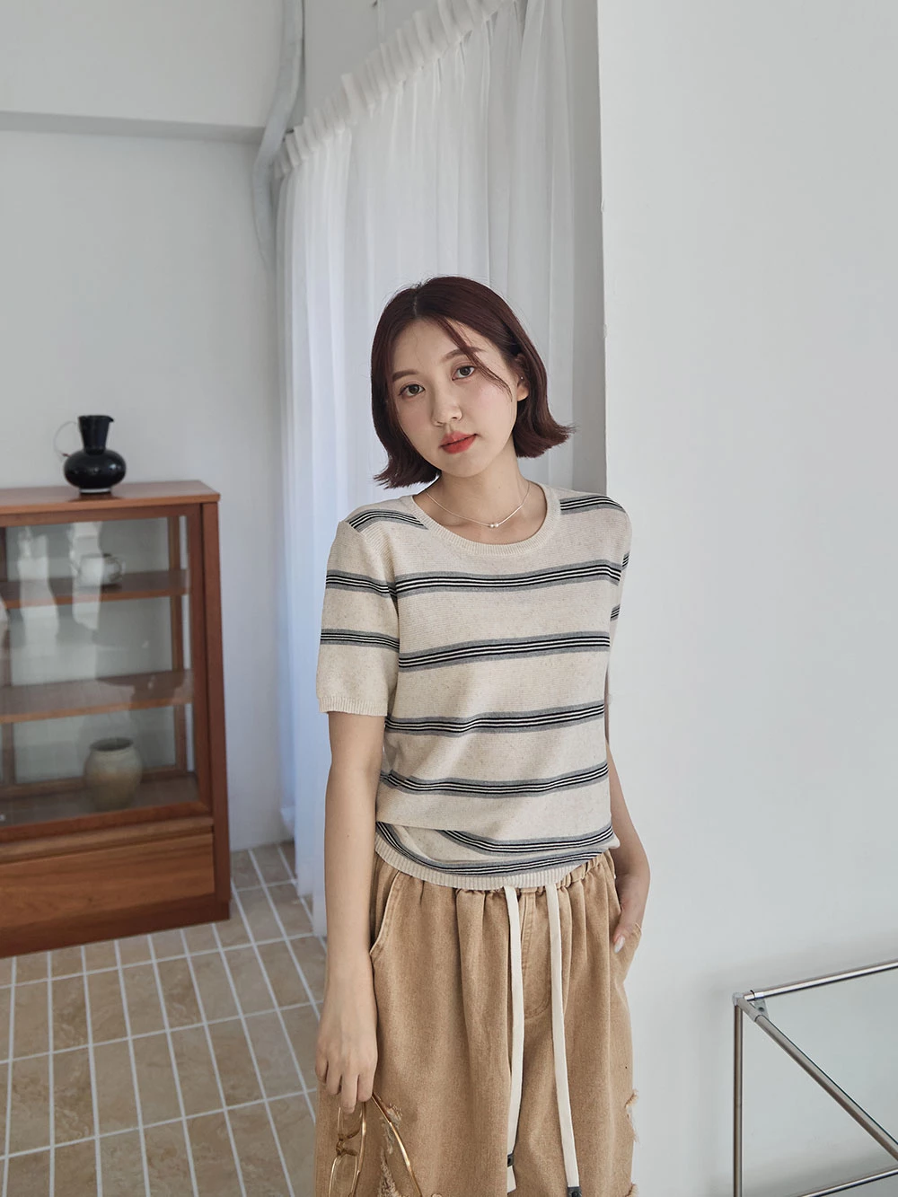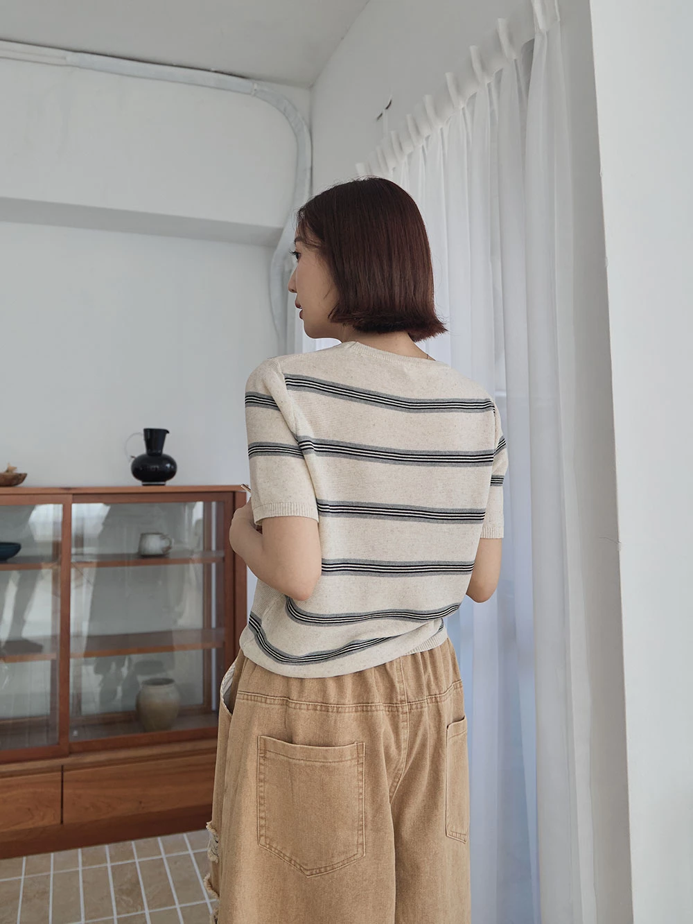 橫條薄針織上衣