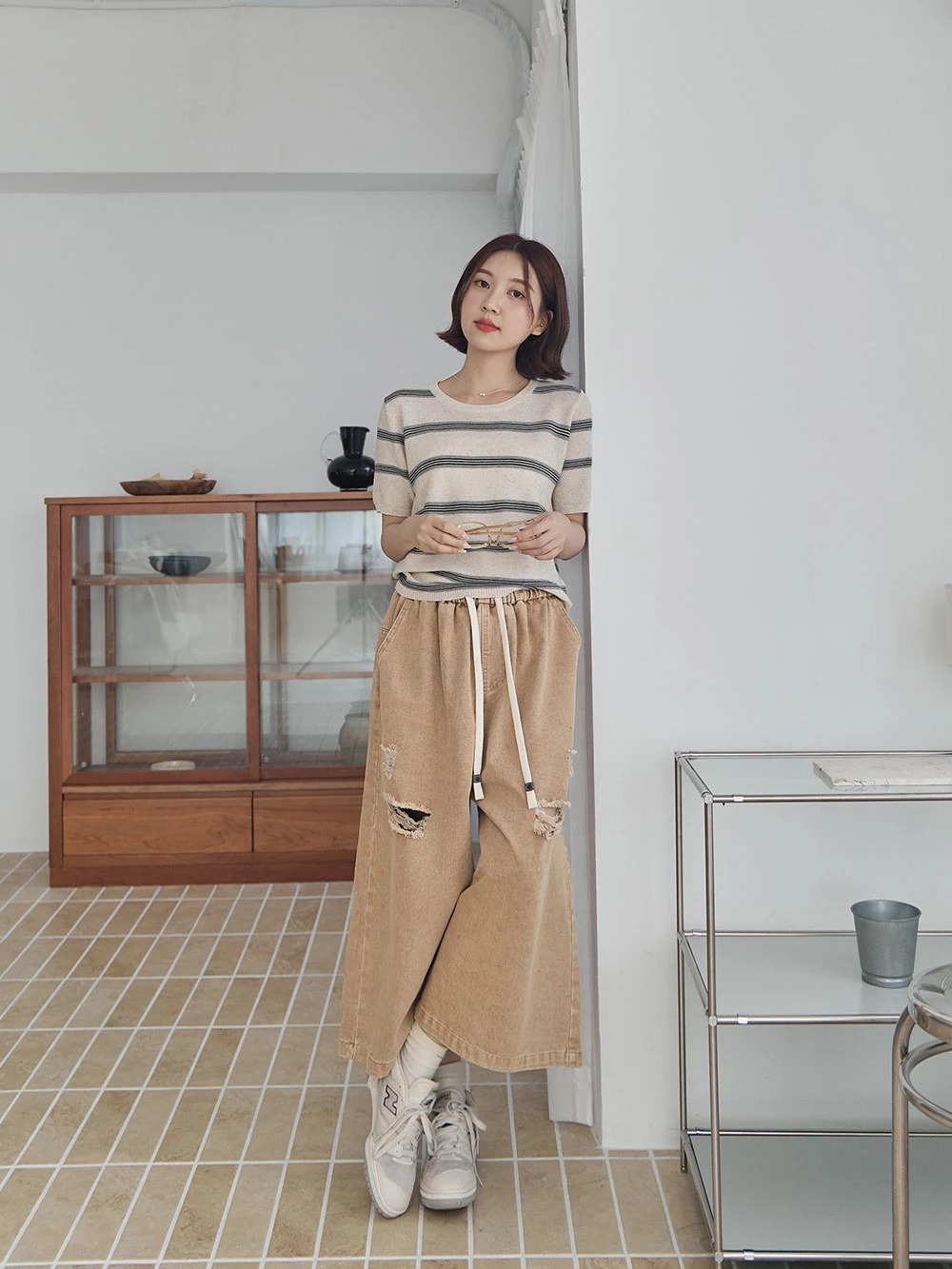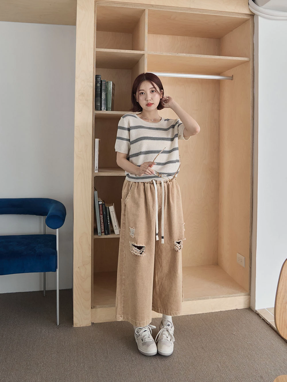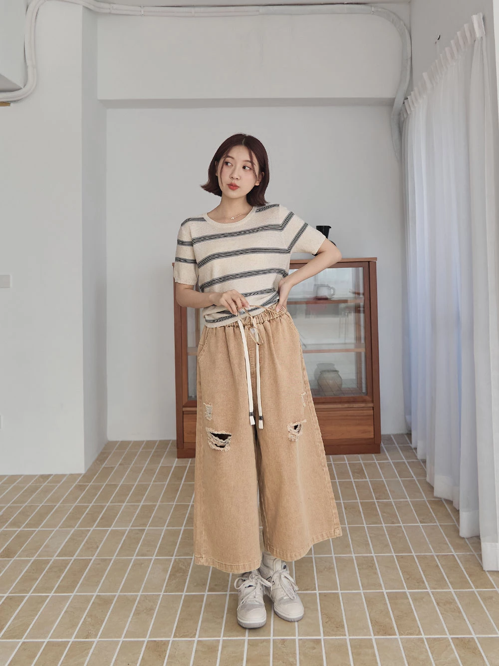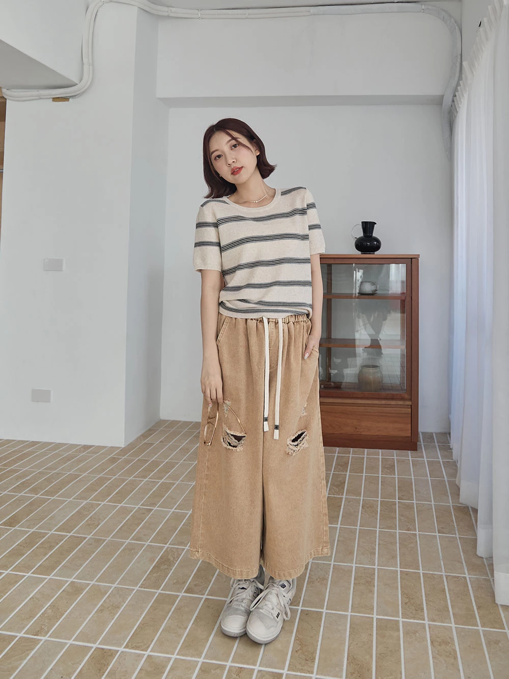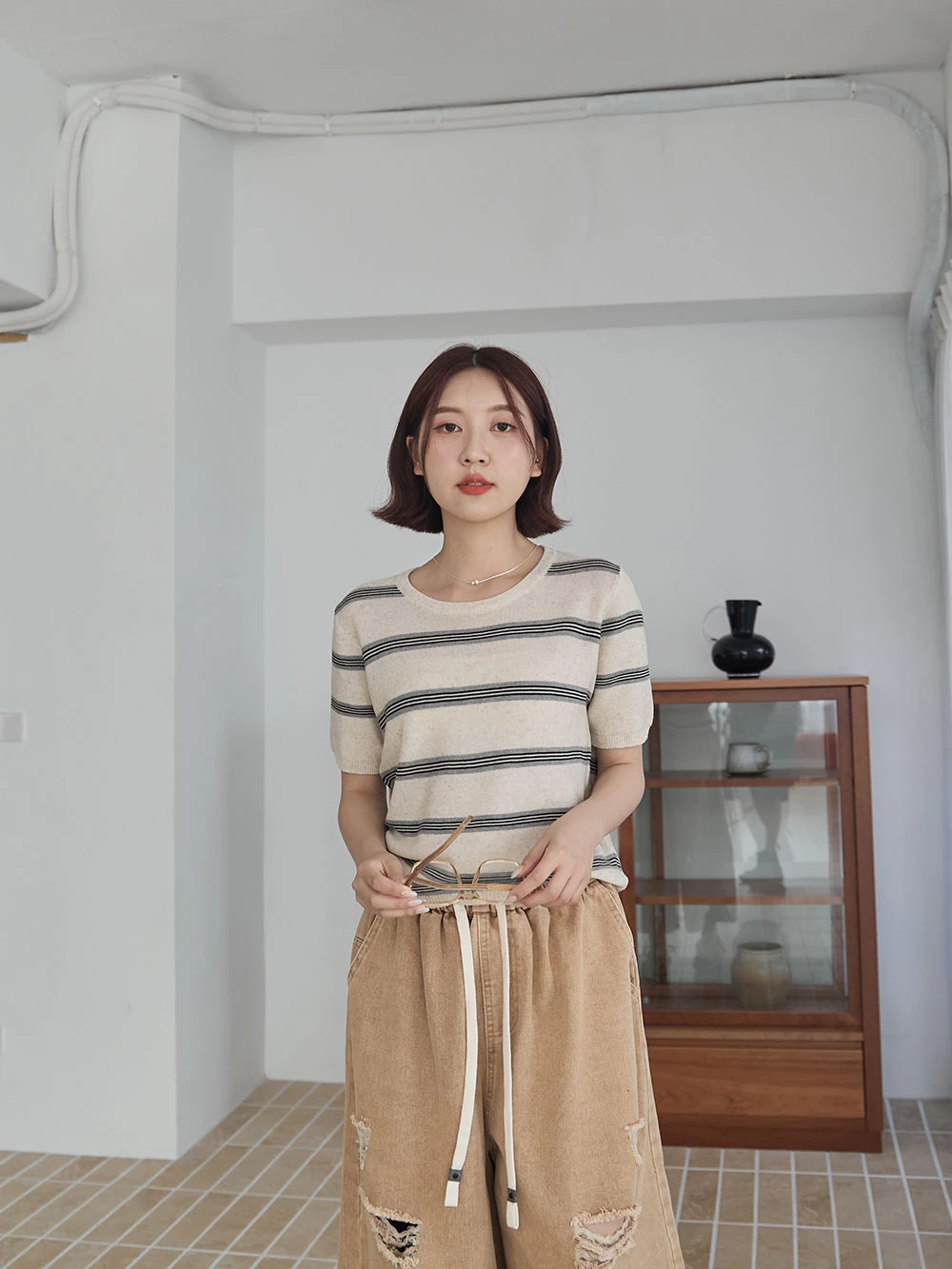 橫條薄針織上衣