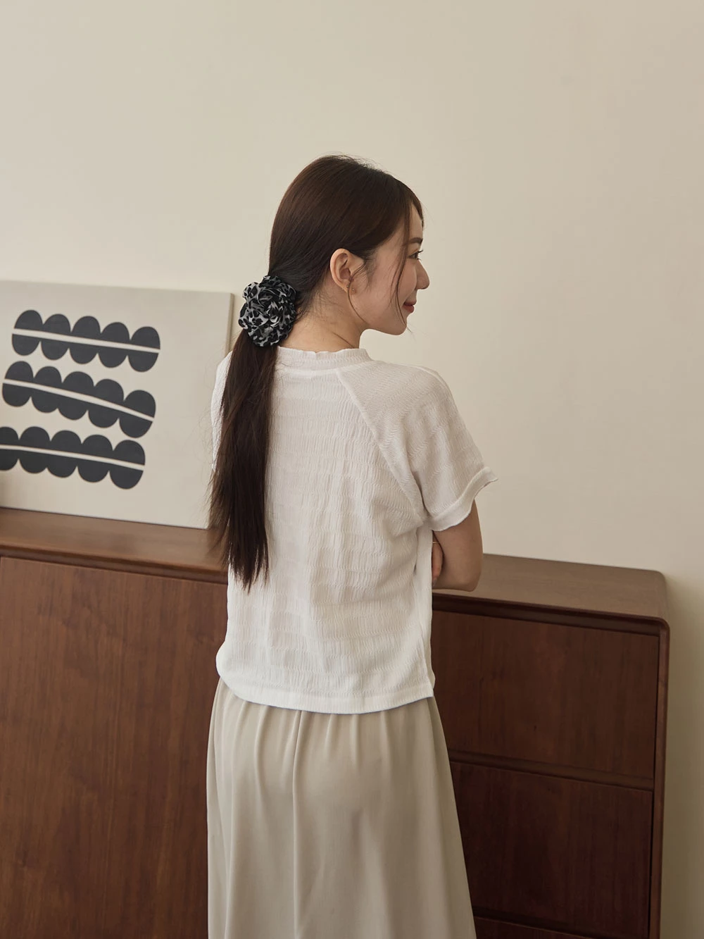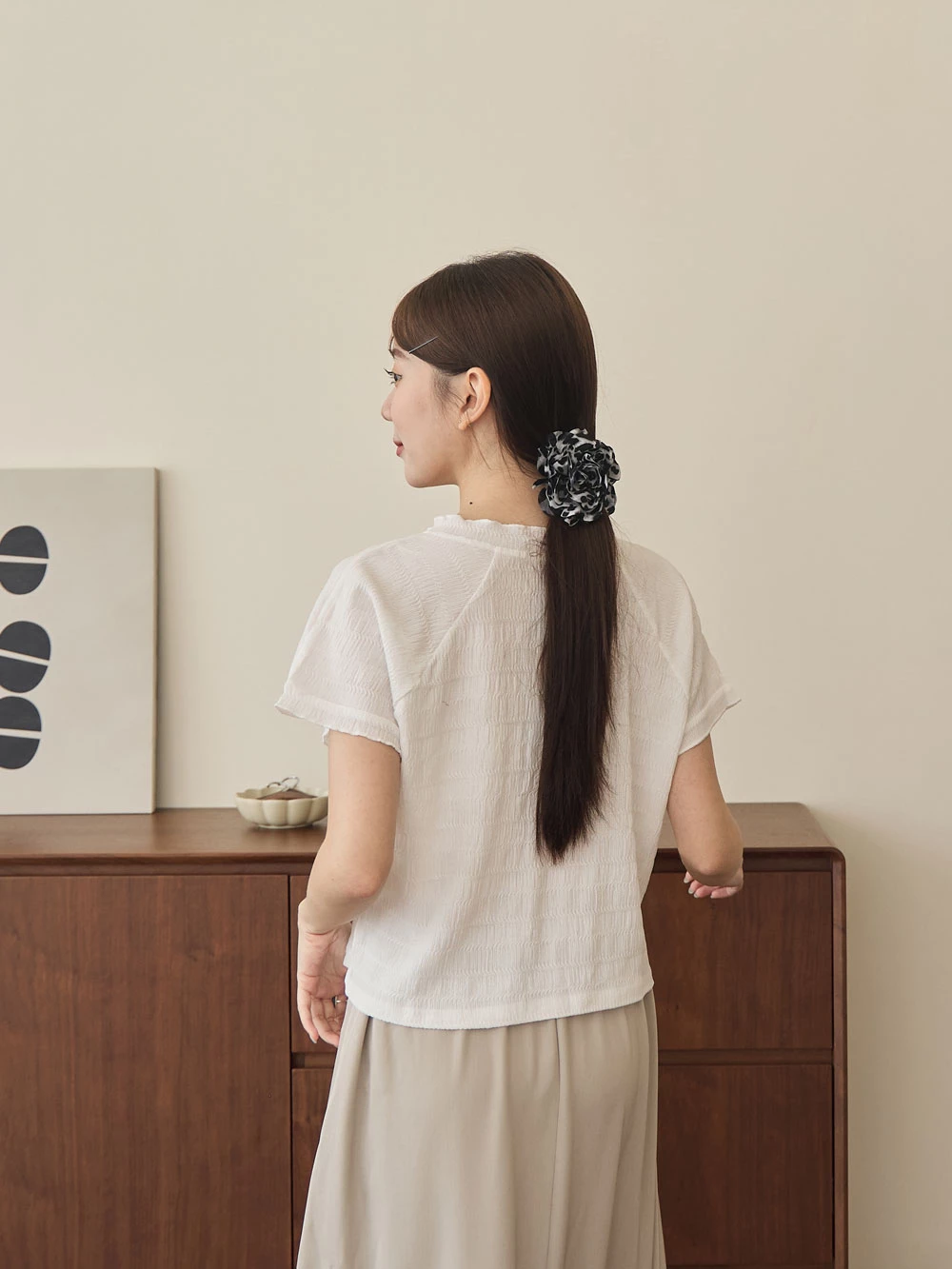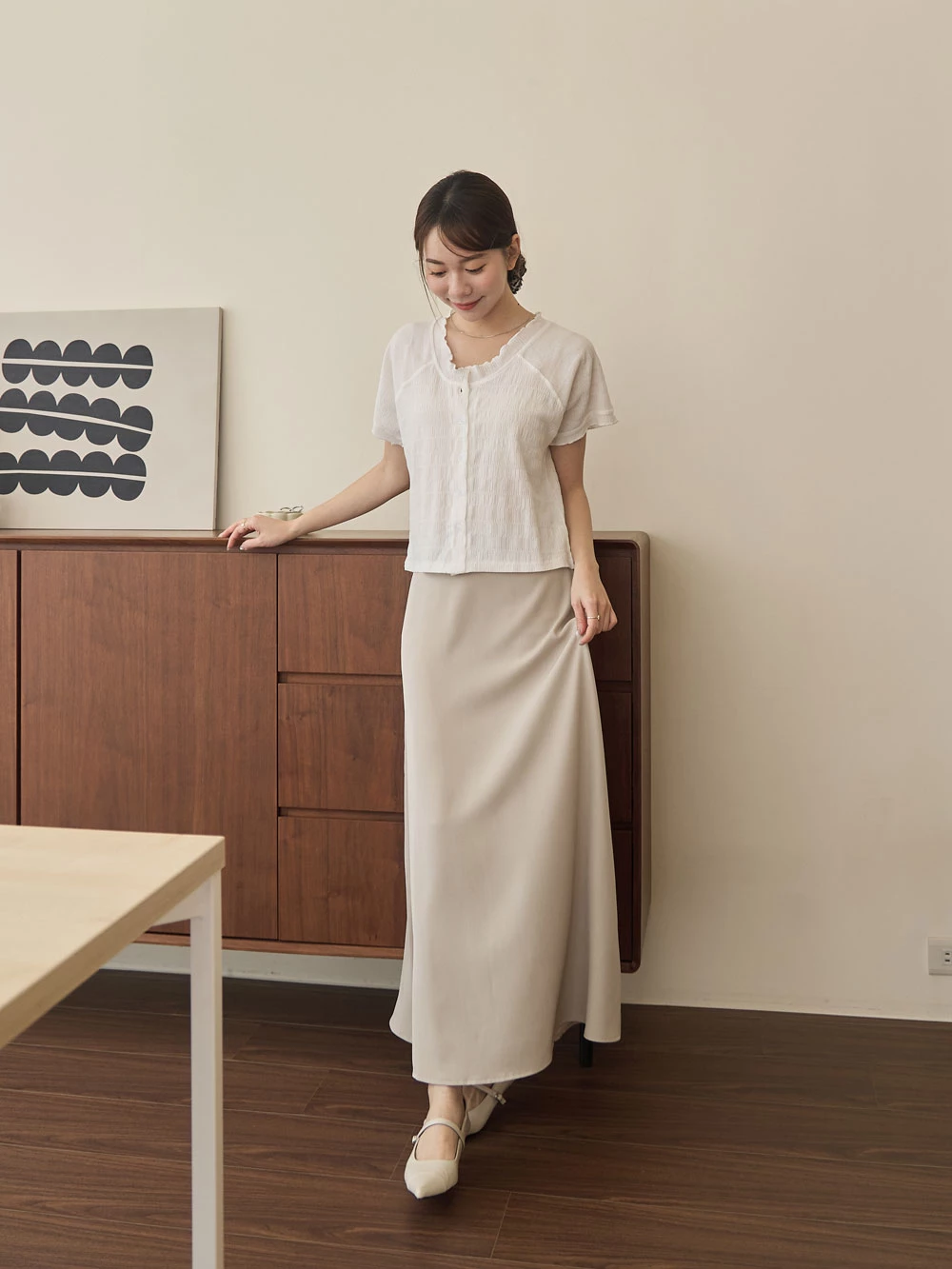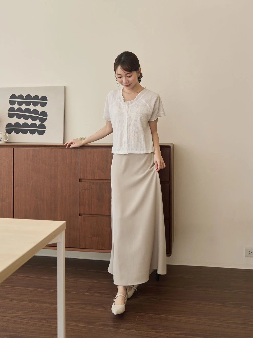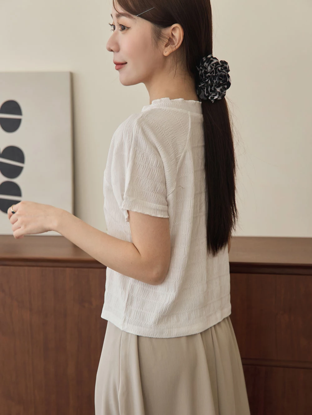 木耳邊圓領排釦上衣