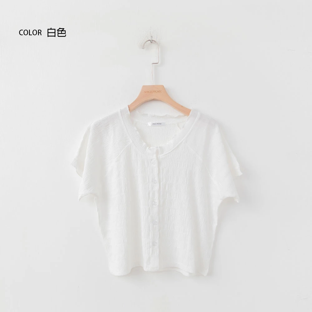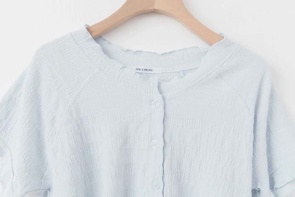 木耳邊圓領排釦上衣 | Space Picnic