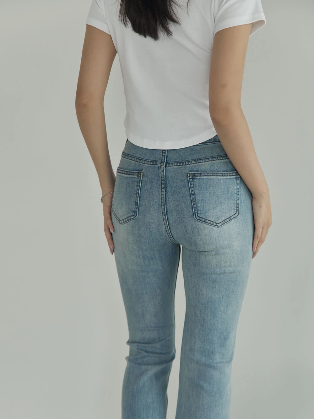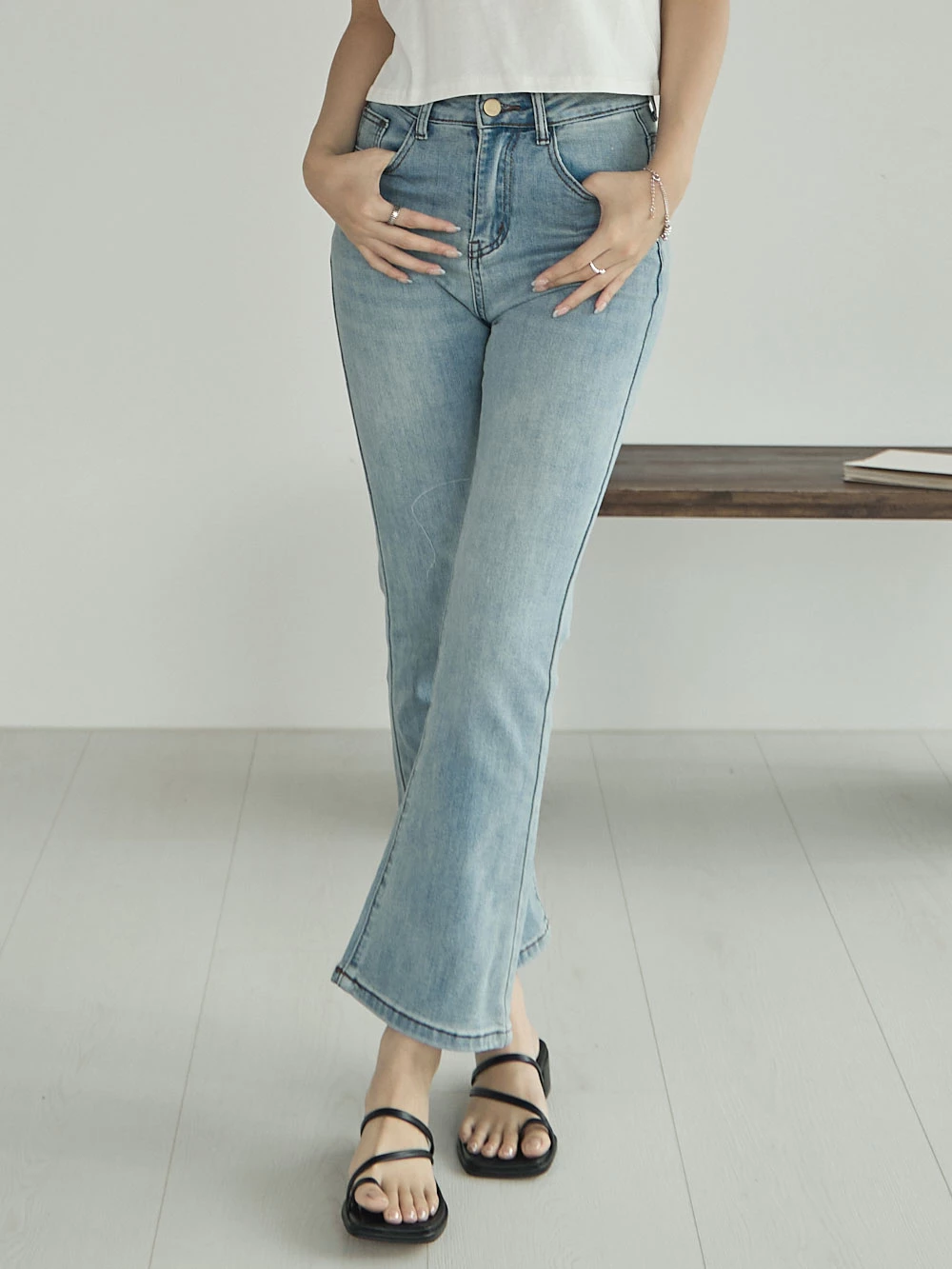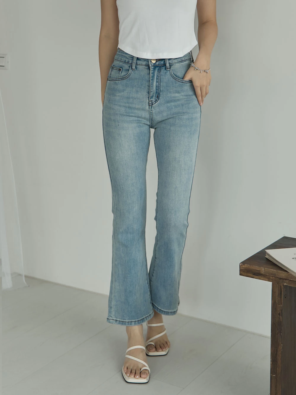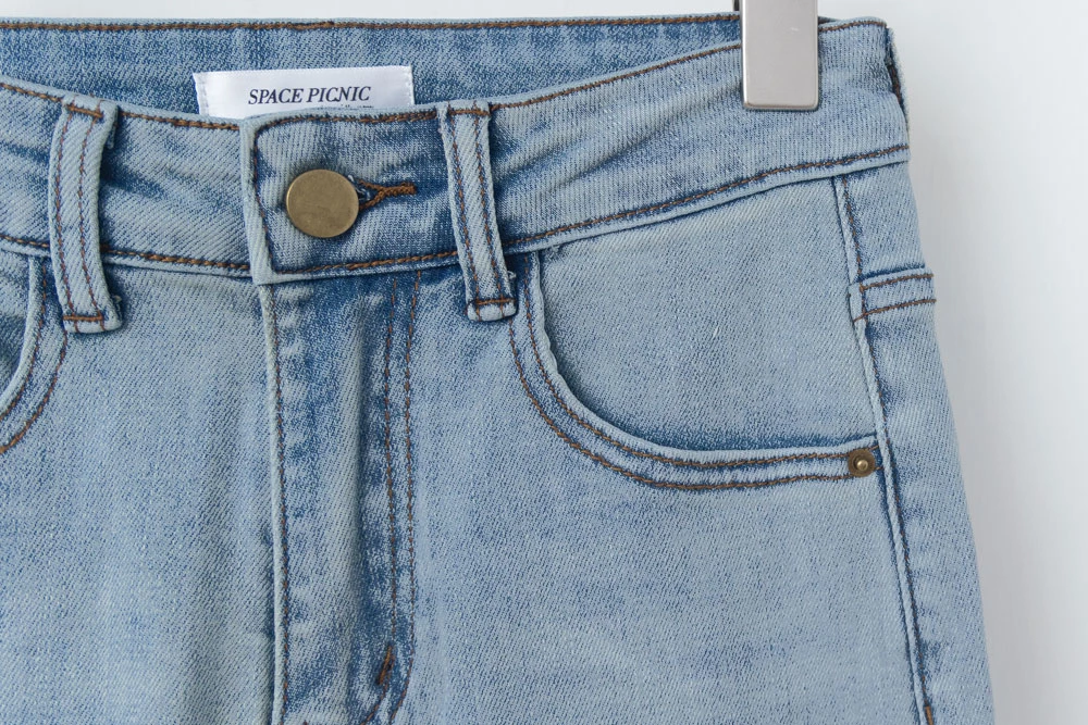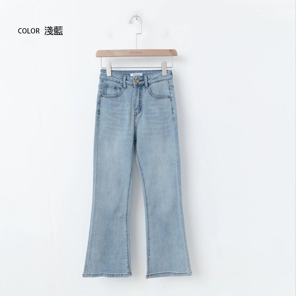 彈性八分喇叭牛仔褲