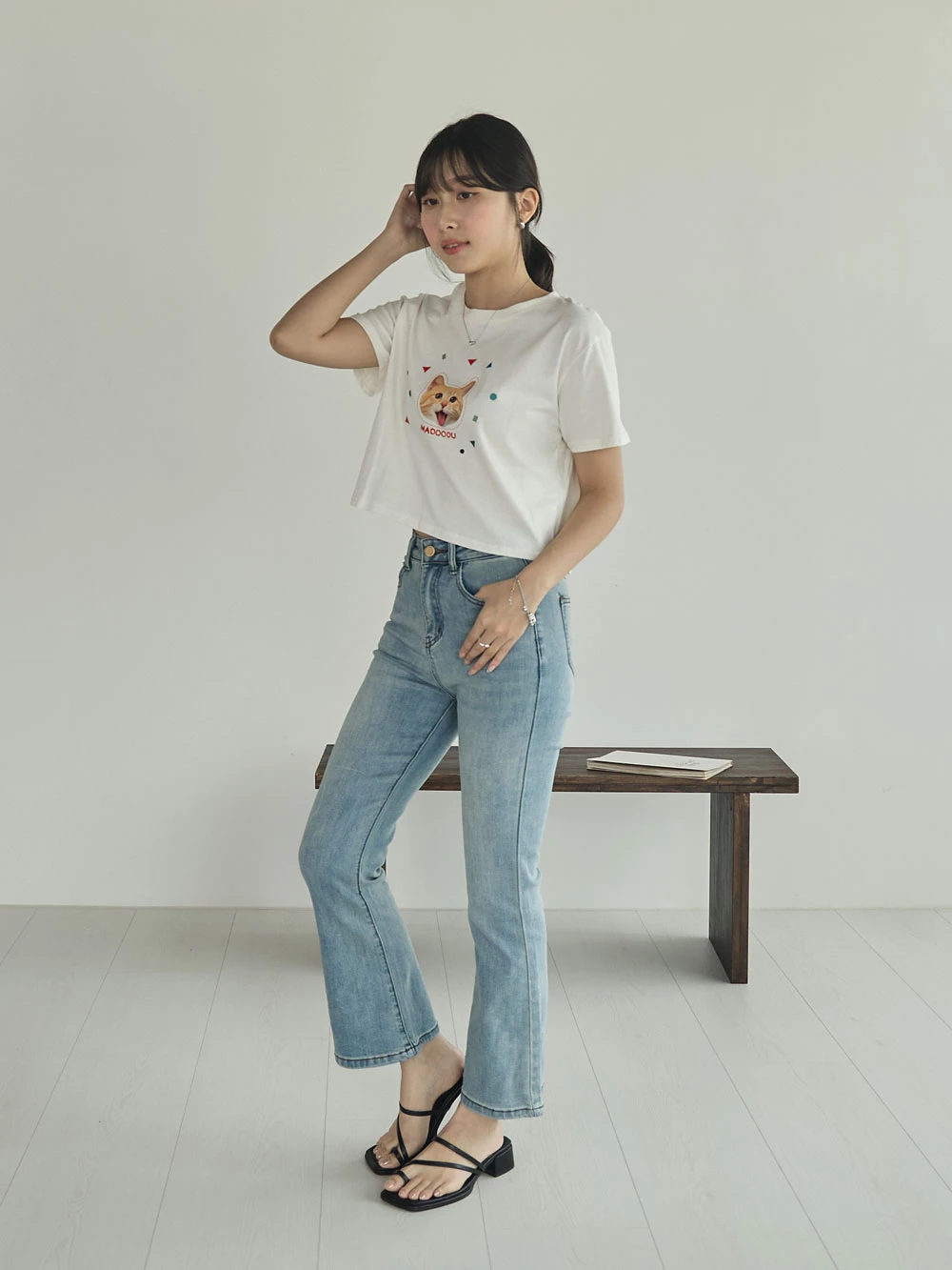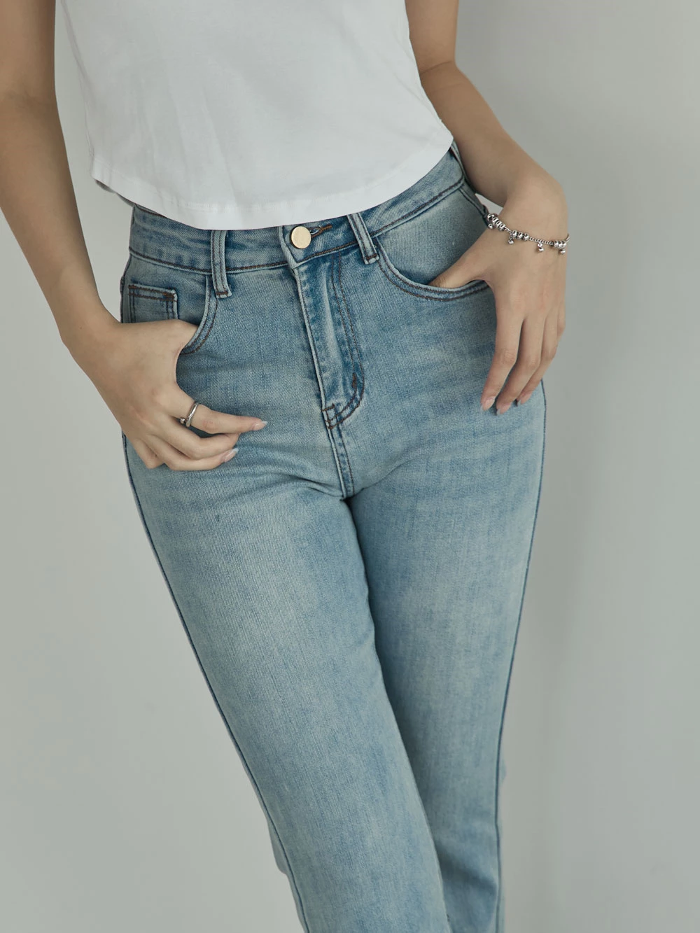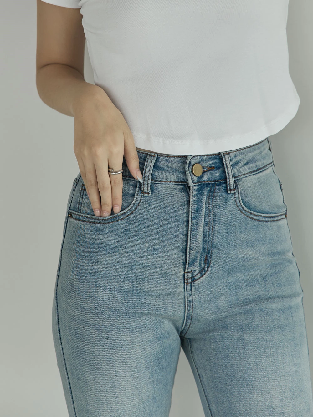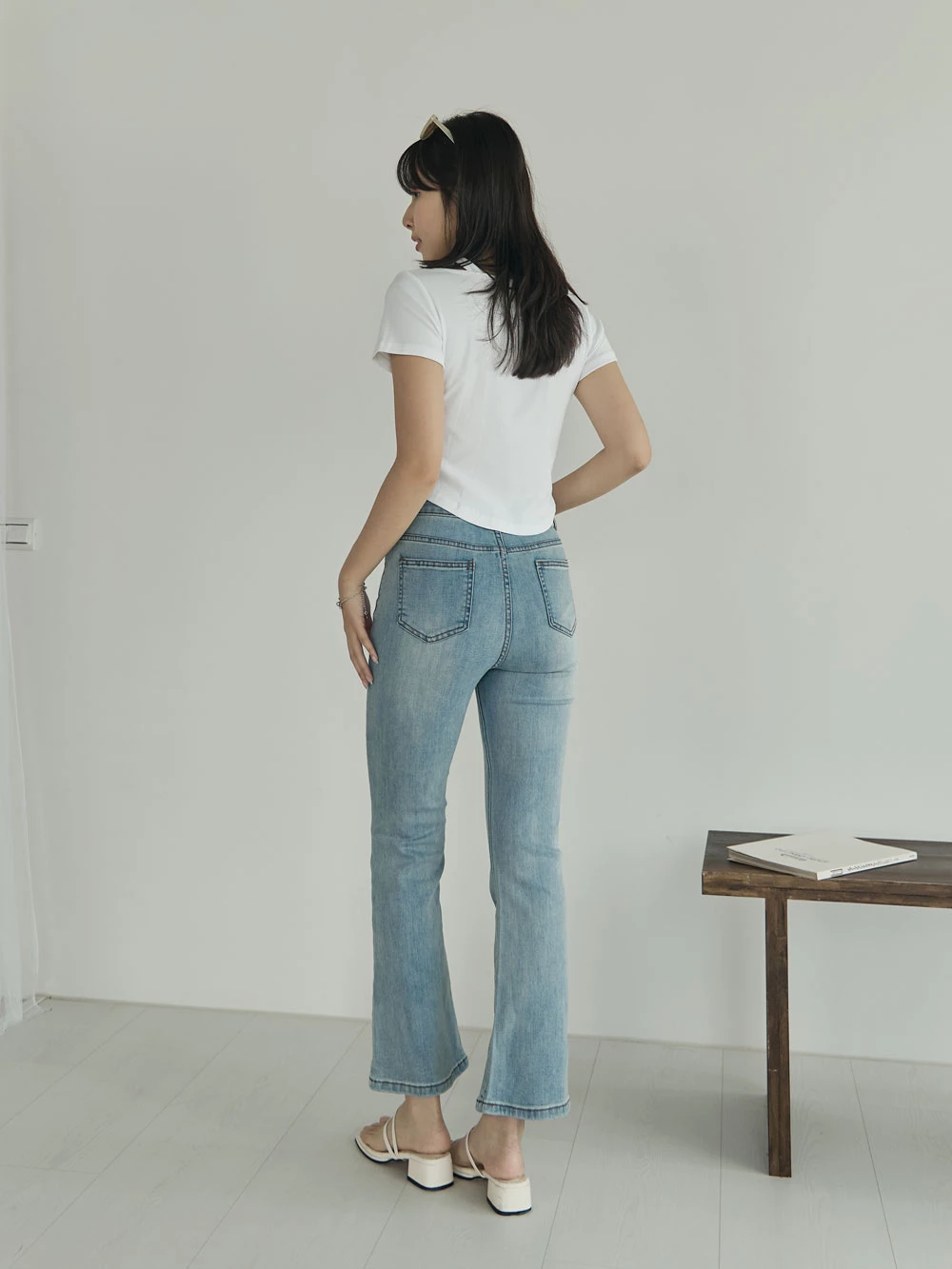 彈性八分喇叭牛仔褲