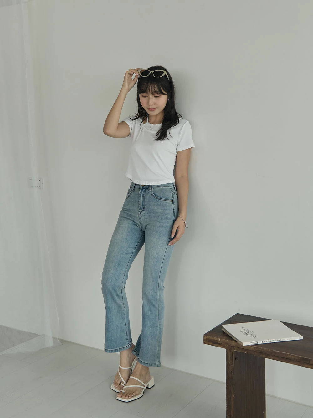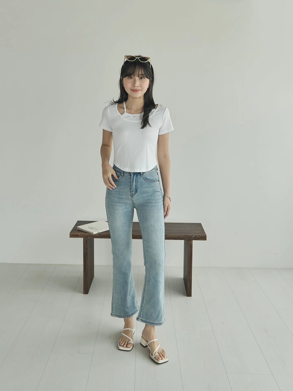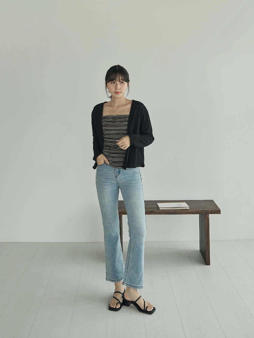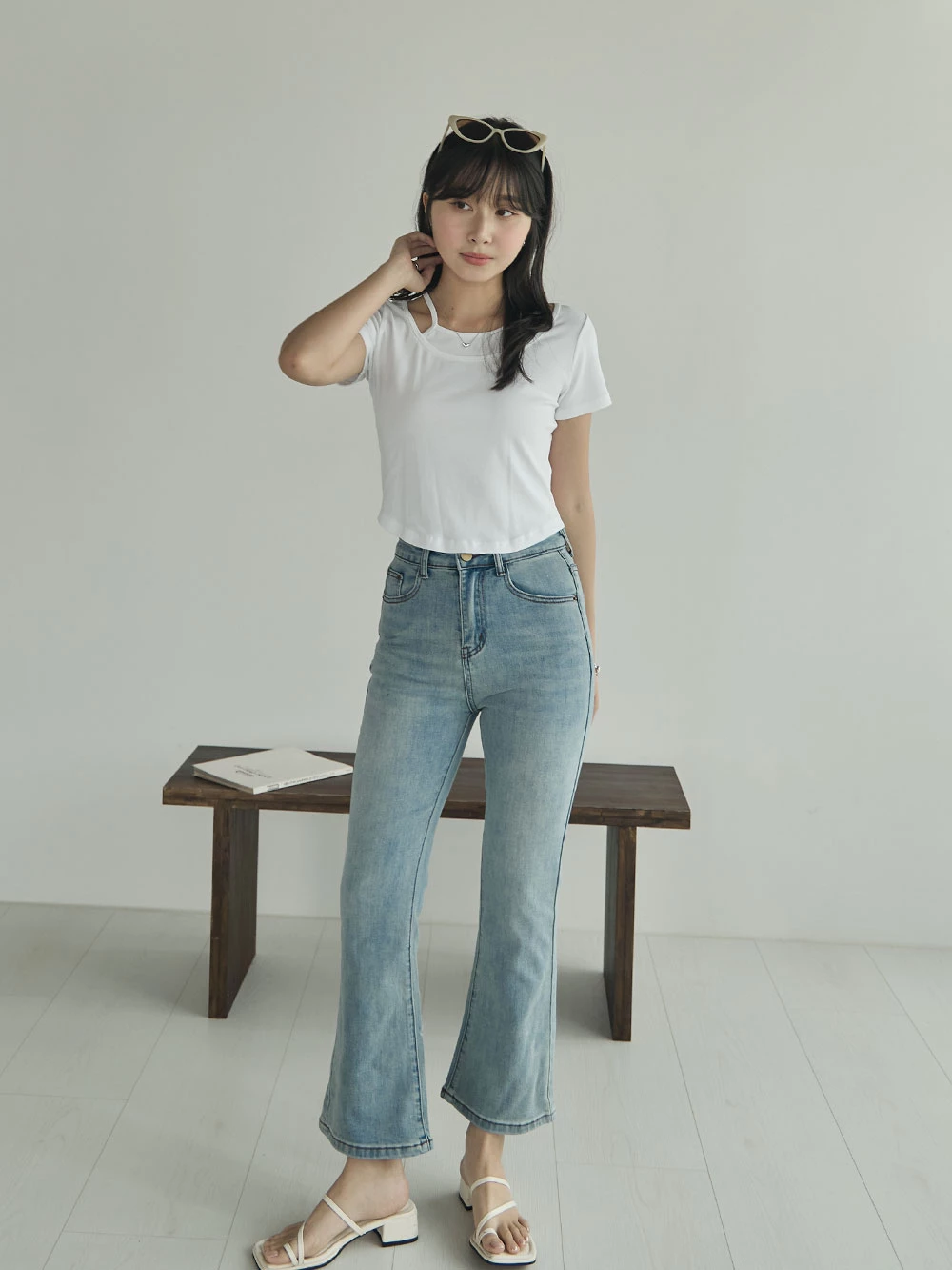彈性八分喇叭牛仔褲