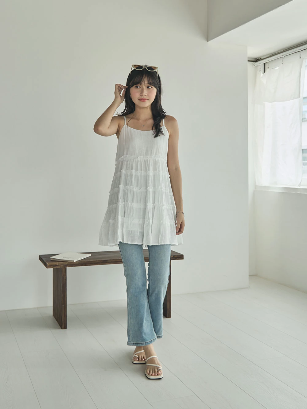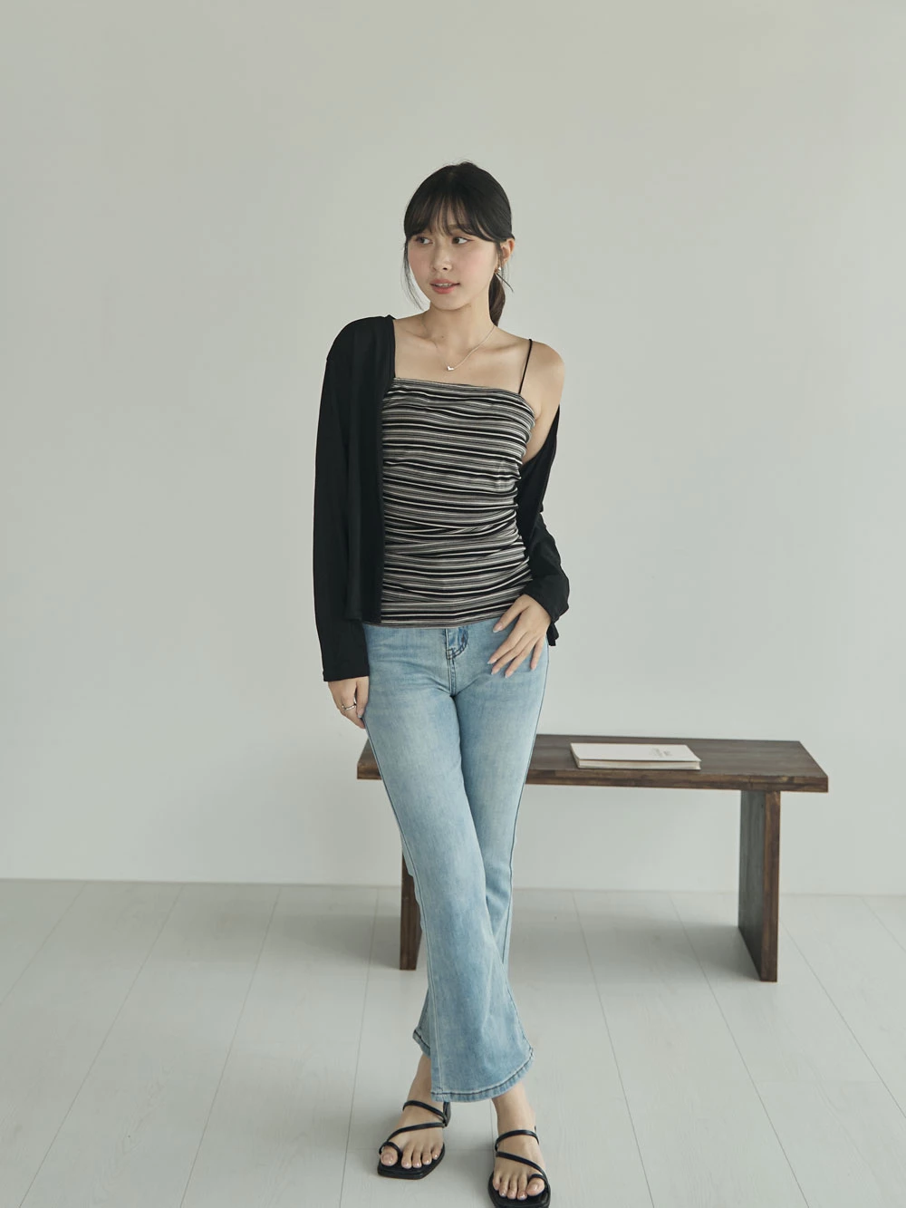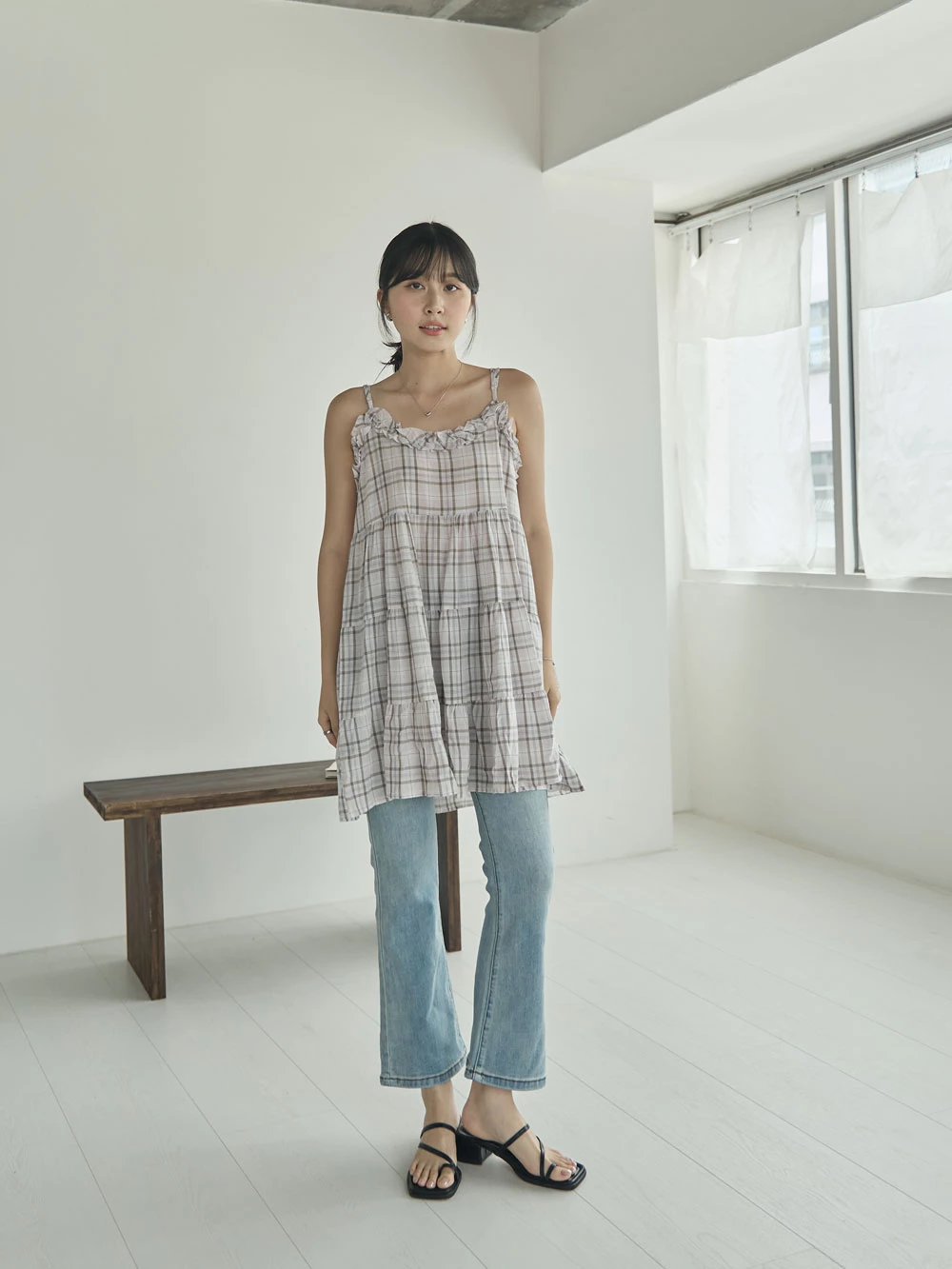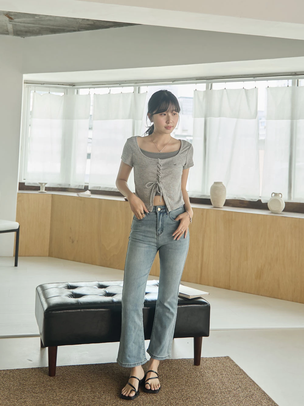 彈性八分喇叭牛仔褲