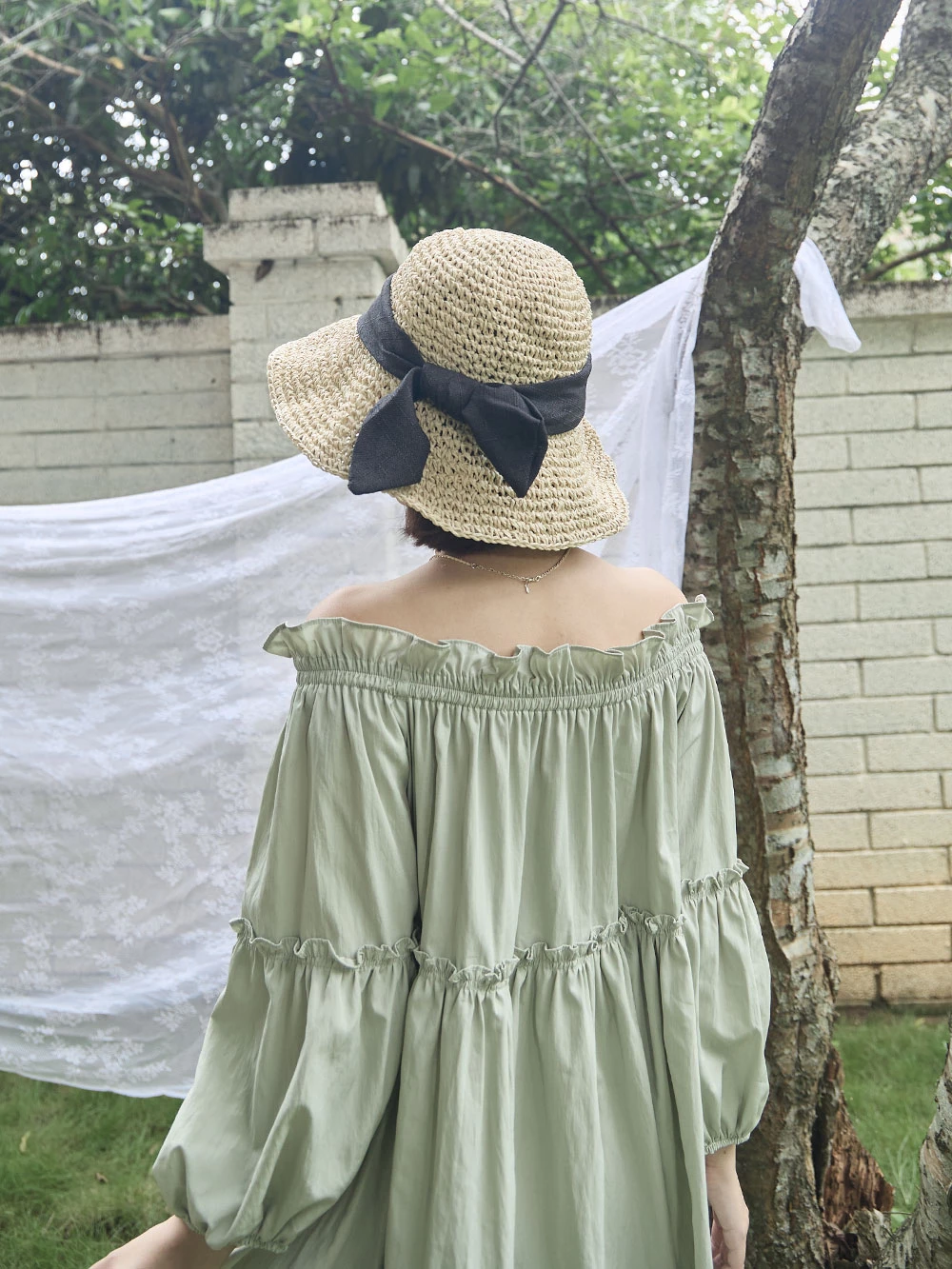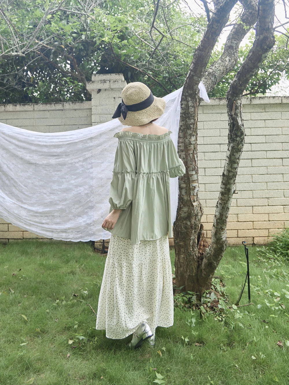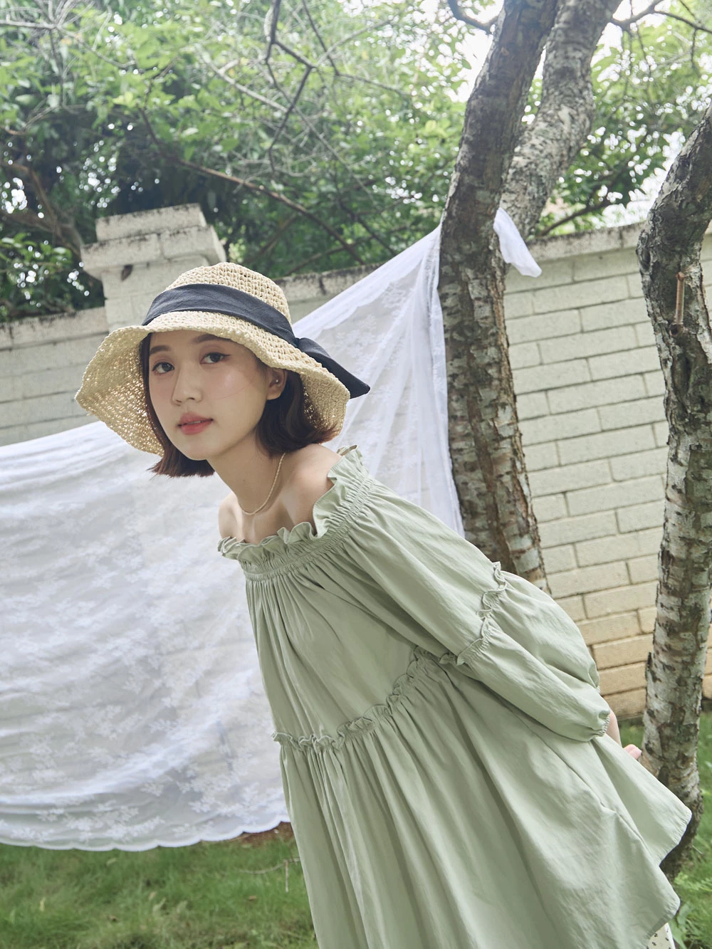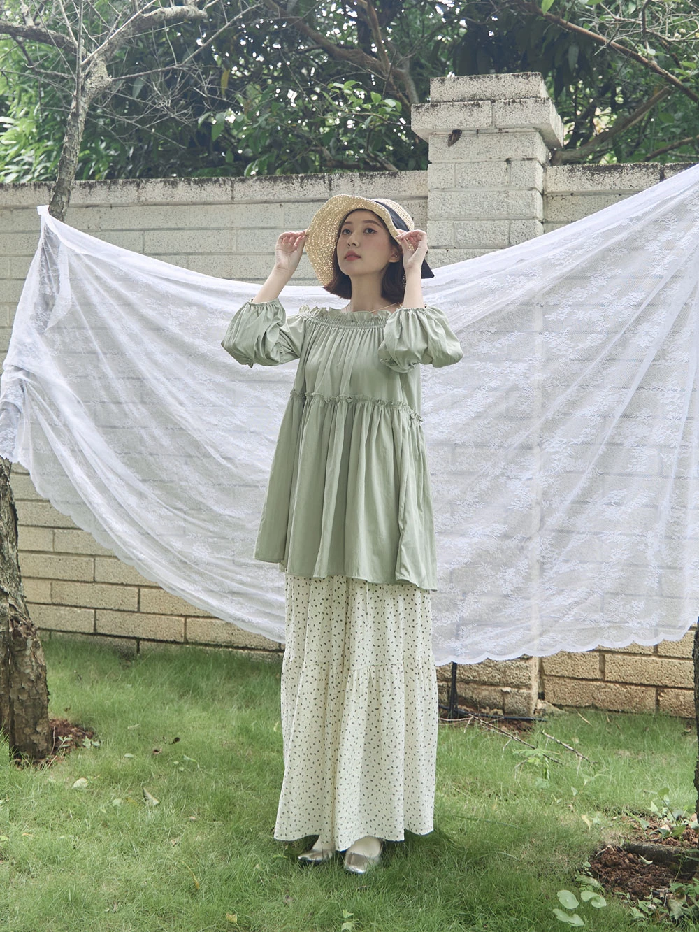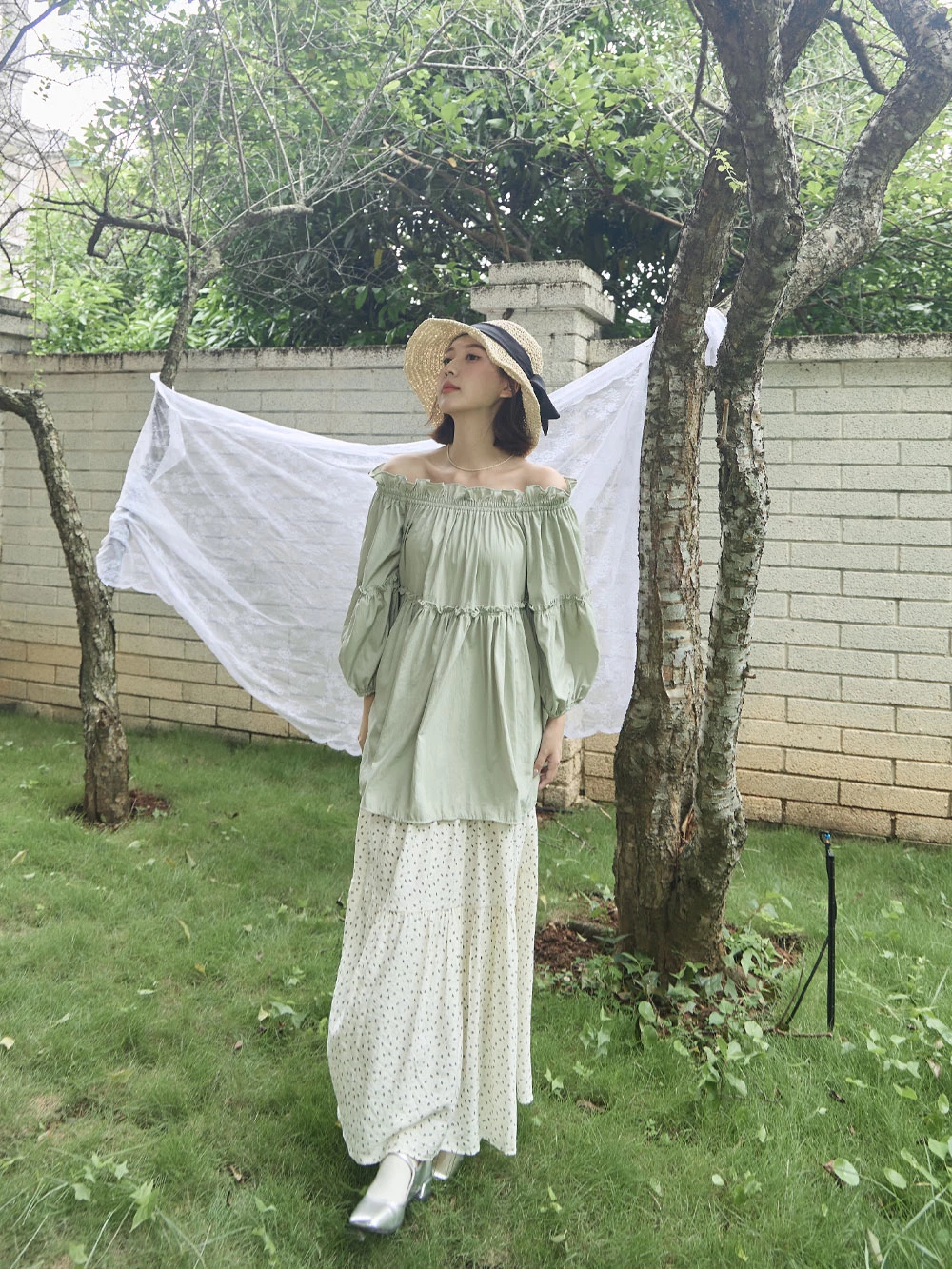 鬆緊一字領荷葉邊上衣 | Space Picnic