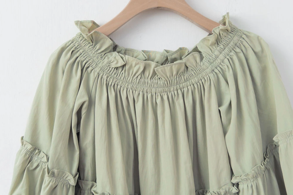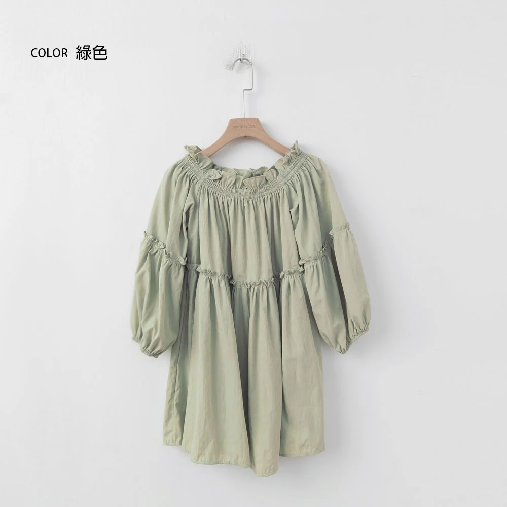 鬆緊一字領荷葉邊上衣