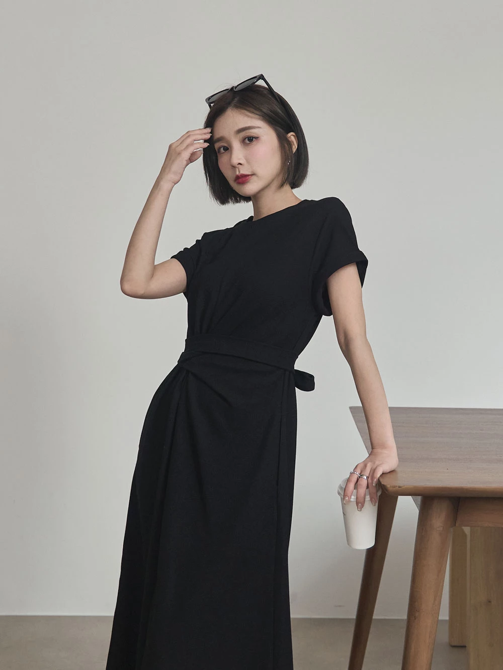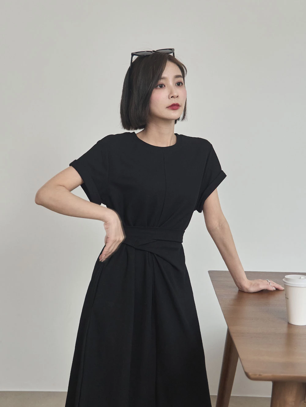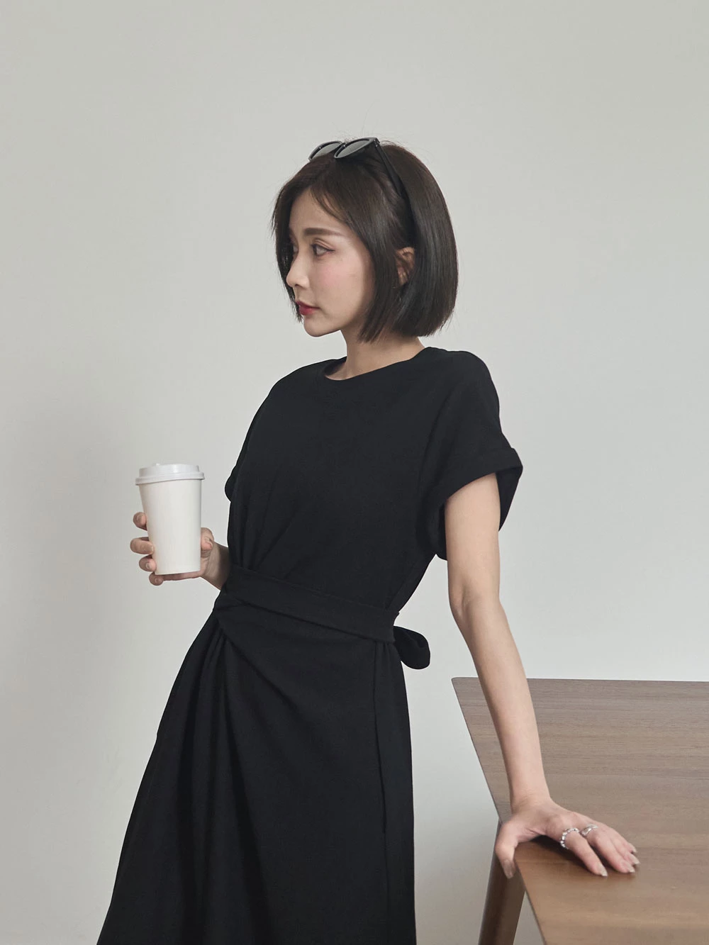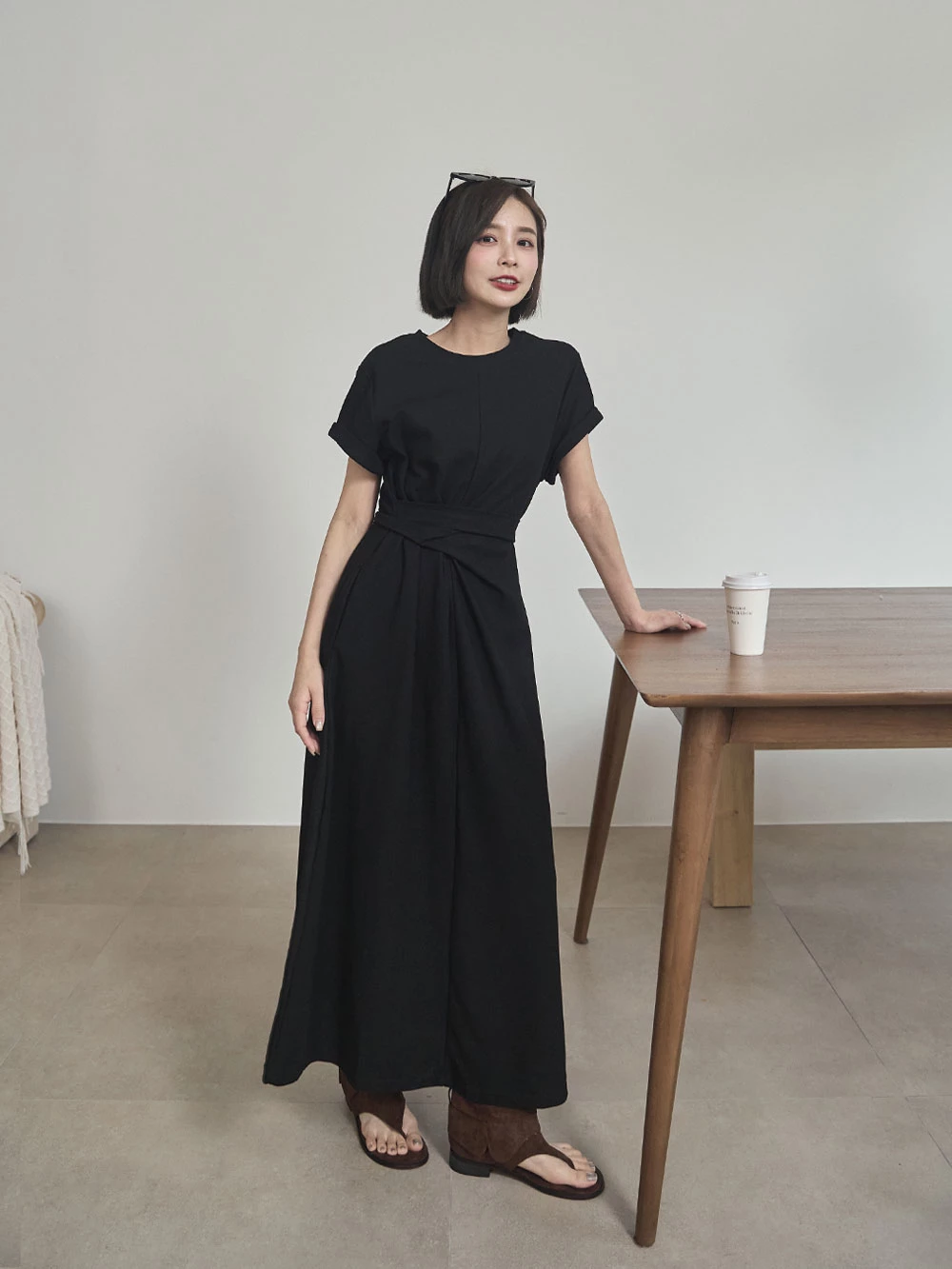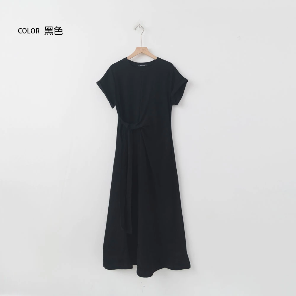 抓皺綁繩短袖洋裝