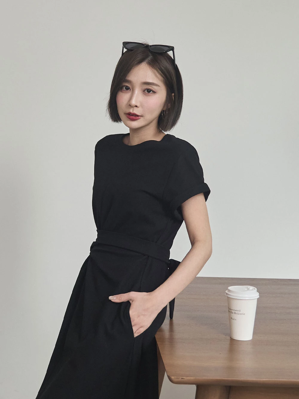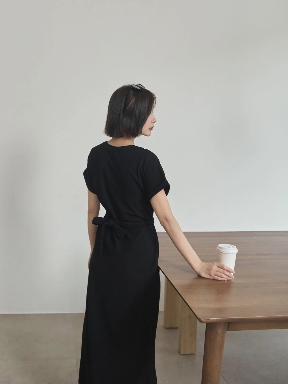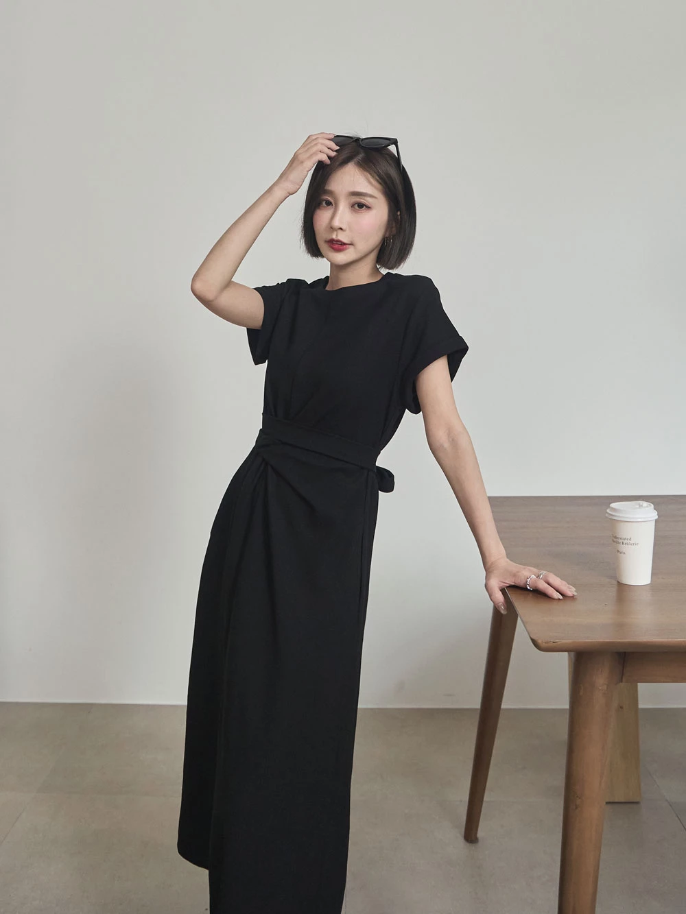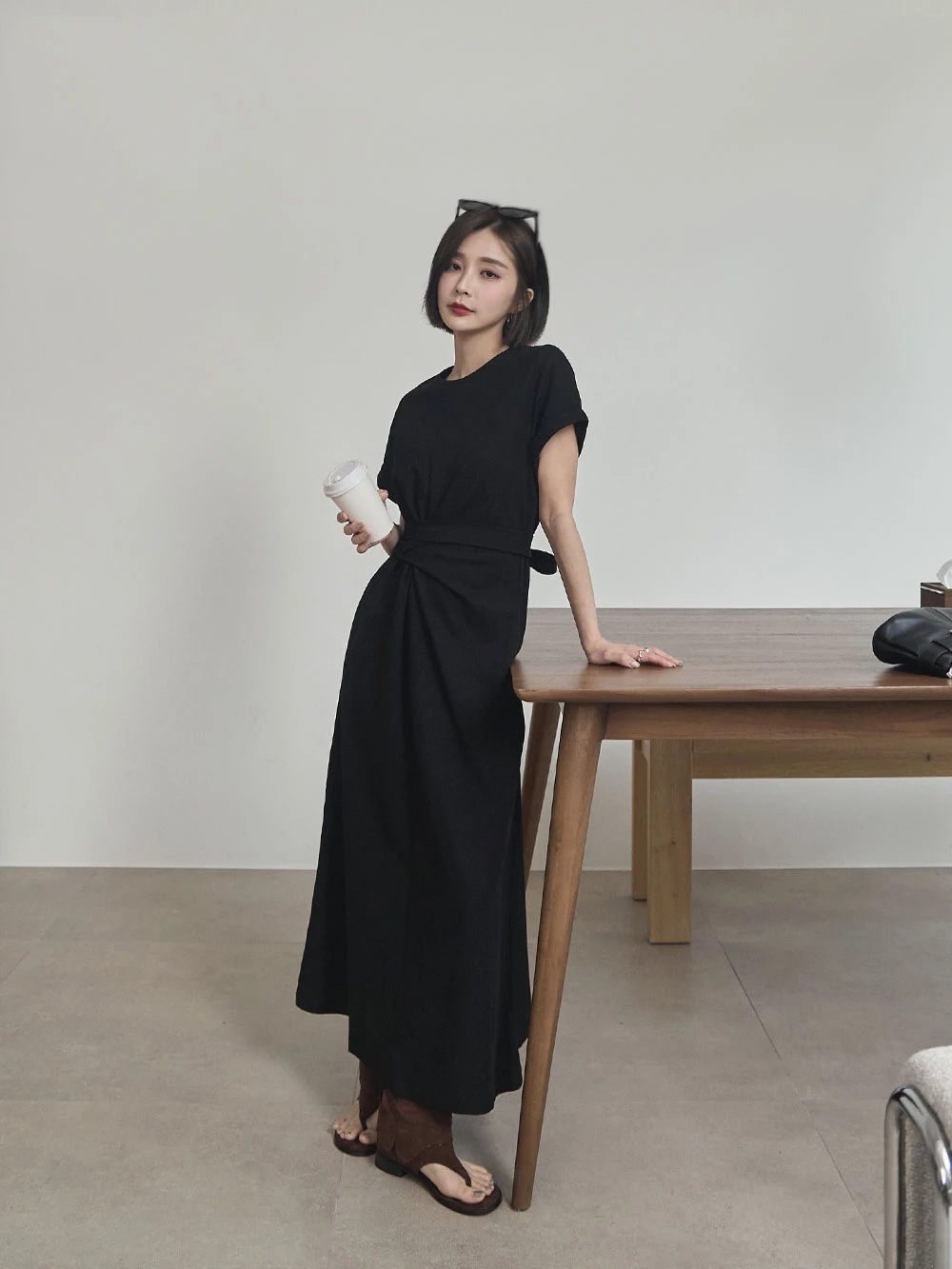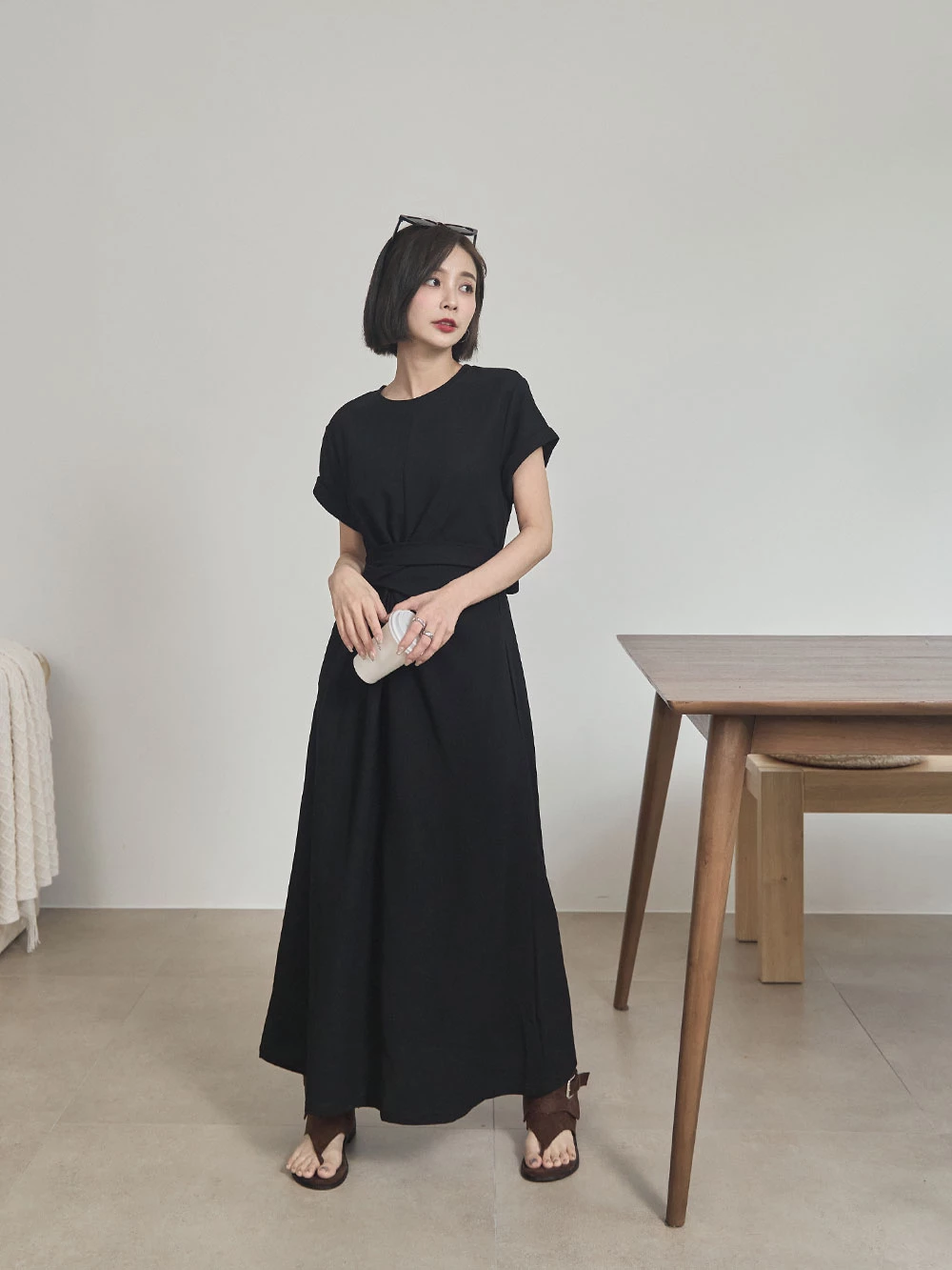 抓皺綁繩短袖洋裝