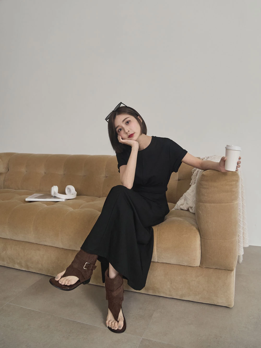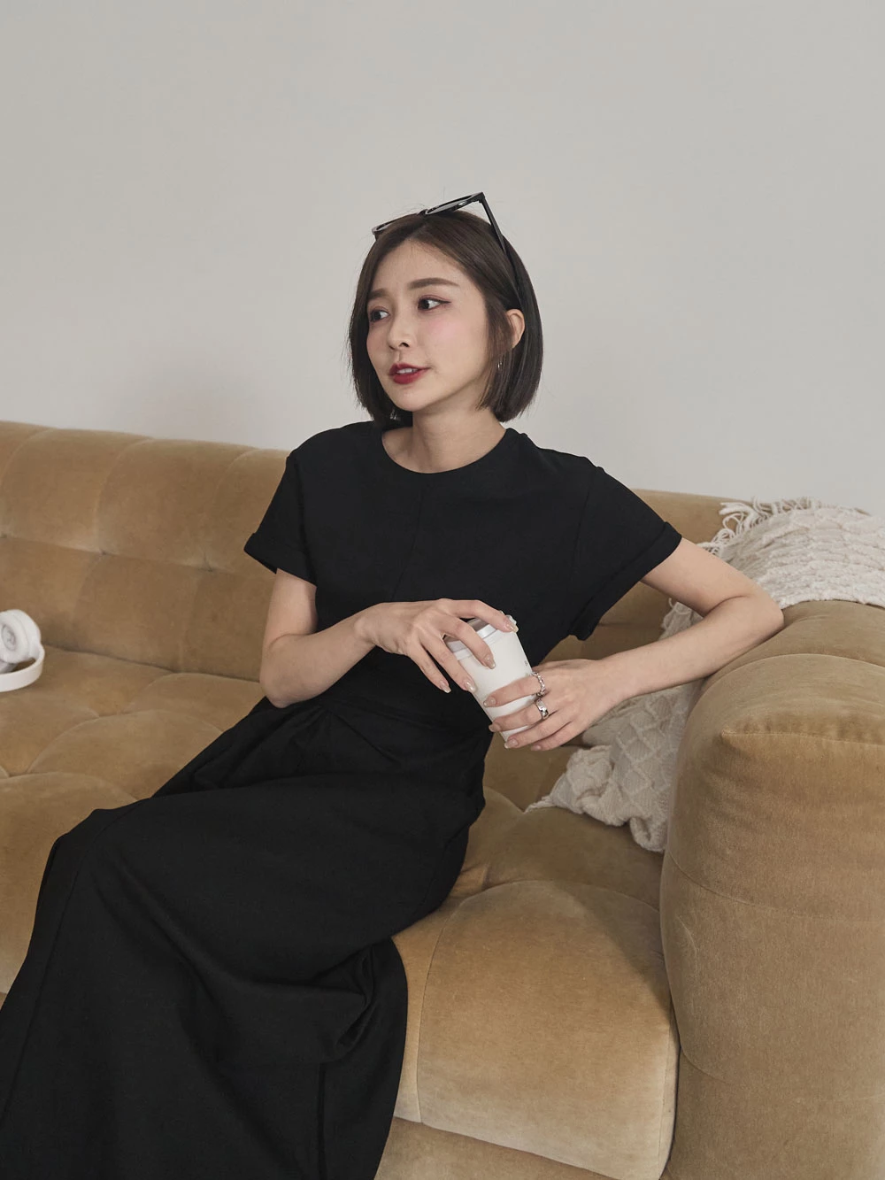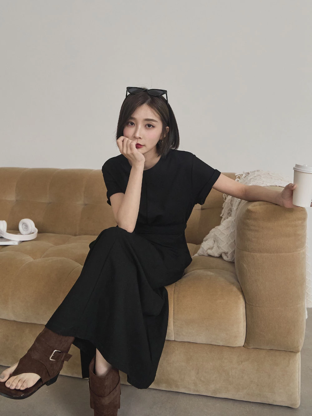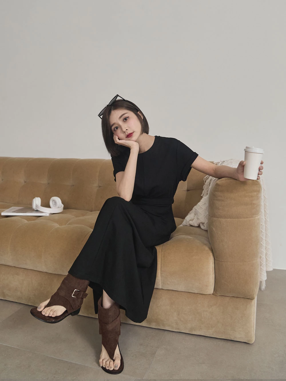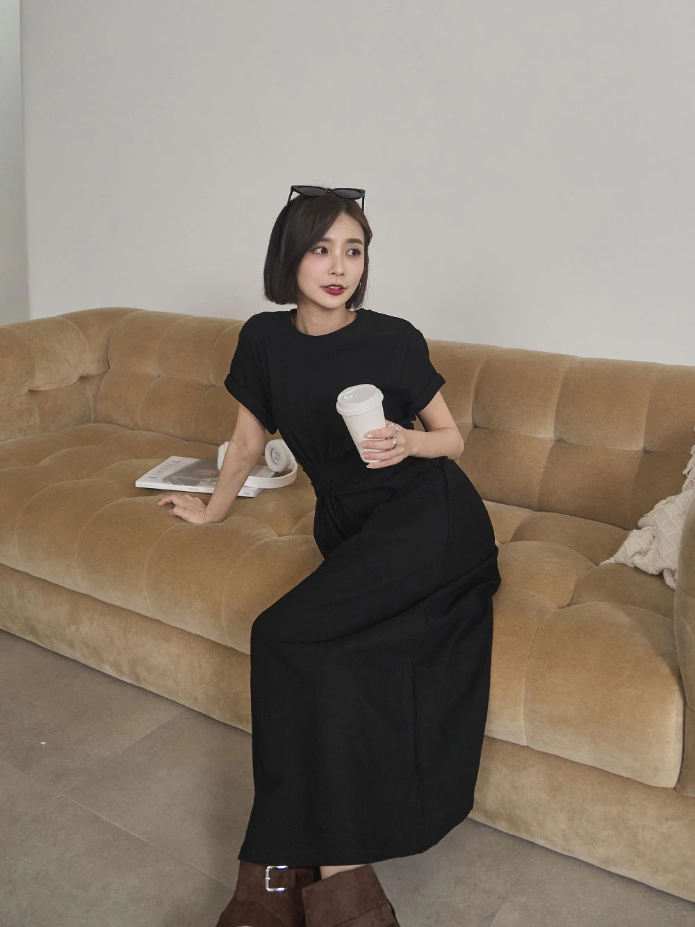 抓皺綁繩短袖洋裝