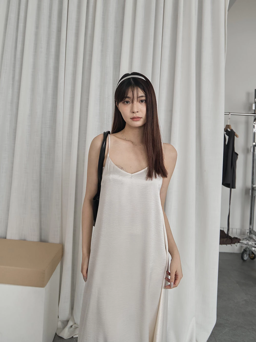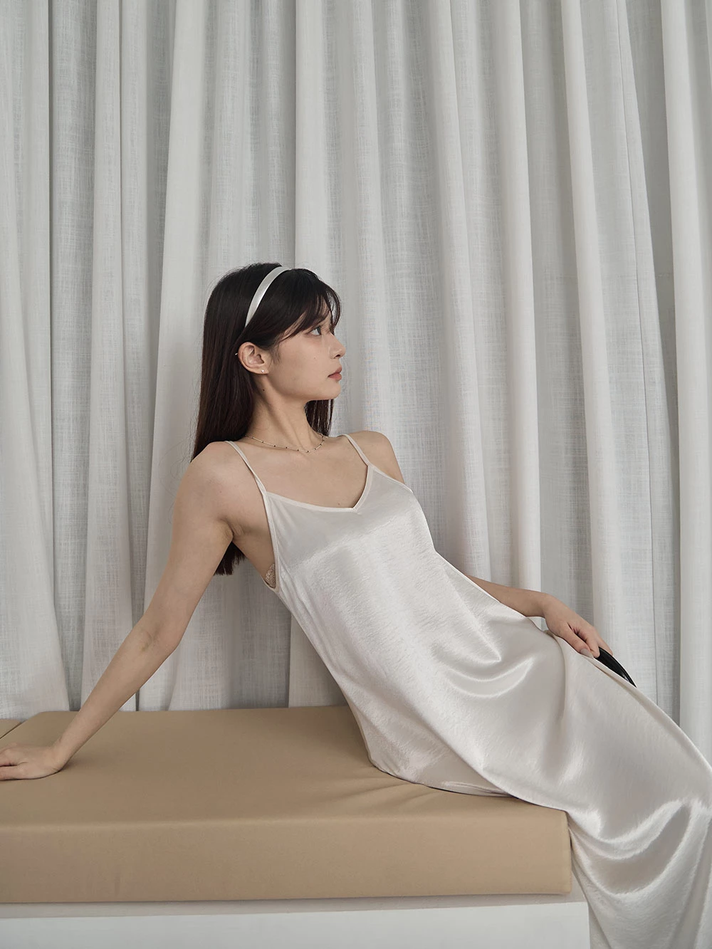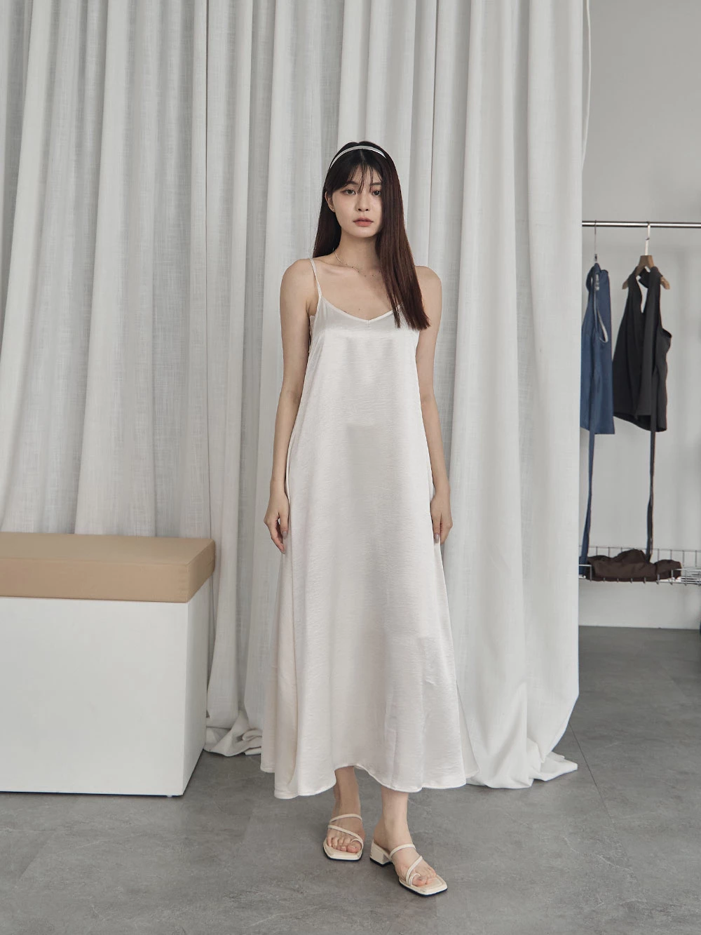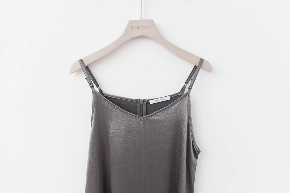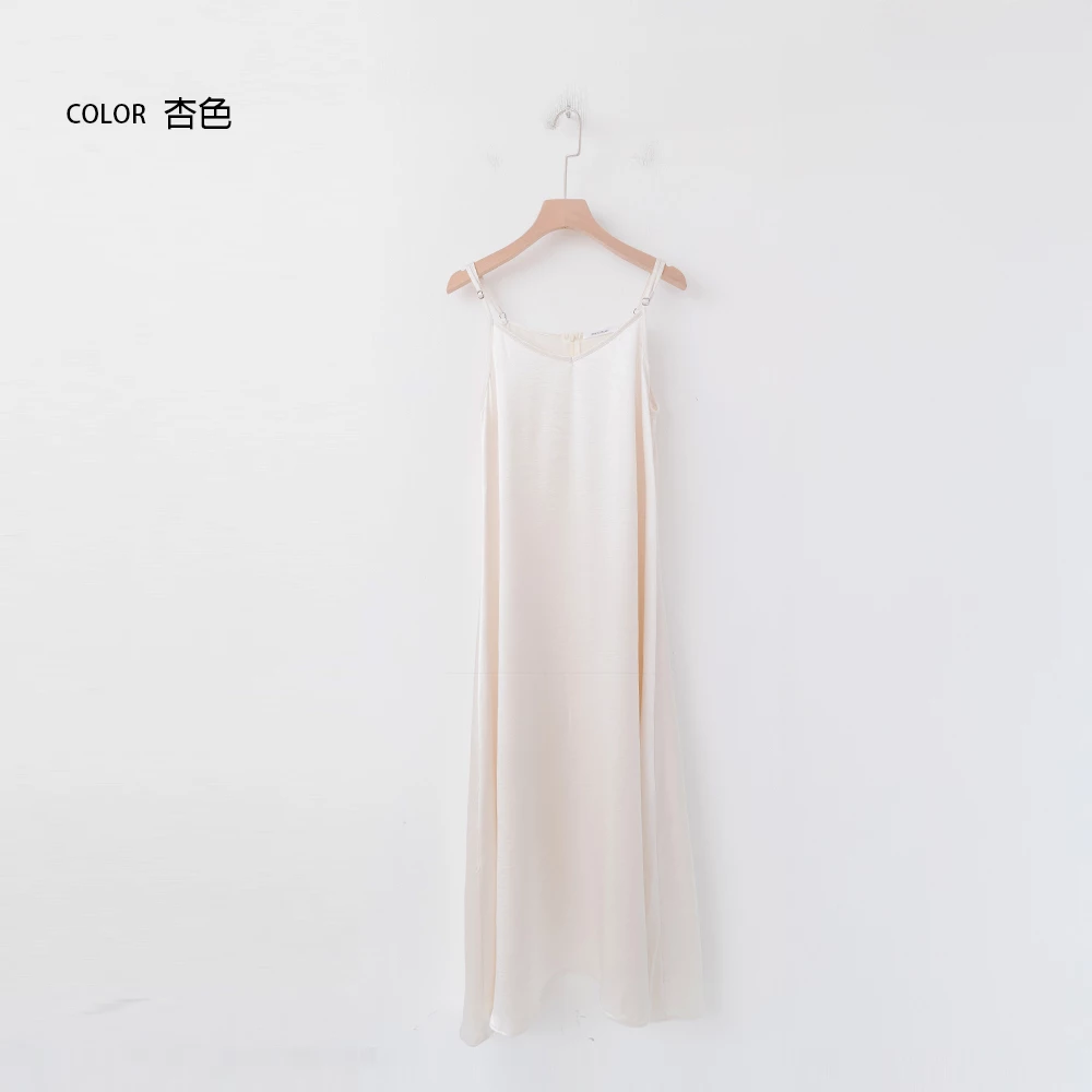 光澤緞面細肩長洋裝