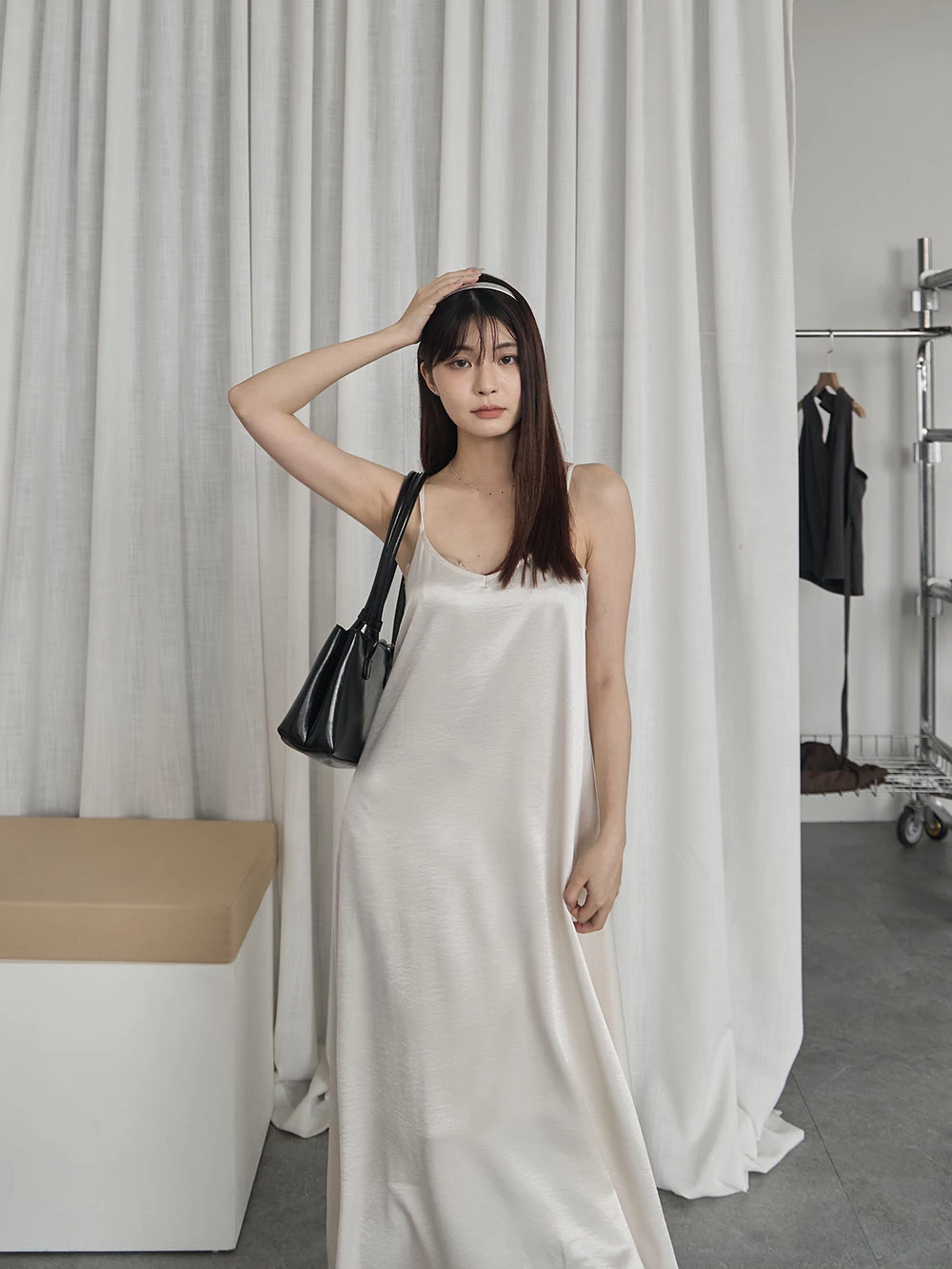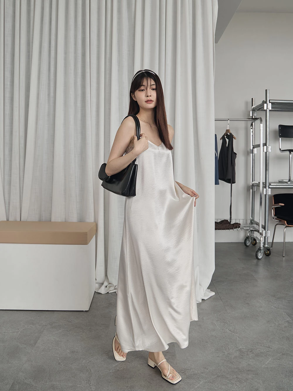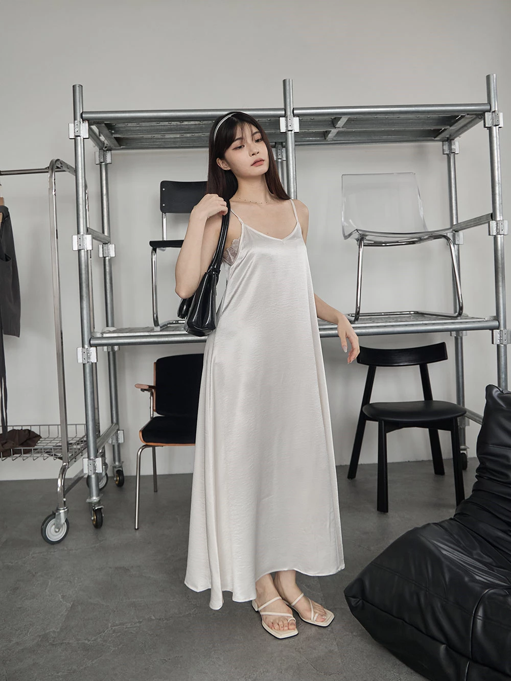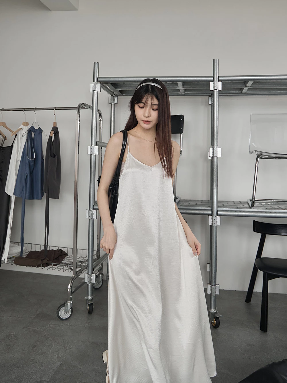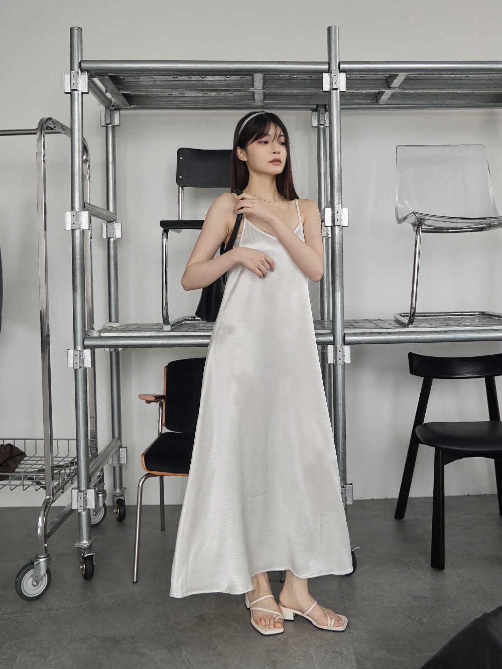 光澤緞面細肩長洋裝