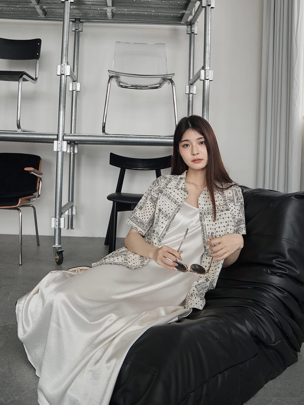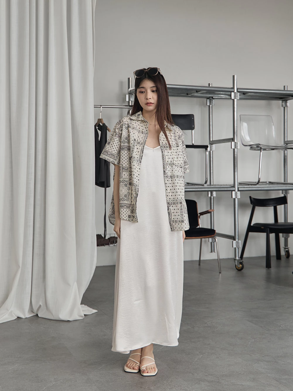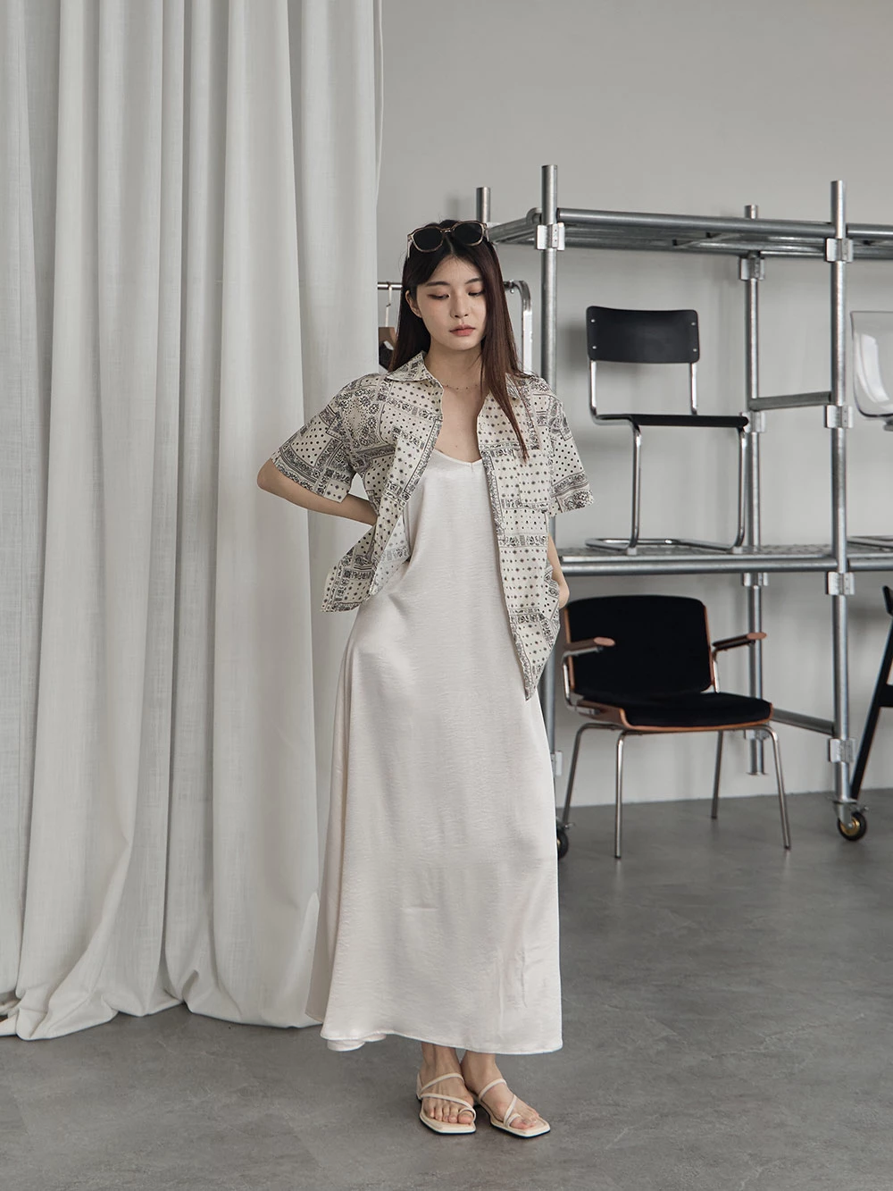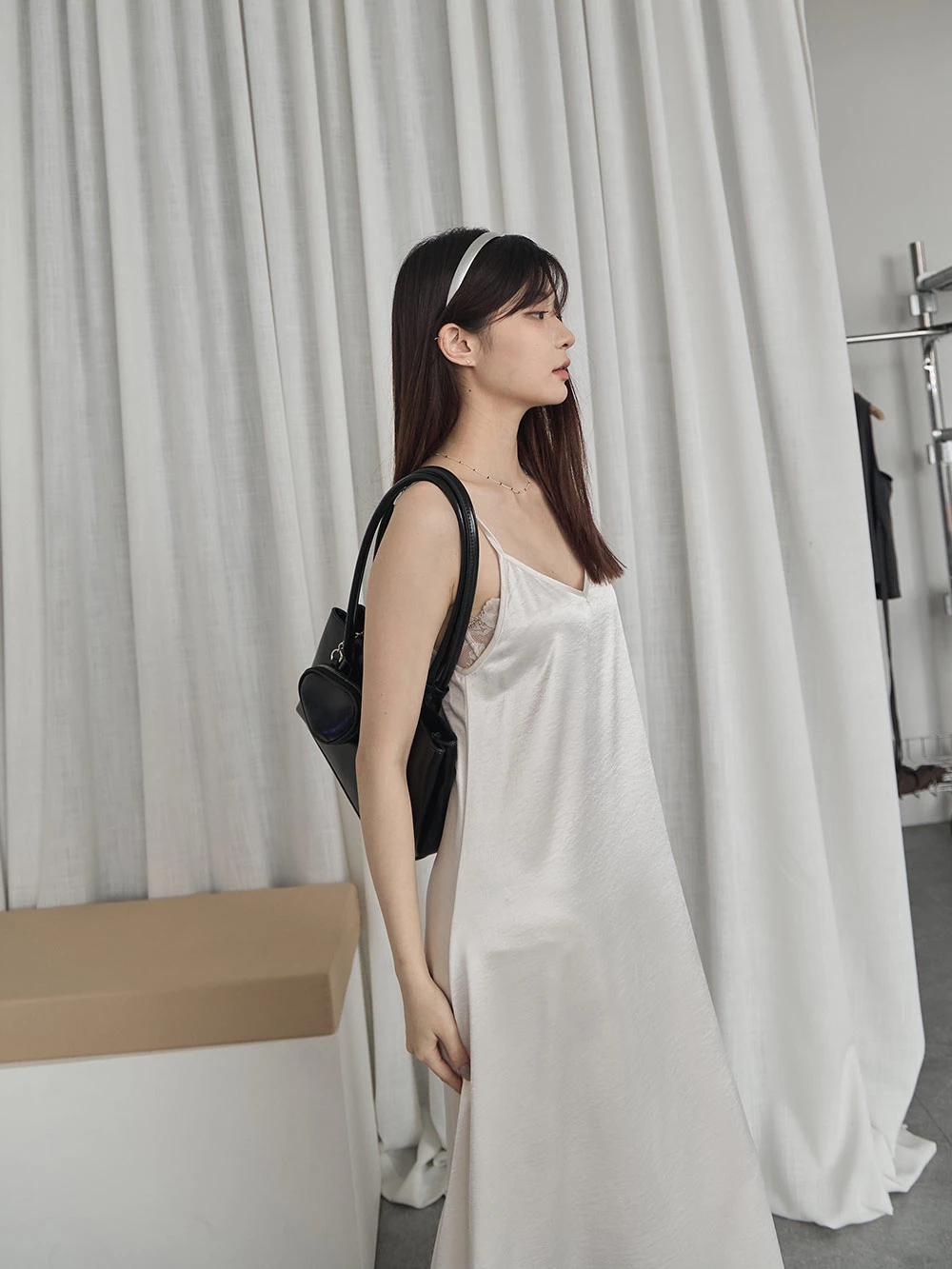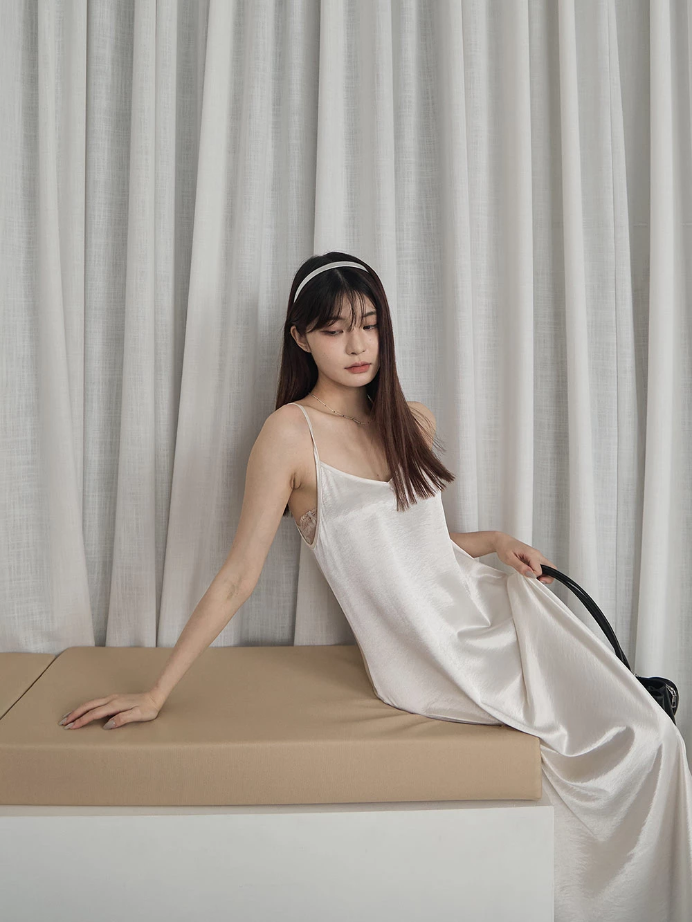 光澤緞面細肩長洋裝