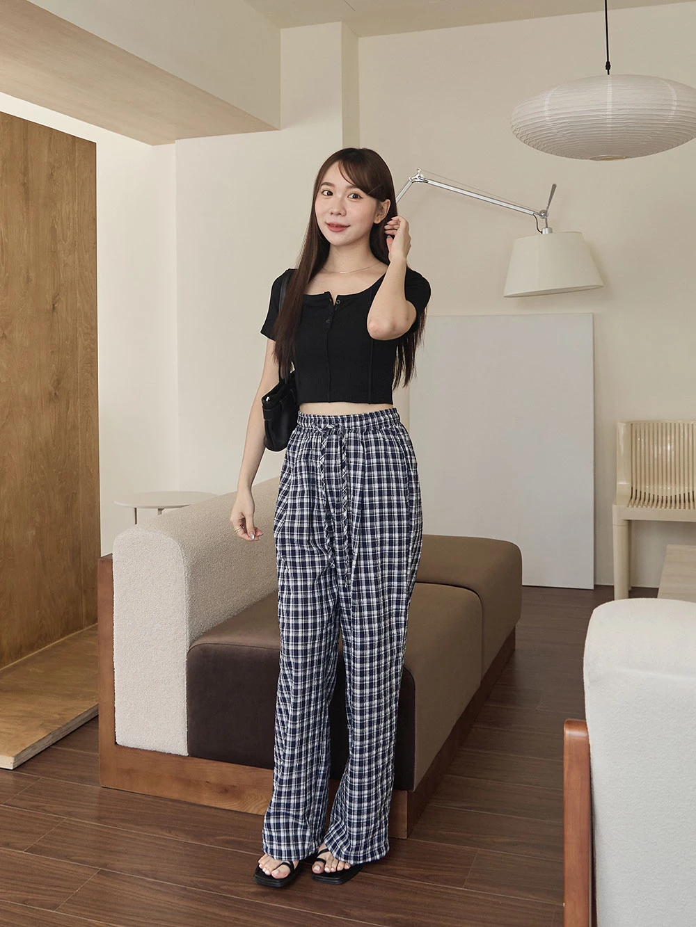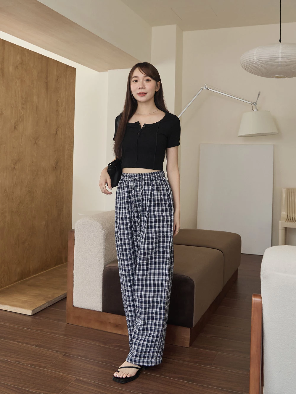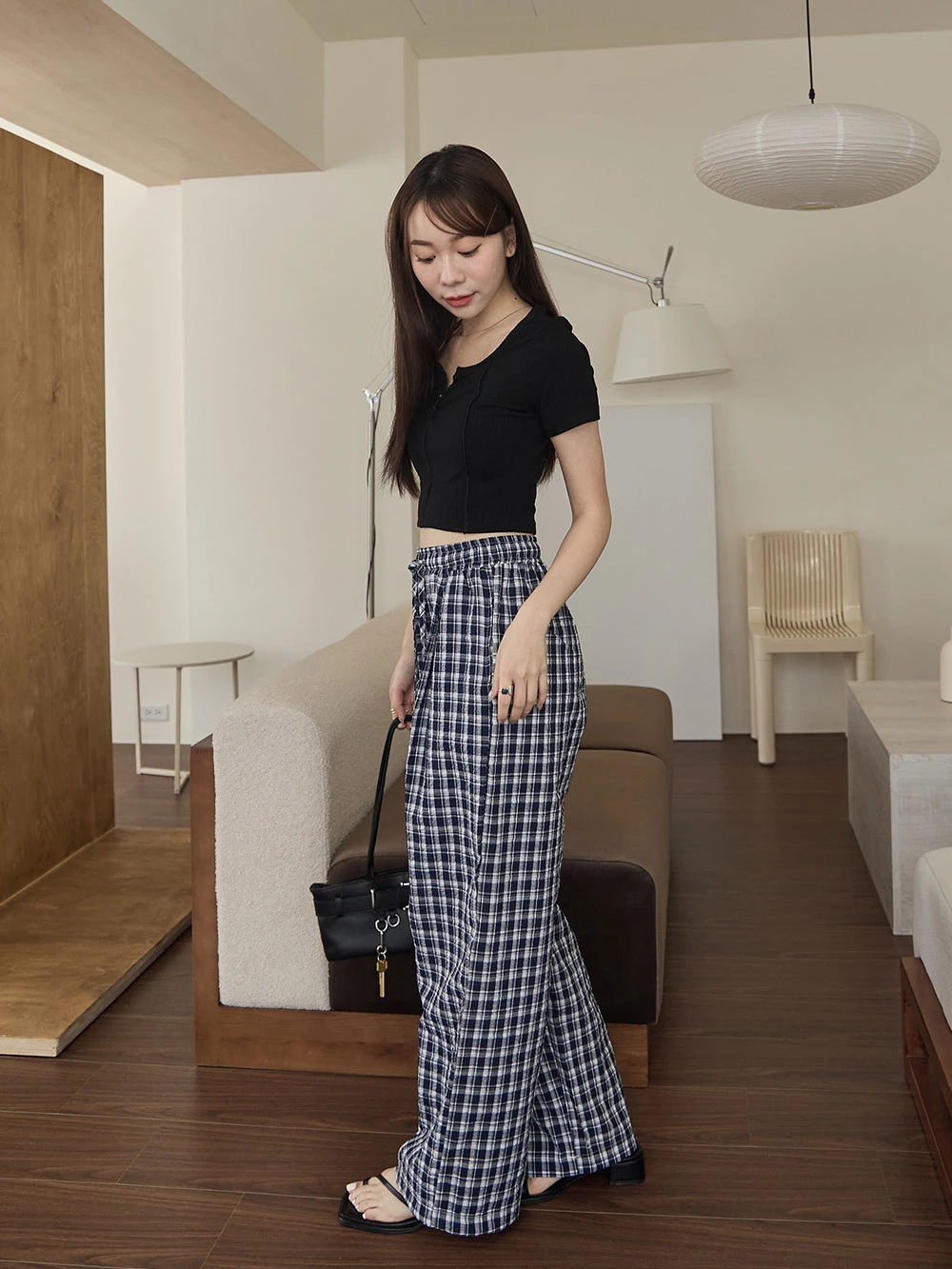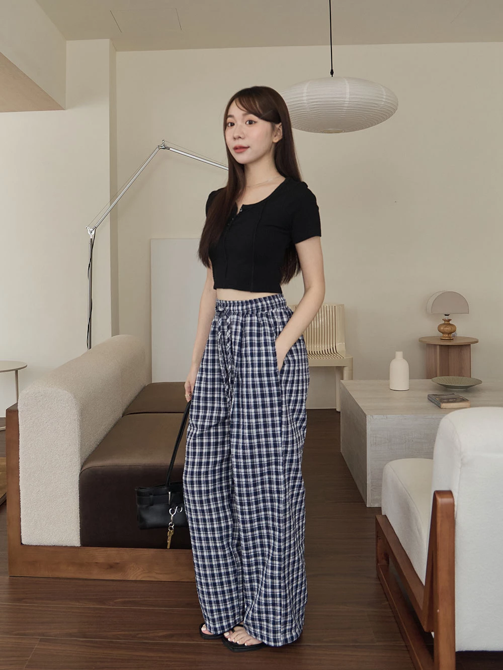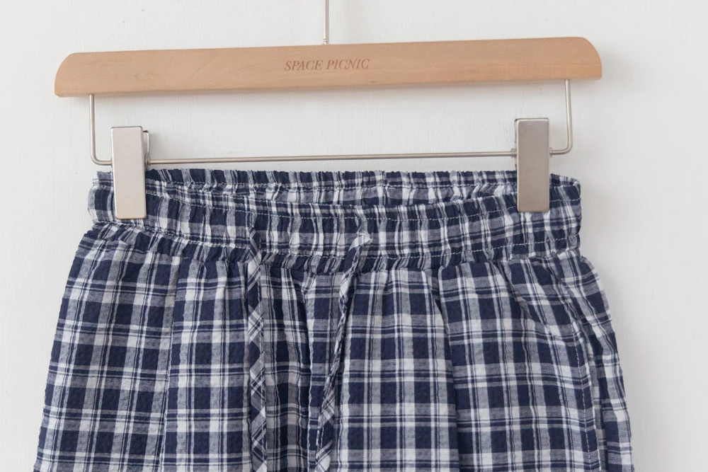 抽繩格紋寬褲 | Space Picnic