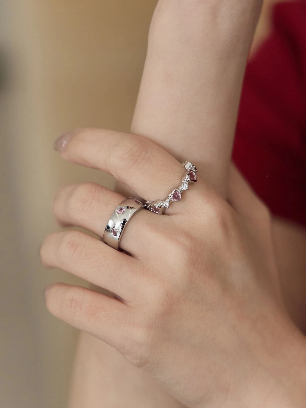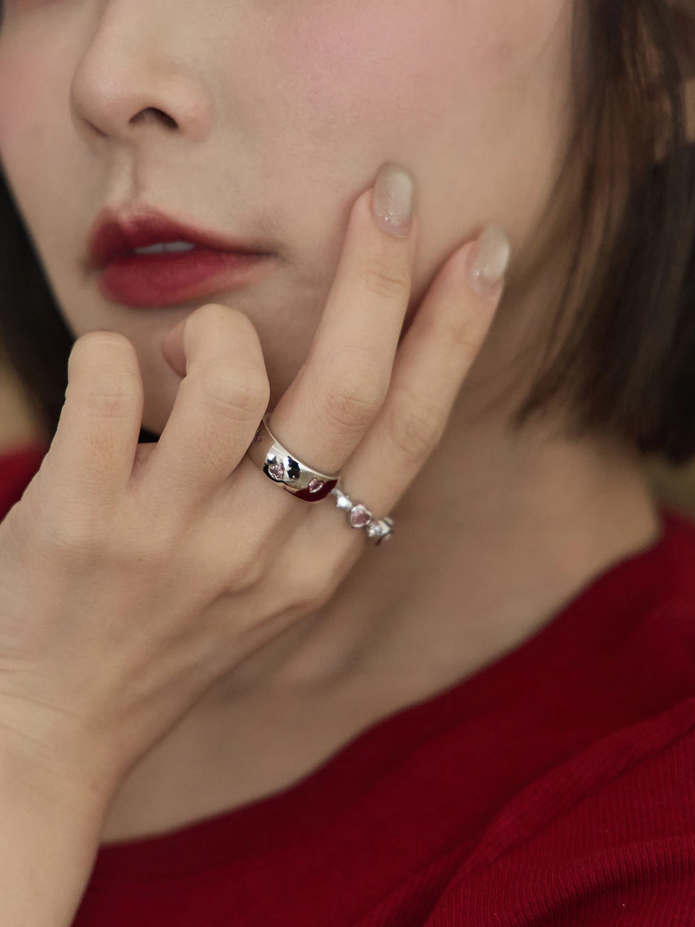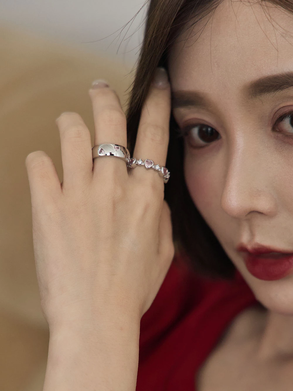 愛心水鑽C型戒指