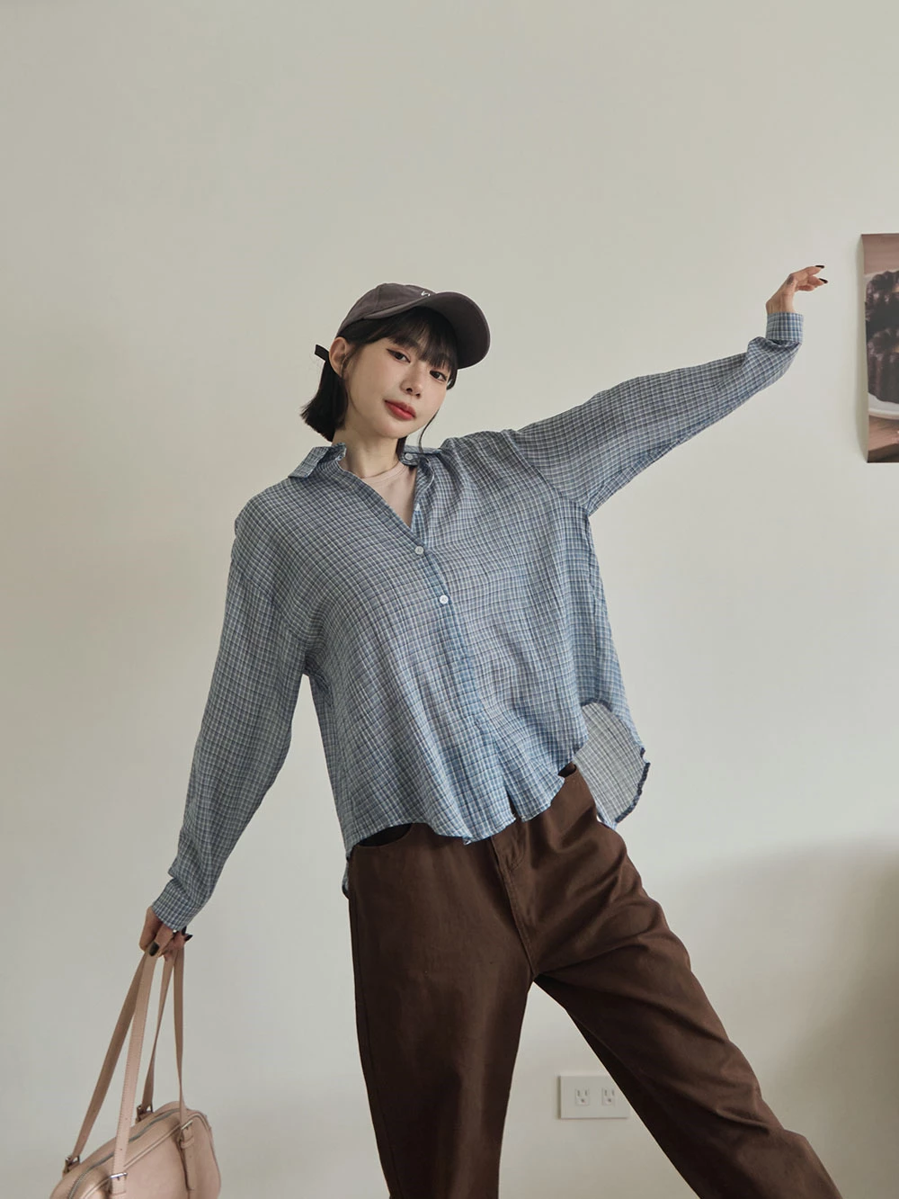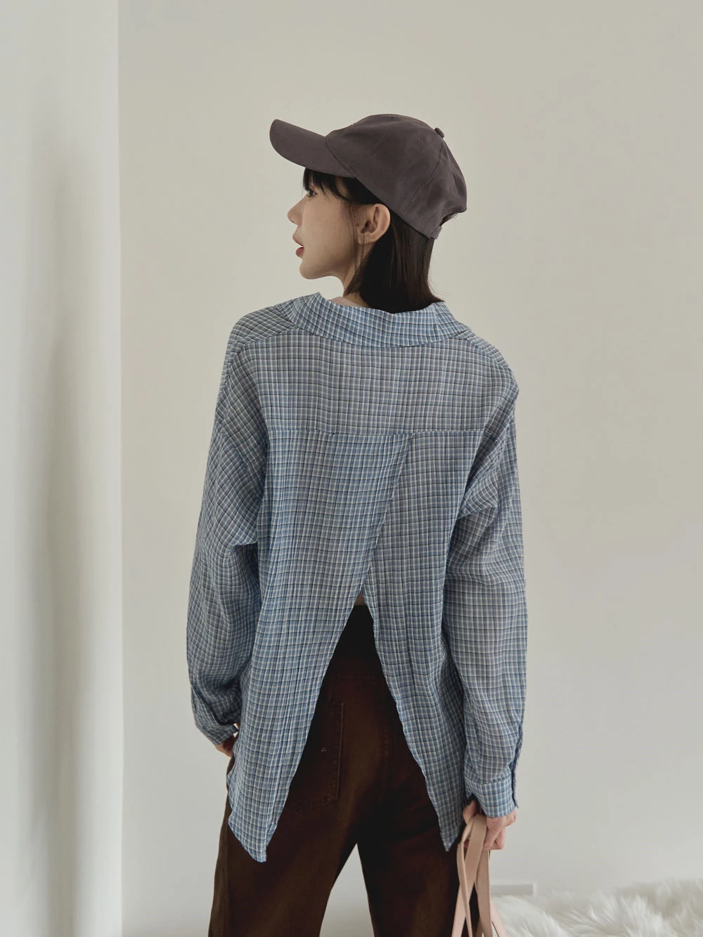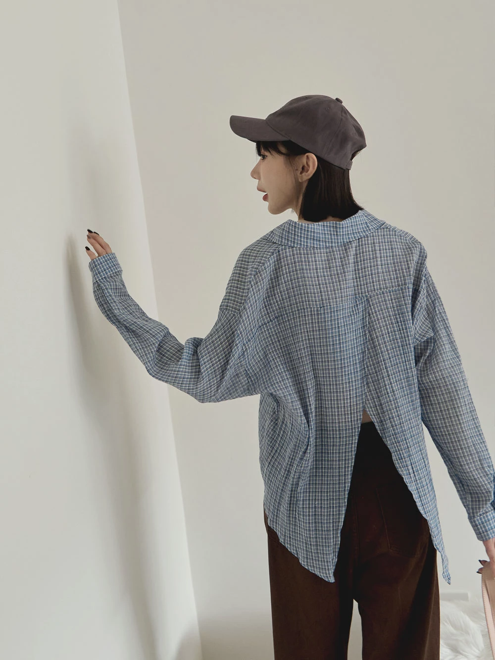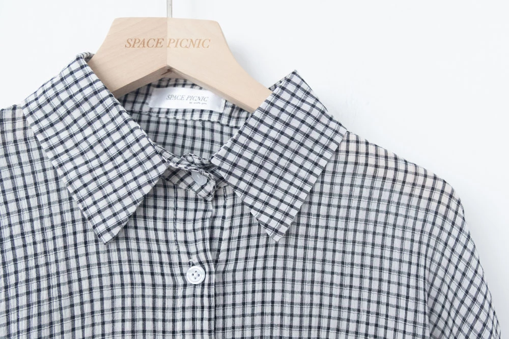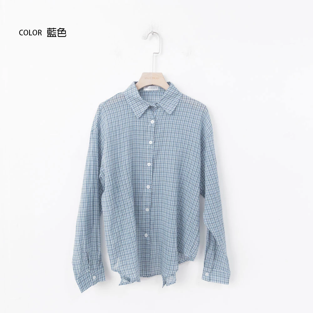 後開衩格紋襯衫