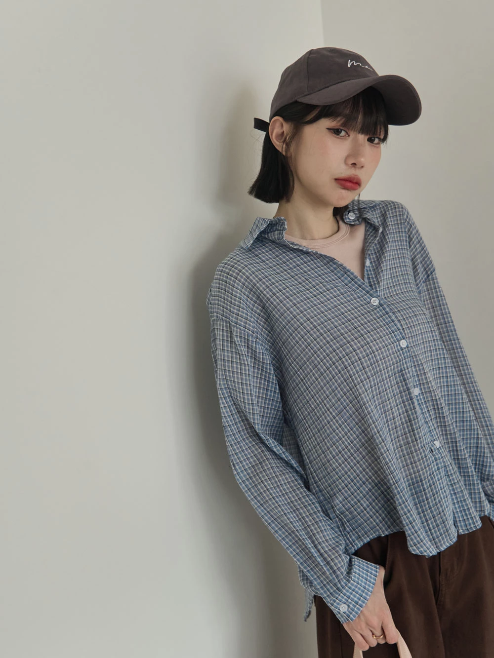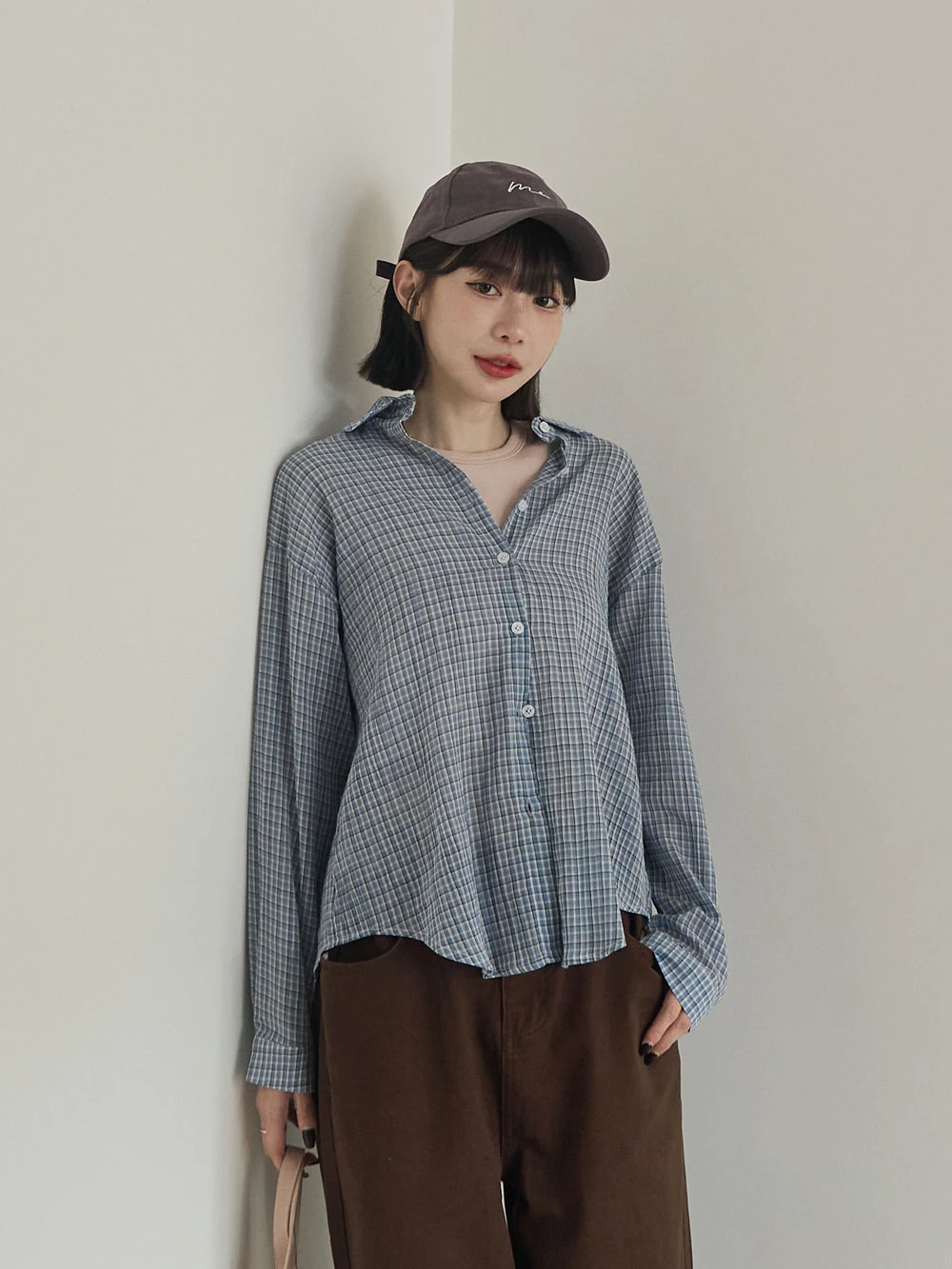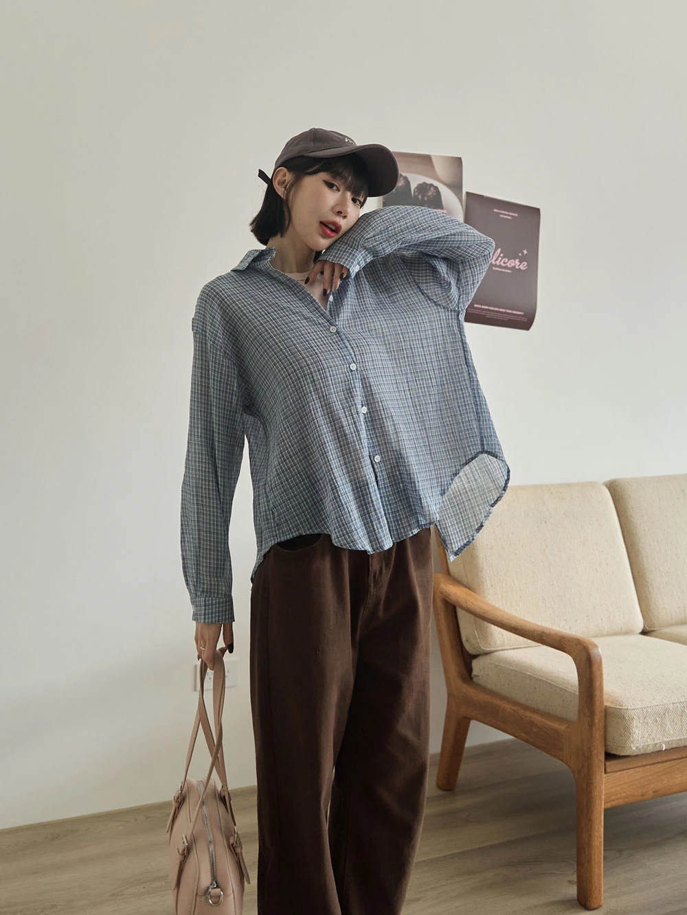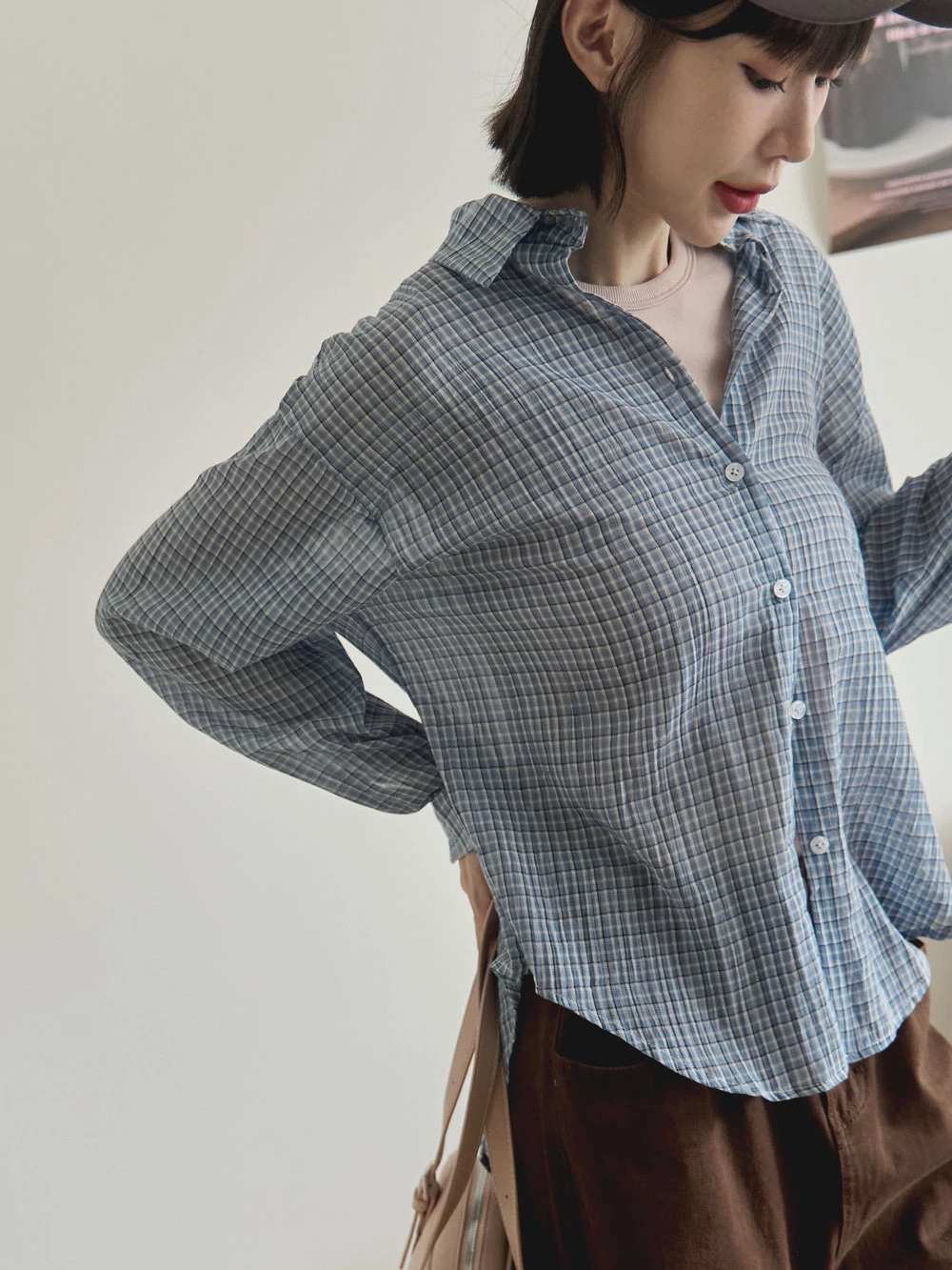 後開衩格紋襯衫
