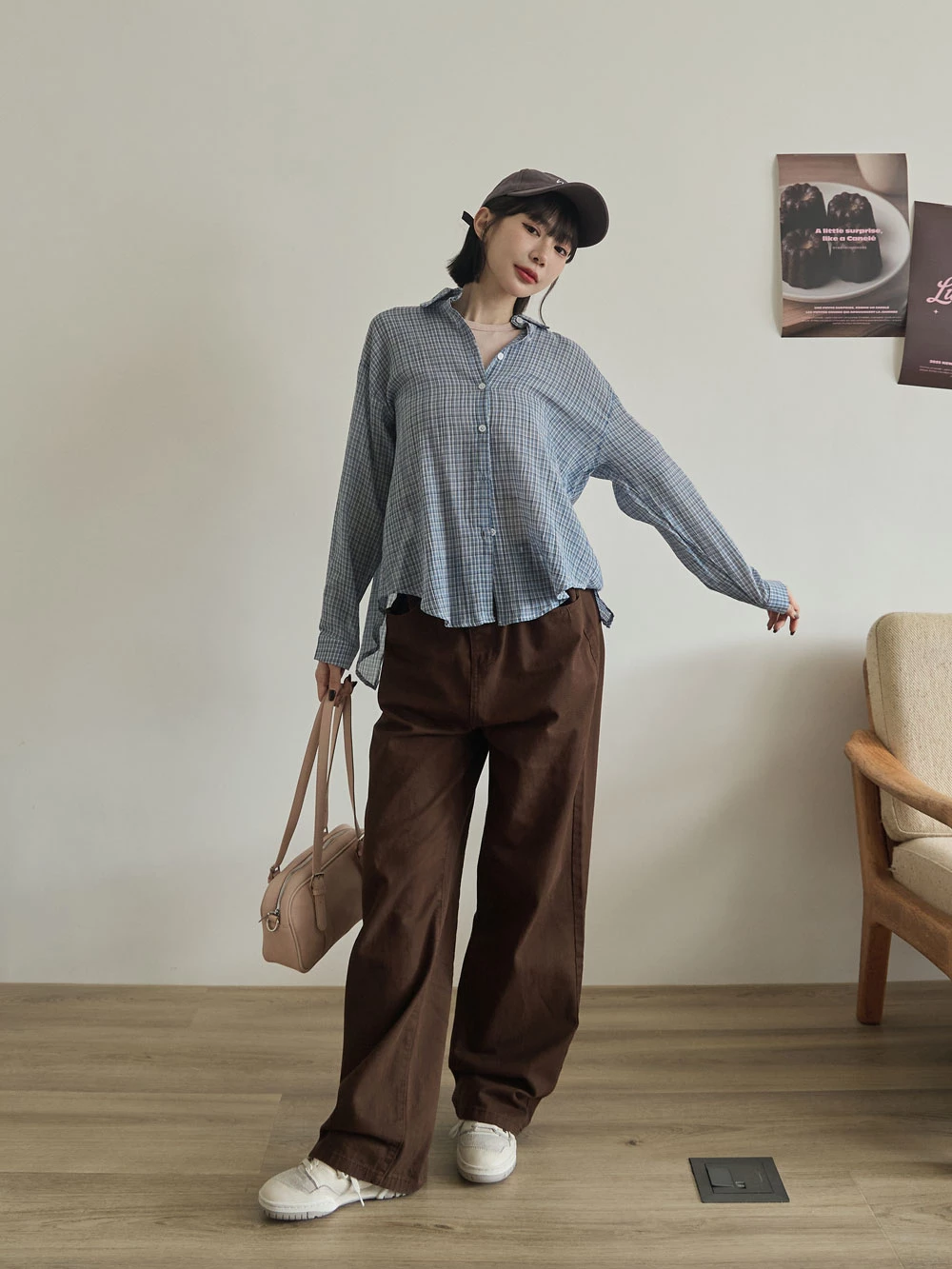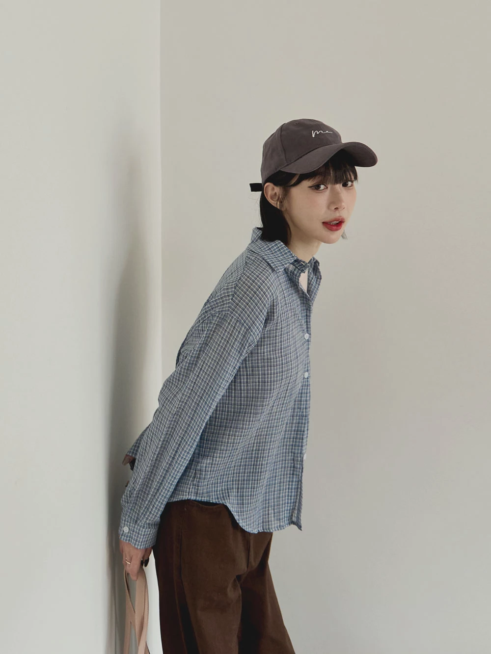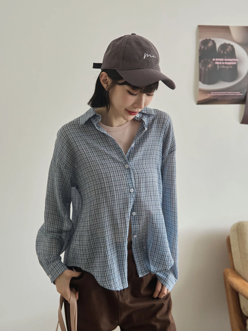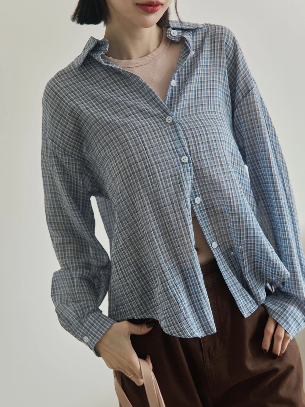 後開衩格紋襯衫