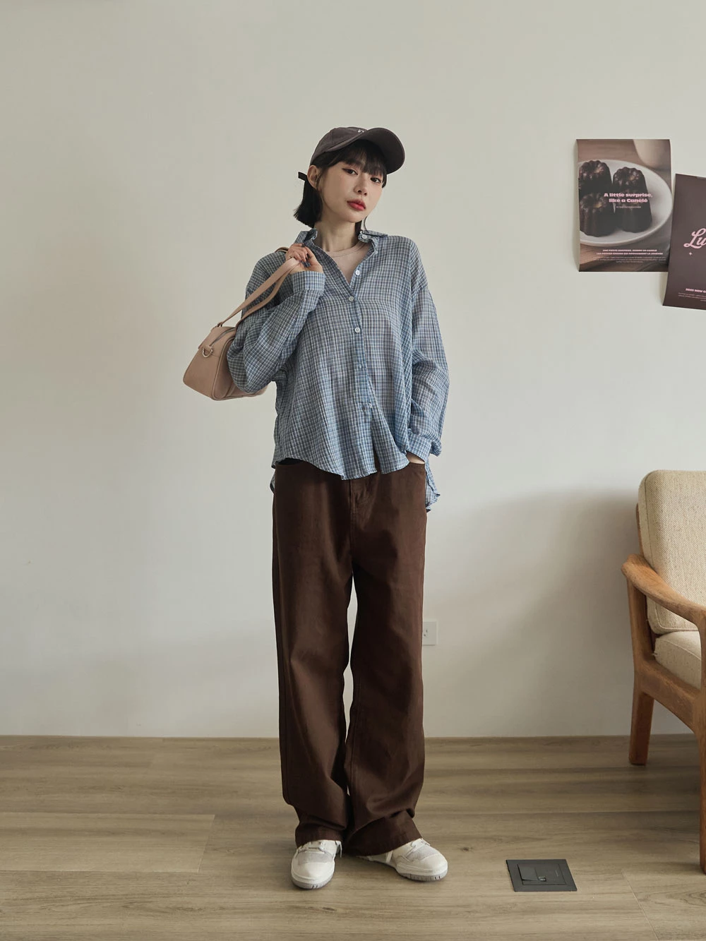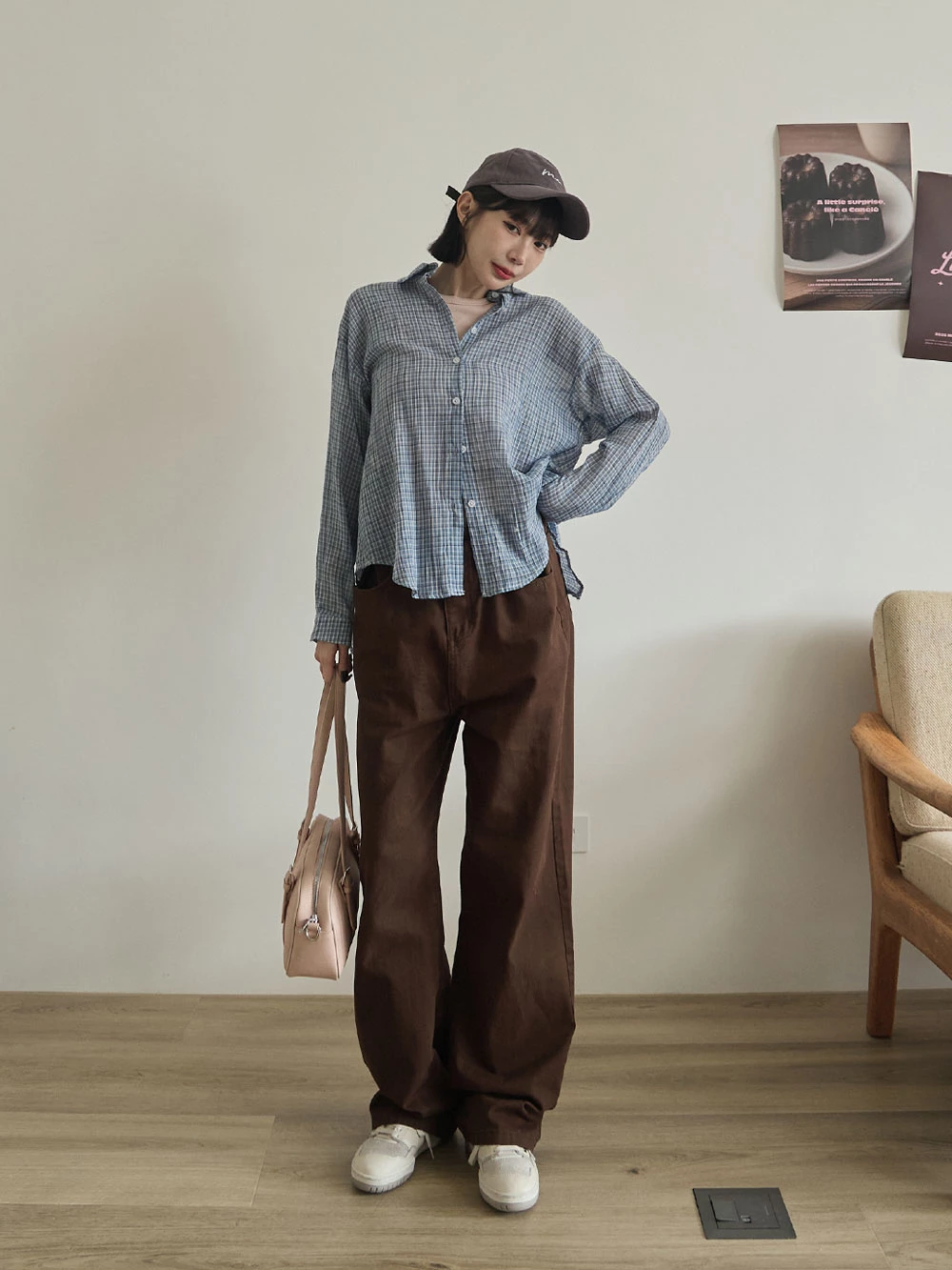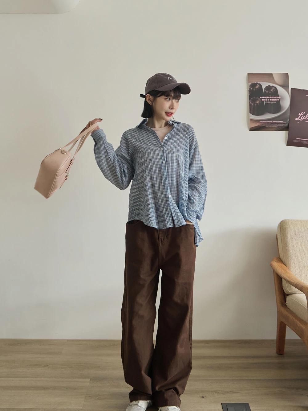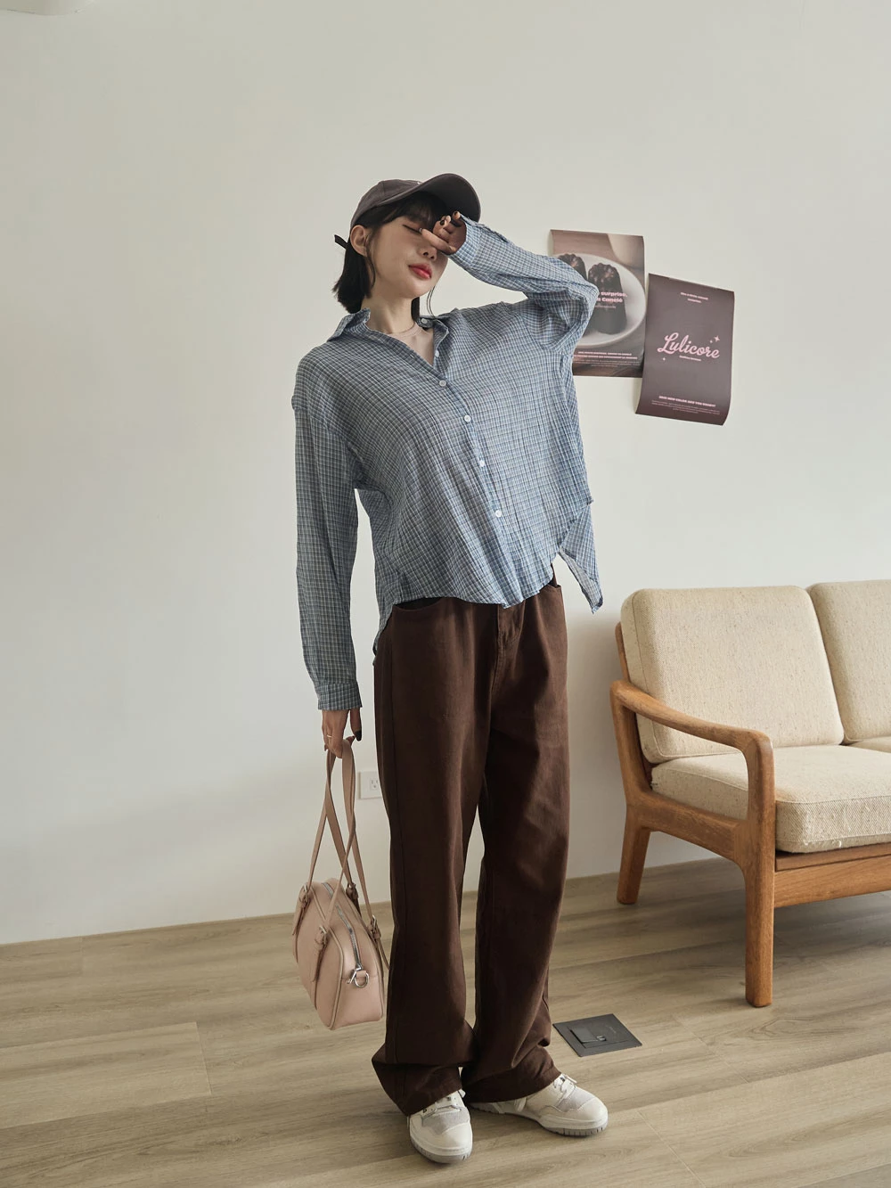 後開衩格紋襯衫