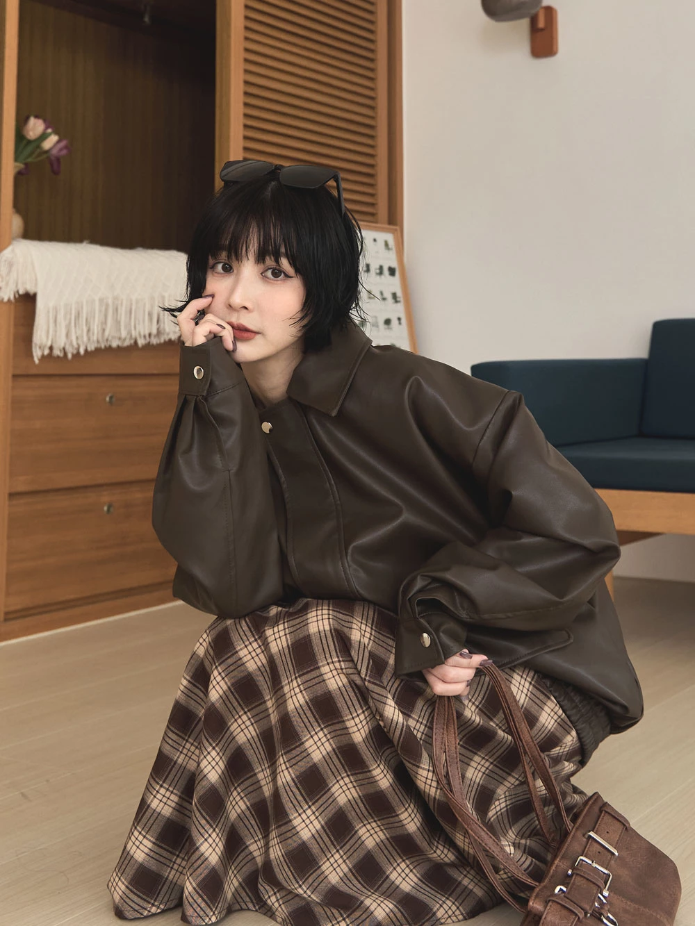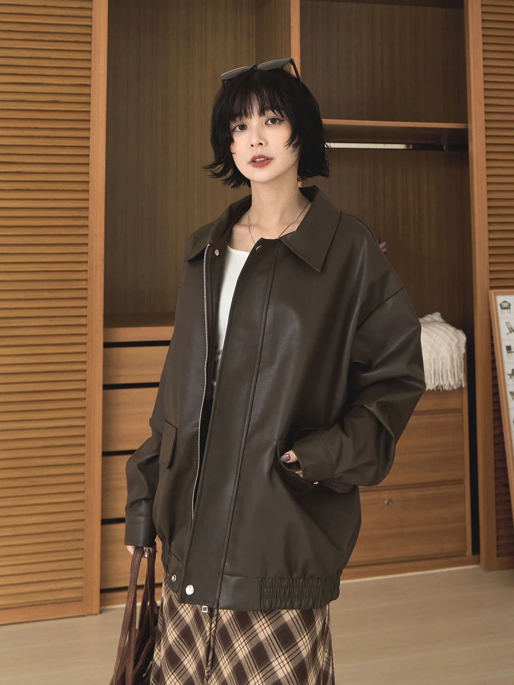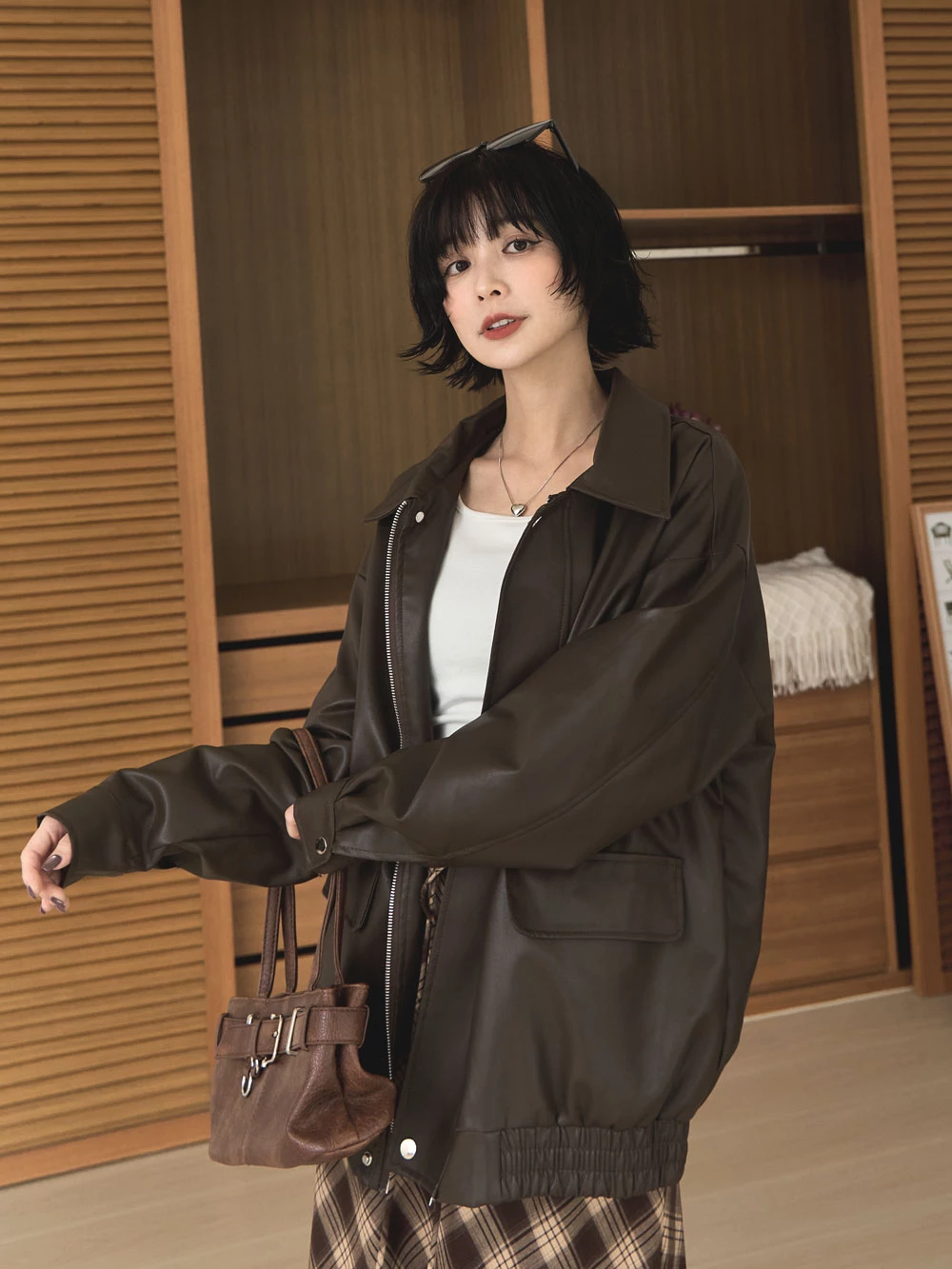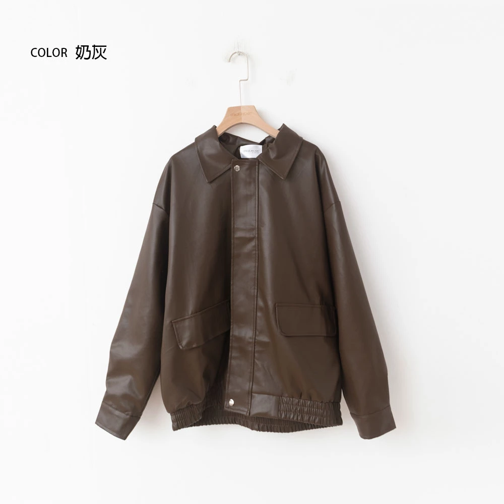 復古澎袖皮革外套