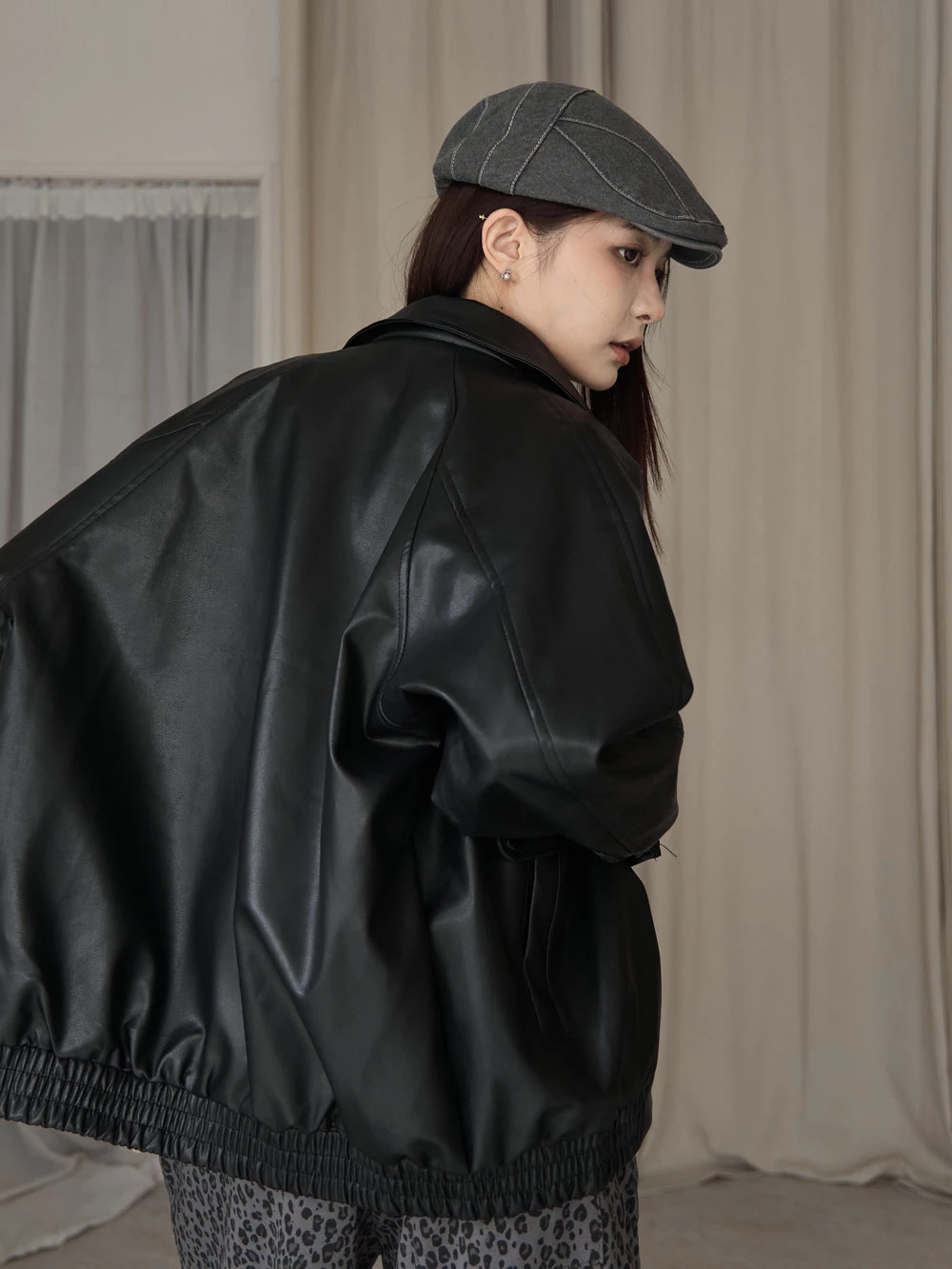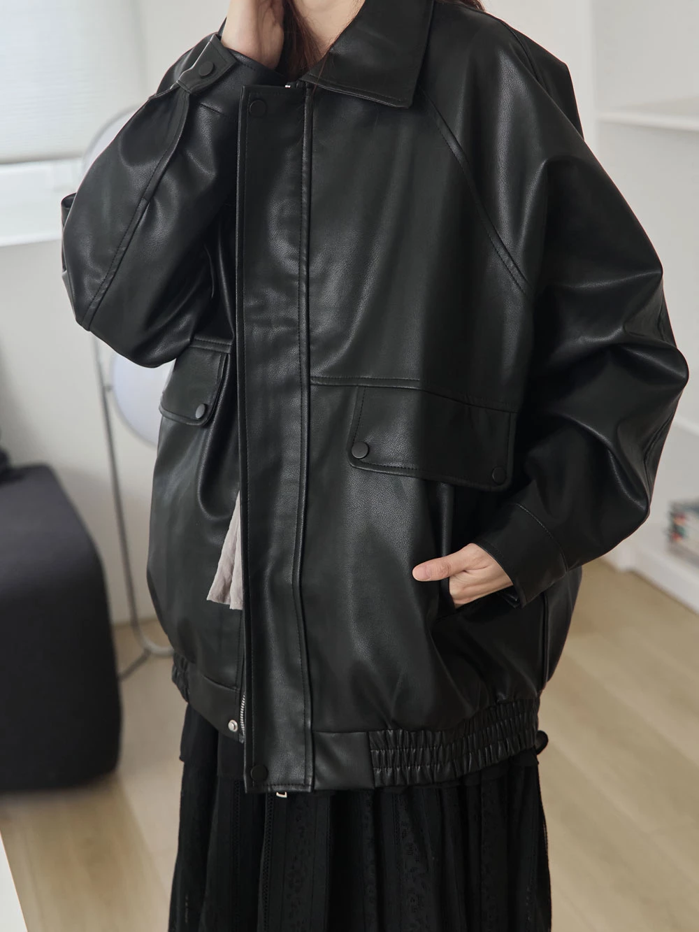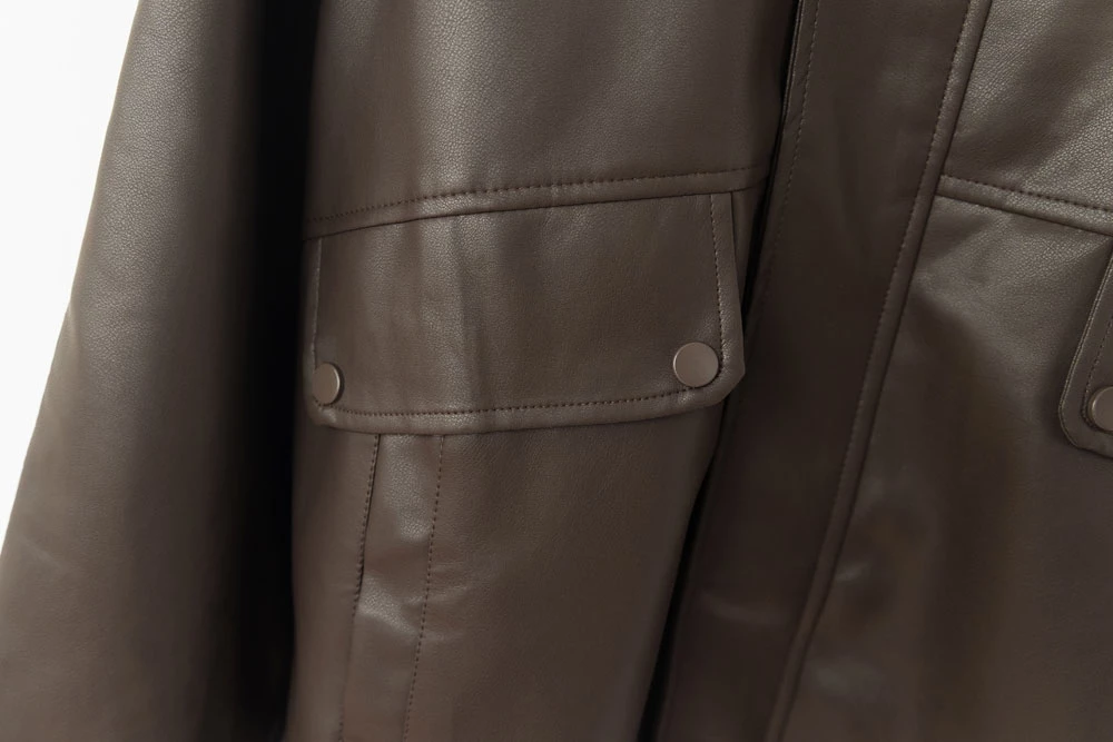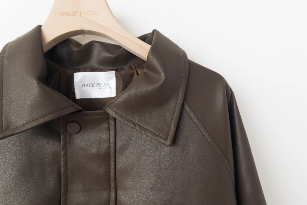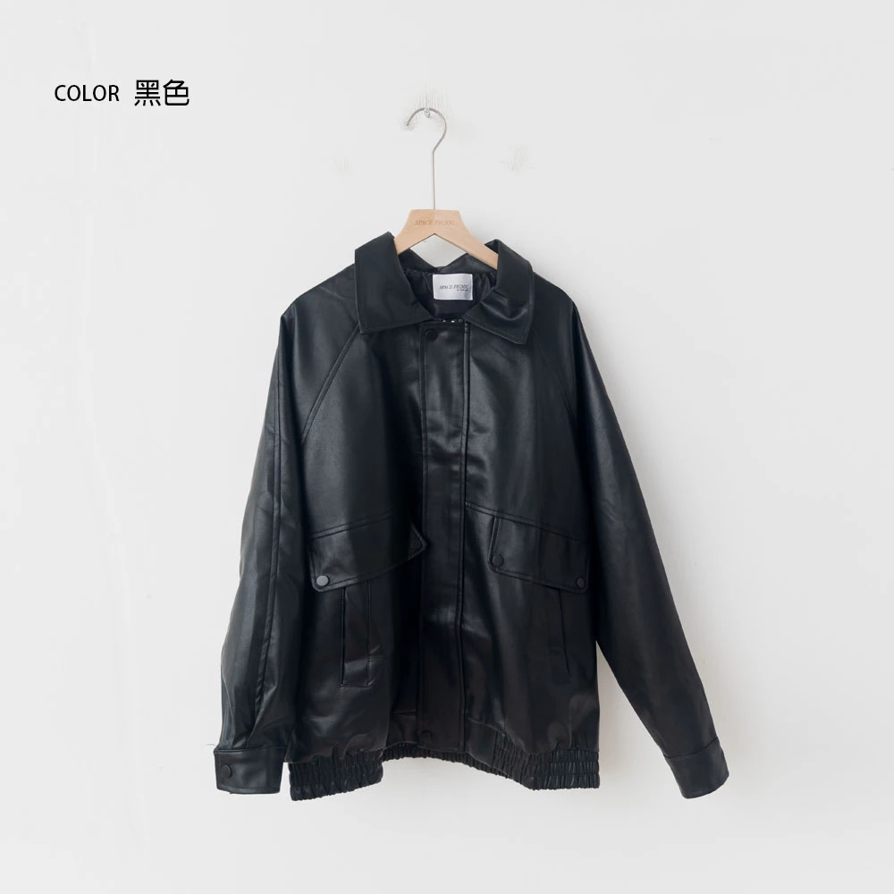 霧感翻領皮外套